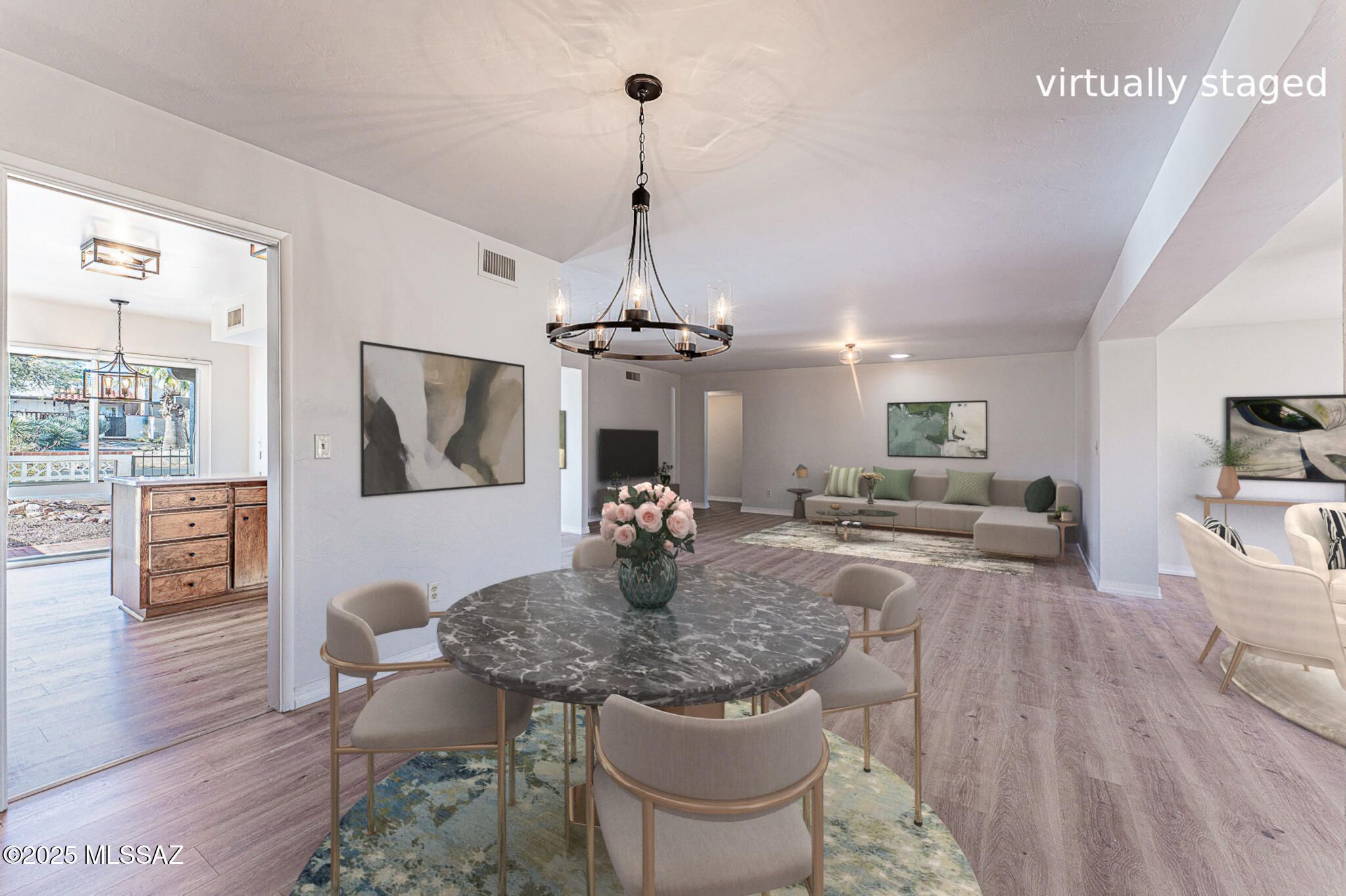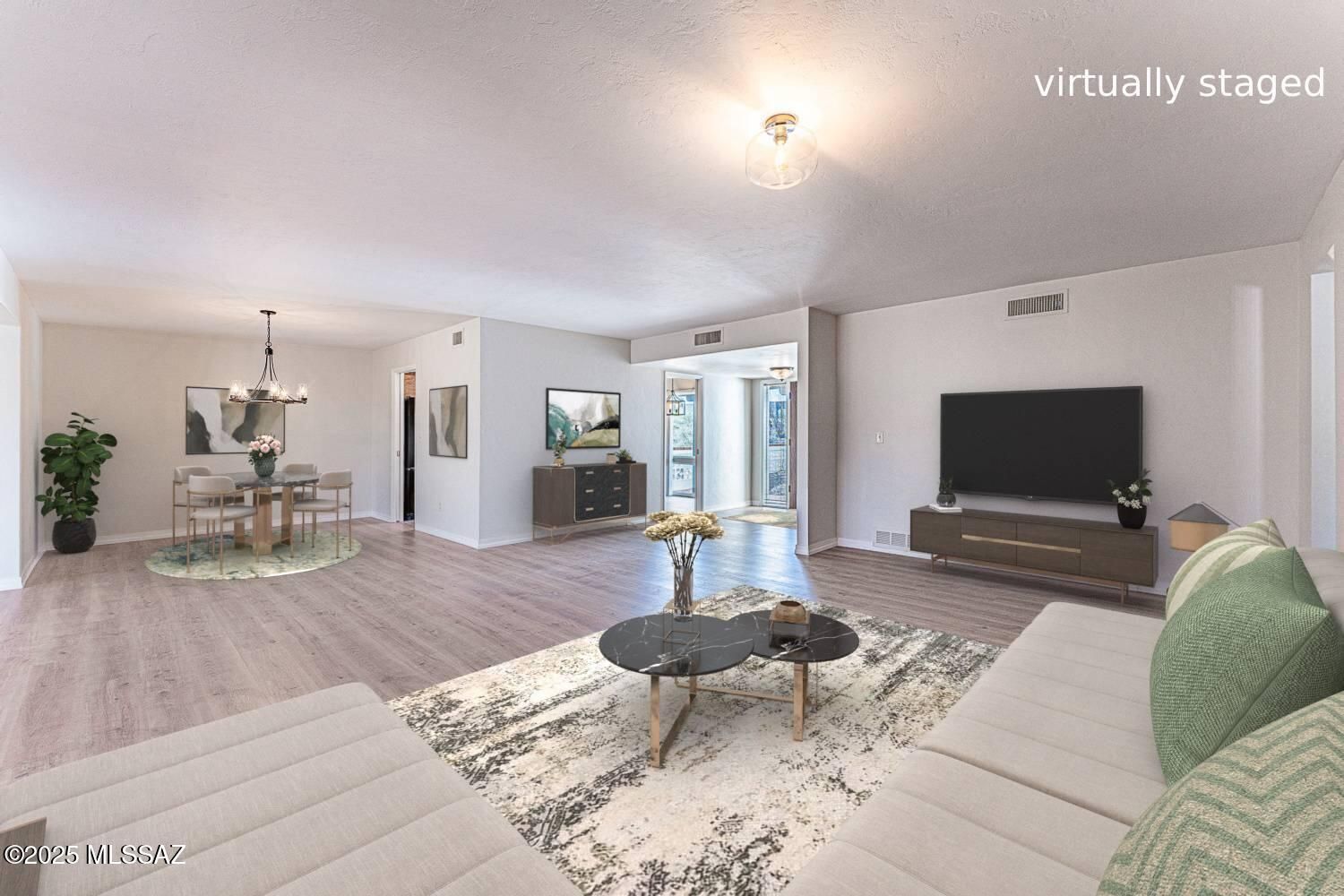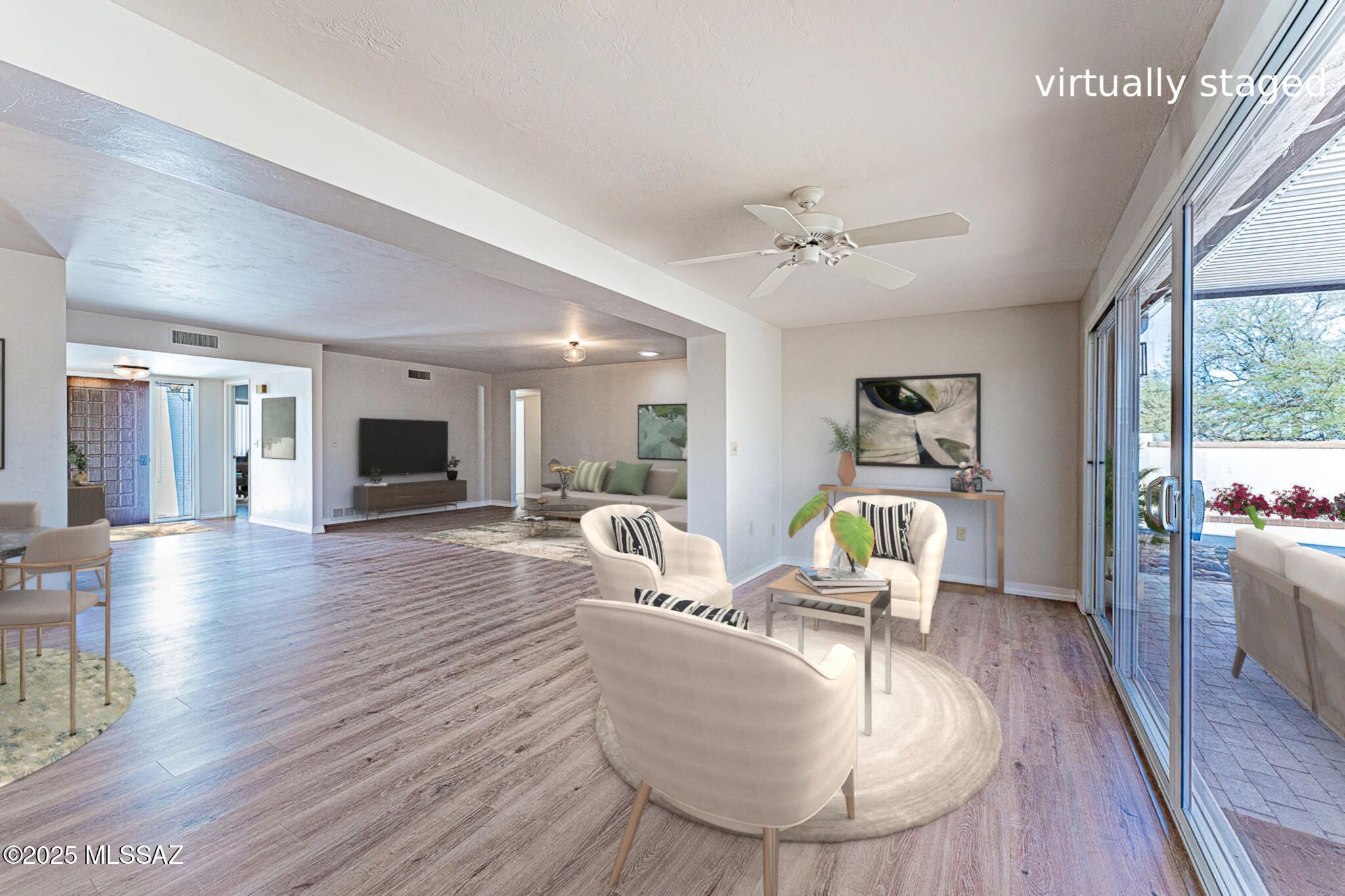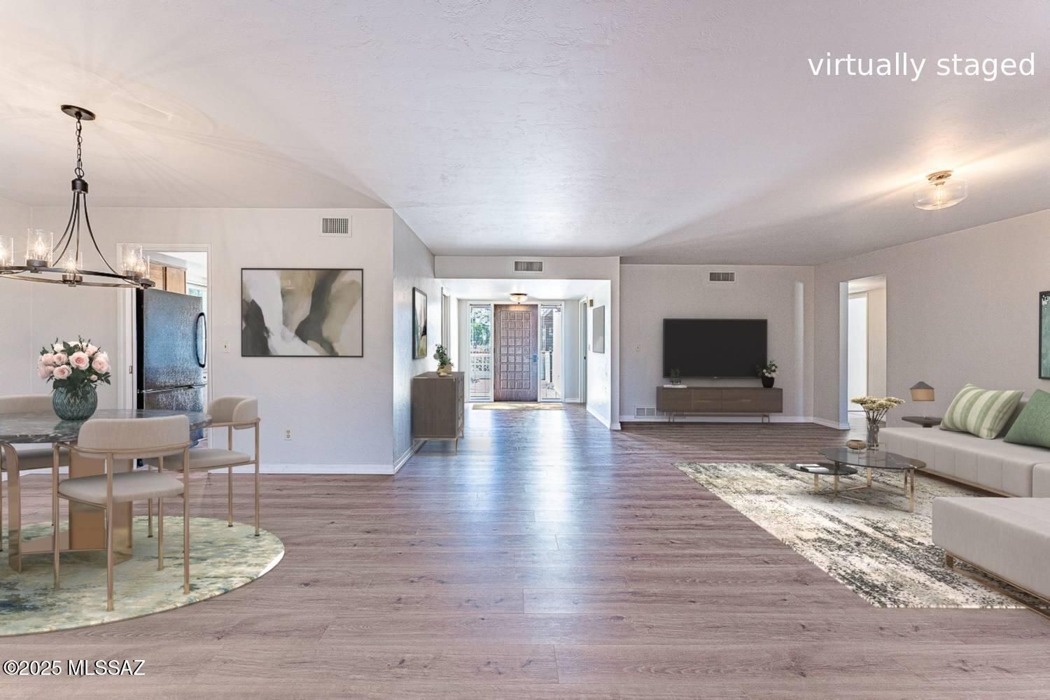 Experience the perfect blend of location, views, and spacious living!. Wake up to lovely mountain views and embrace the best of desert living in this beautifully updated 3-bedroom, 2-bath home on a prime corner lot with an expanded 2-car carport. A charming courtyard welcomes you home, perfect for morning coffee and sunset relaxation.Inside, the home shines with luxury laminate plank wood flooring, sleek wide baseboards, fresh interior paint ( December 2025), and modern lighting throughout. Enjoy peace of mind with a brand-new HVAC (March 2025), energy-efficient windows, and a transferable termite warranty. The property is range-priced, with the seller open to negotiating offers between $270,000 and $285,000. The spacious living area opens to the dining area and flows effortlessly into