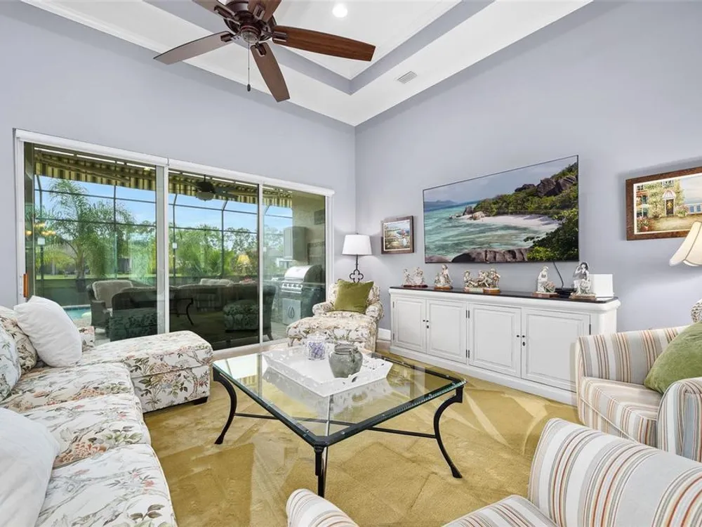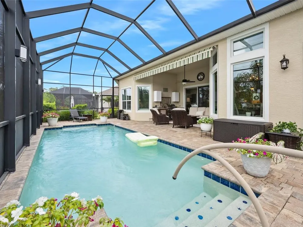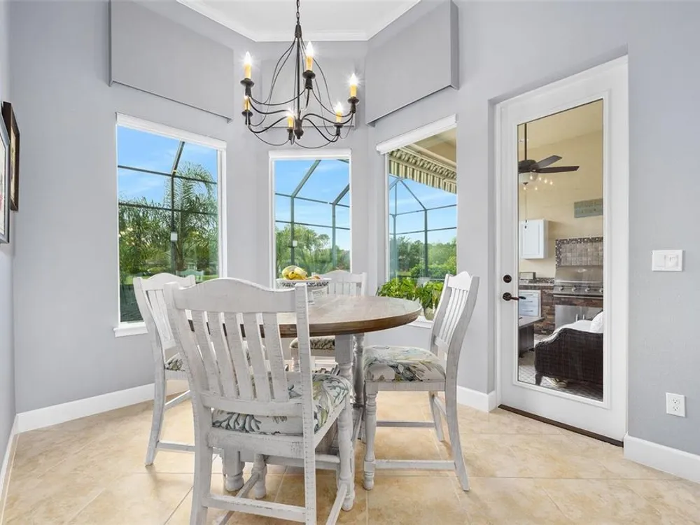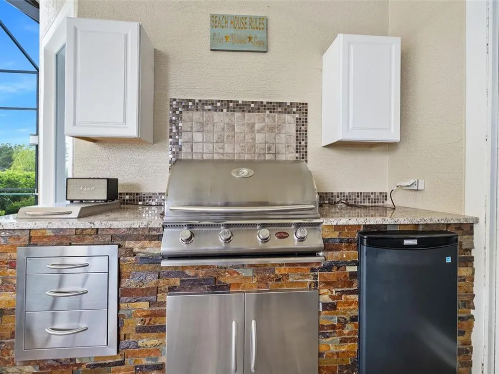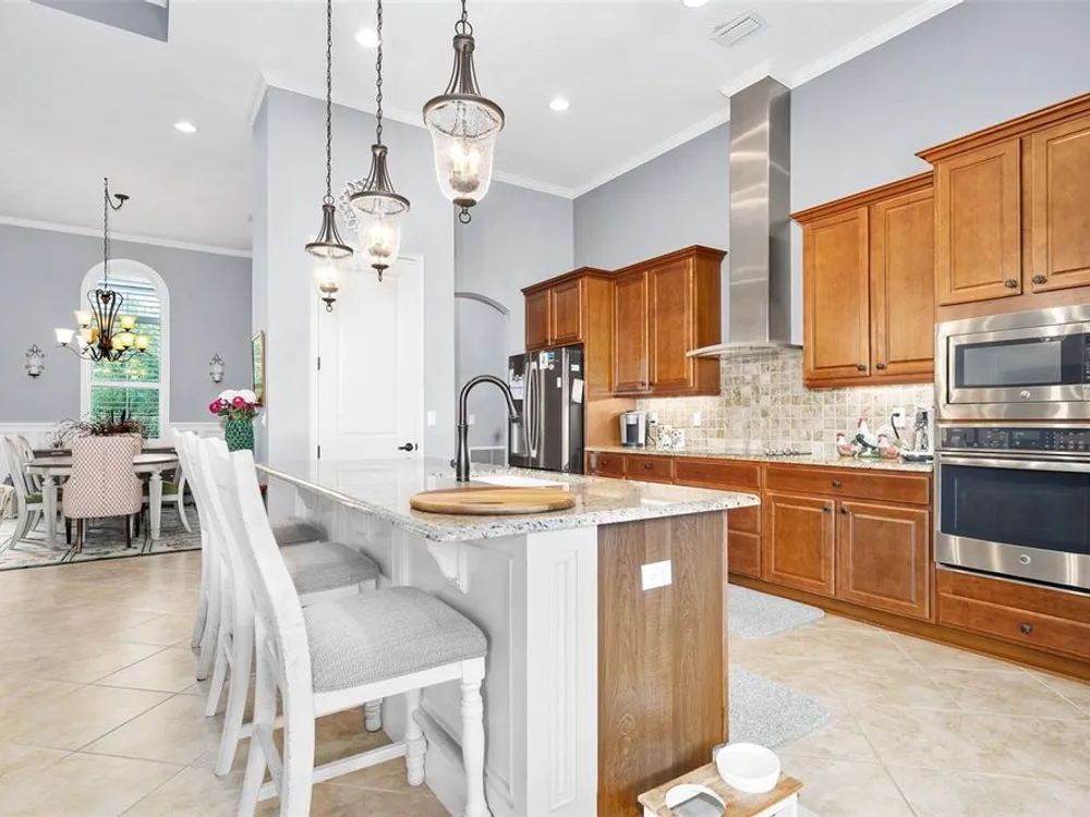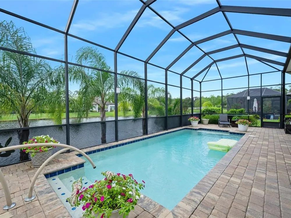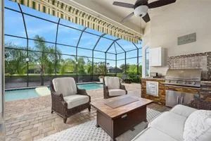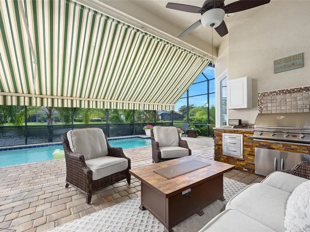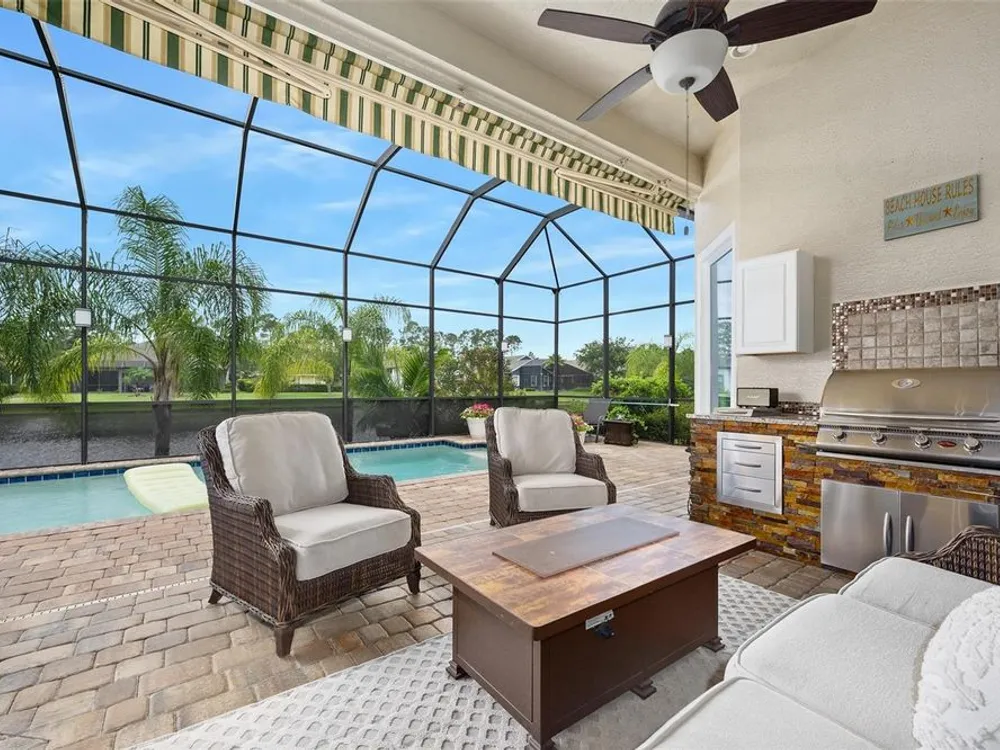Motivated sellers! Stunning 4-Bedroom Plus Office in Plantation Bay! Located in the highly sought-after gated community of Plantation Bay, this beautifully upgraded Egret VI floor plan offers a perfect blend of luxury and functionality. Featuring 4 bedrooms plus a dedicated office/den, this home showcases high-end finishes including tile and hardwood flooring, tray ceilings, crown molding, and custom wainscoting in the formal dining room. The beautiful kitchen is a chef’s dream with granite countertops, tile backsplash, stainless steel appliances, wood cabinetry, oversized lighted pantry, and a counter-height island that opens to the spacious great room. A charming breakfast nook provides peaceful views of the pool and lake. Triple sliders lead to a generous screened lanai complete with a well-equipped outdoor kitchen, remote control awning, and a sparkling pool, creating the ideal space for entertaining or relaxing. The private owner’s suite is a true retreat, offering his-and-her walk-in closets, dual split vanities, a soaking tub, and a walk-in tile shower. Additional highlights include plantation shutters, electric blinds, recessed lighting, well irrigation, and more. Plantation Bay is a premier Golf & Country Club community offering optional membership packages with access to 45 holes of championship golf, a world-class tennis facility with 10 clay courts, two clubhouses, fitness center and spa, pickleball courts, resort-style pool, two restaurants, and an active social calendar. Live the lifestyle you deserve in this exquisite home and vibrant community!