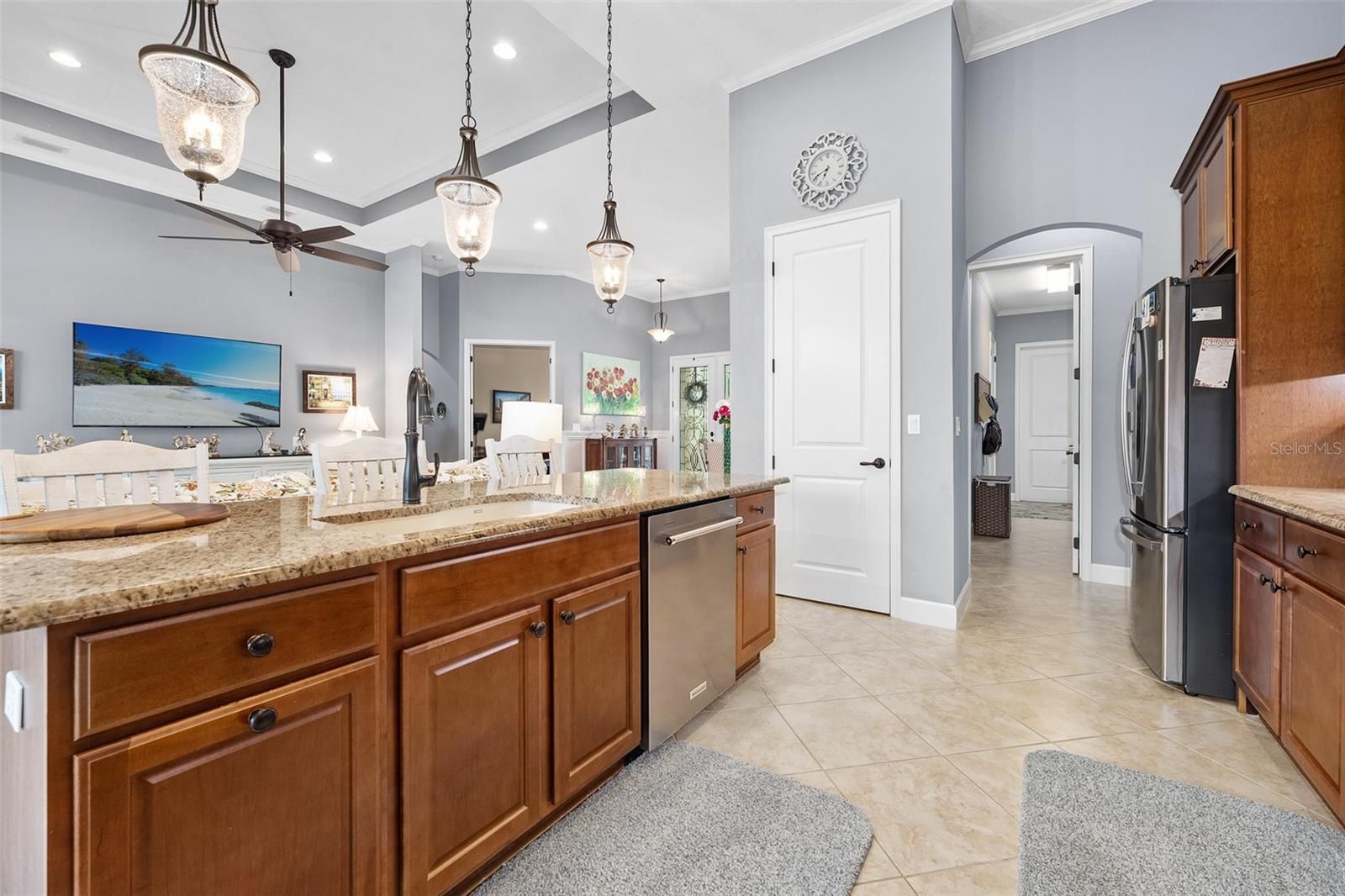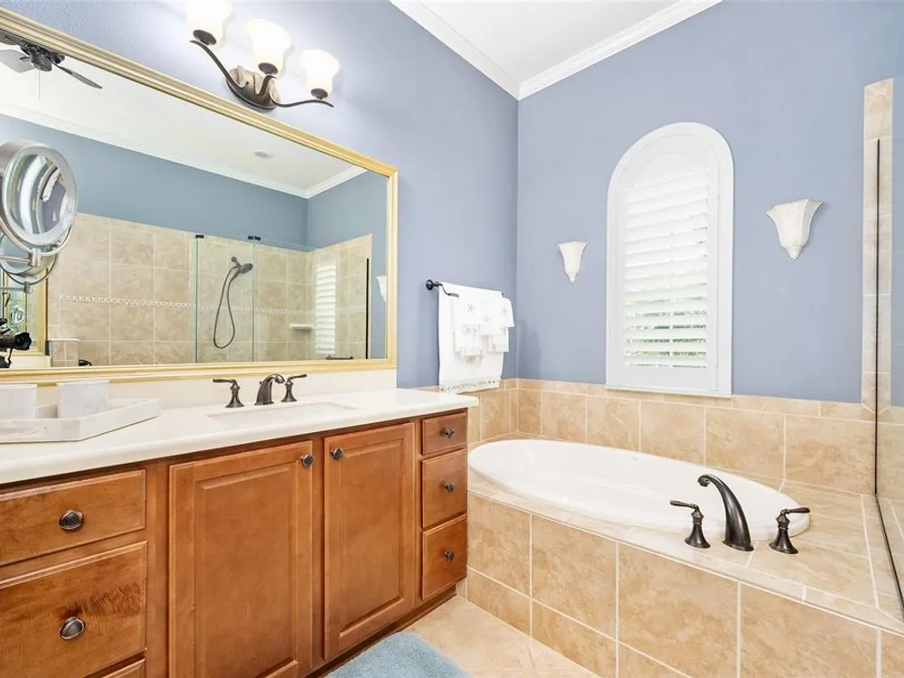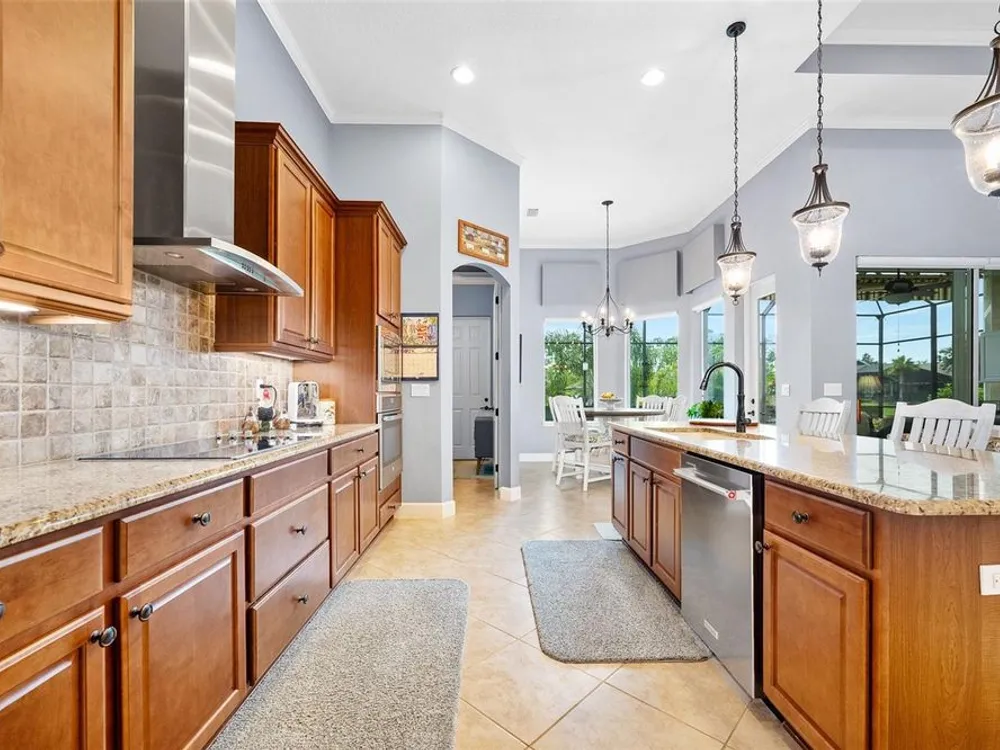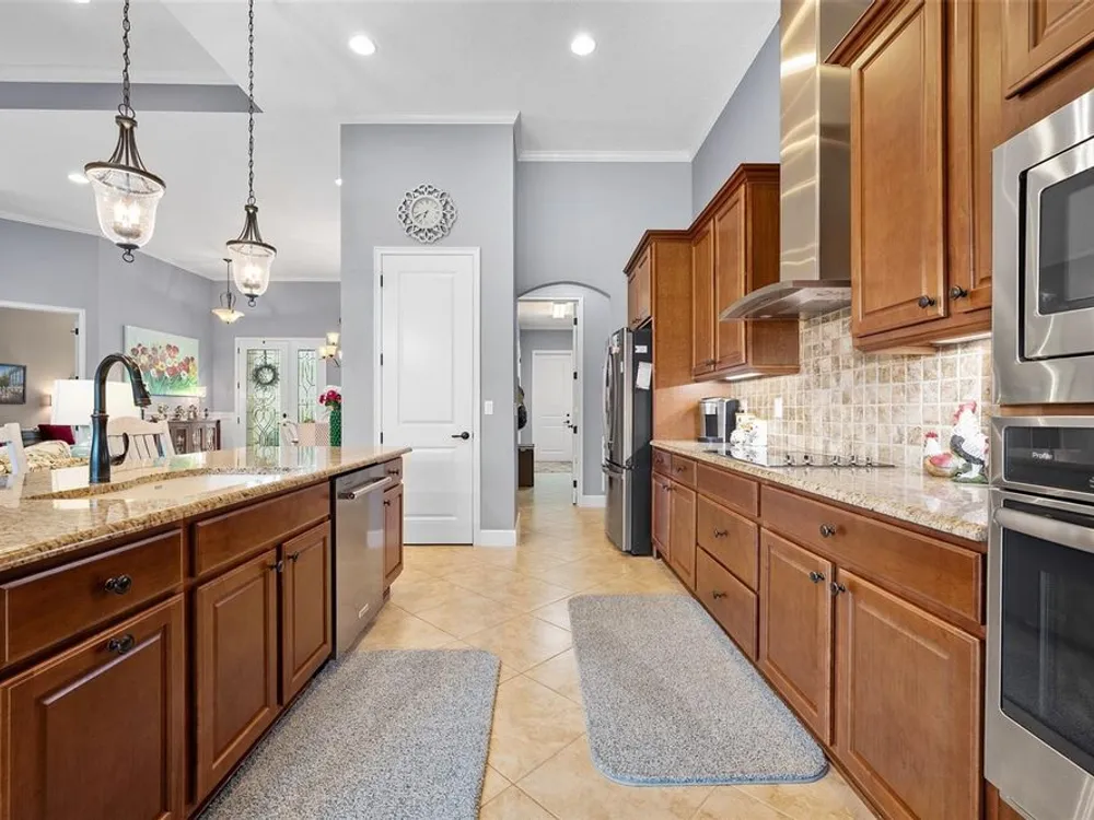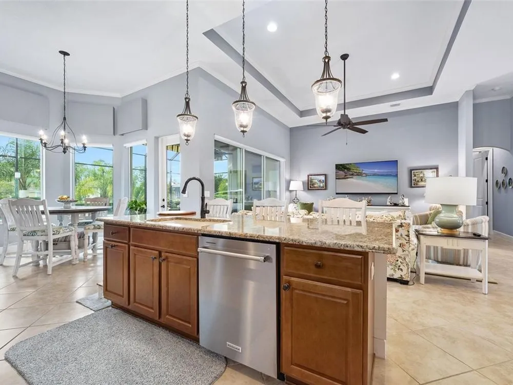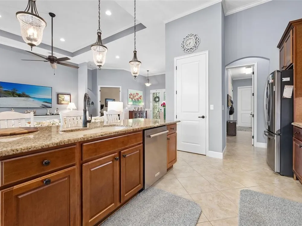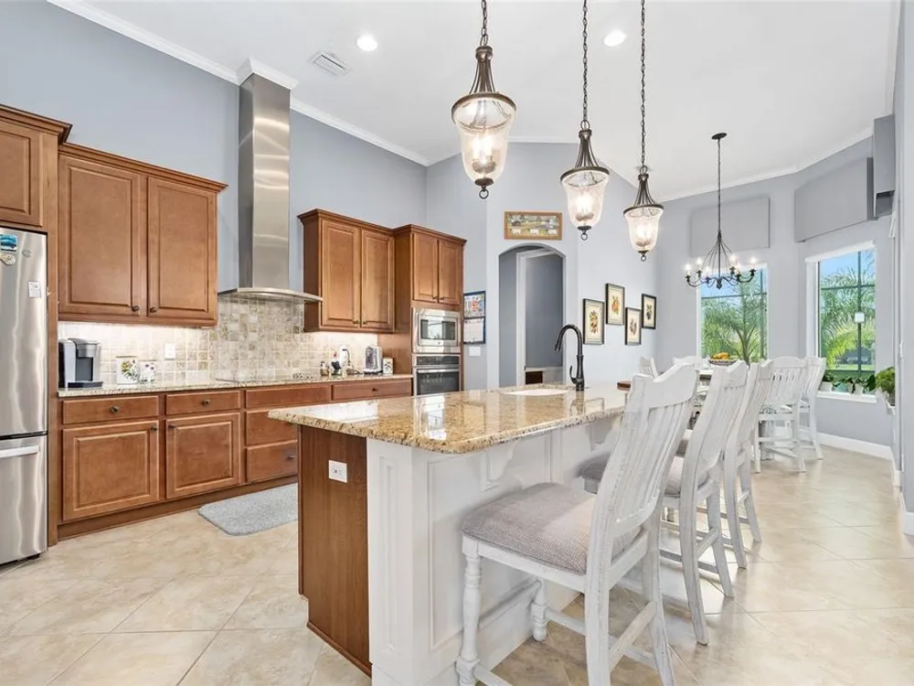 Motivated sellers! Stunning 4-Bedroom Plus Office in Plantation Bay! Located in the highly sought-after gated community of Plantation Bay, this beautifully upgraded Egret VI floor plan offers a perfect blend of luxury and functionality. Featuring 4 bedrooms plus a dedicated office/den, this home showcases high-end finishes including tile and hardwood flooring, tray ceilings, crown molding, and custom wainscoting in the formal dining room. The beautiful kitchen is a chef’s dream with granite countertops, tile backsplash, stainless steel appliances, wood cabinetry, oversized lighted pantry, and a counter-height island that opens to the spacious great room. A charming breakfast nook provides peaceful views of the pool and lake. Triple sliders lead to a generous screened lanai complete with a well-equipped outdoor kitchen, remote control awning, and a sparkling pool, creating the ideal space for entertaining or relaxing. The private owner’s suite is a true retreat, offering his-and-her walk-in closets, dual split vanities, a soaking tub, and a walk-in tile shower. Additional highlights include plantation shutters, electric blinds, recessed lighting, well irrigation, and more. Plantation Bay is a premier Golf & Country Club community offering optional membership packages with access to 45 holes of championship golf, a world-class tennis facility with 10 clay courts, two clubhouses, fitness center and spa, pickleball courts, resort-style pool, two restaurants, and an active social calendar. Live the lifestyle you deserve in this exquisite home and vibrant community!