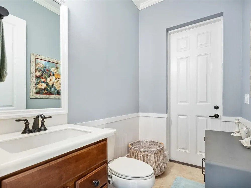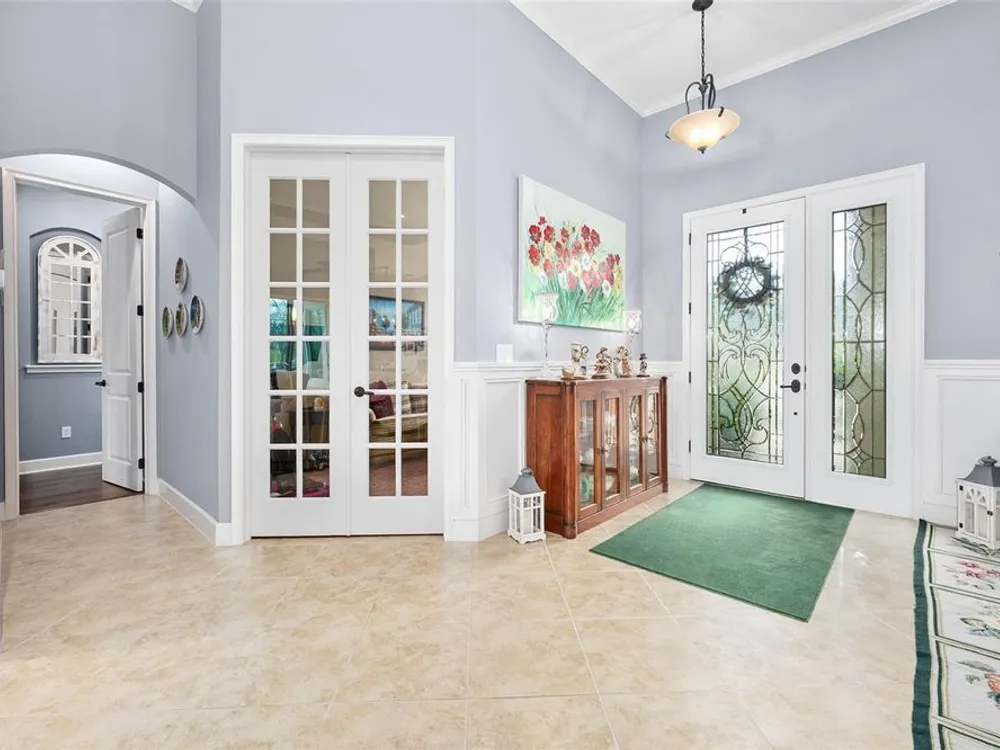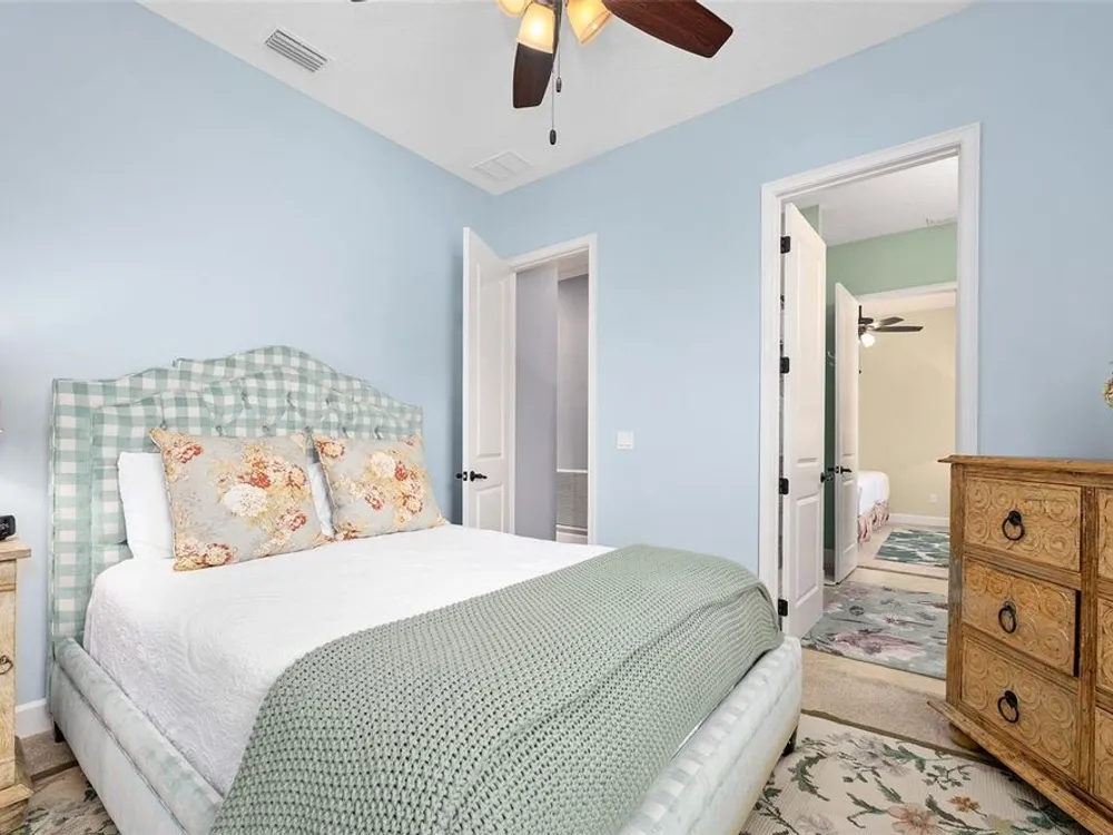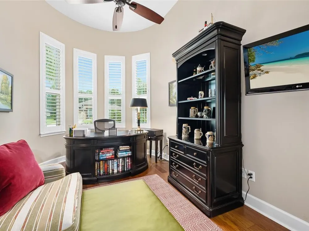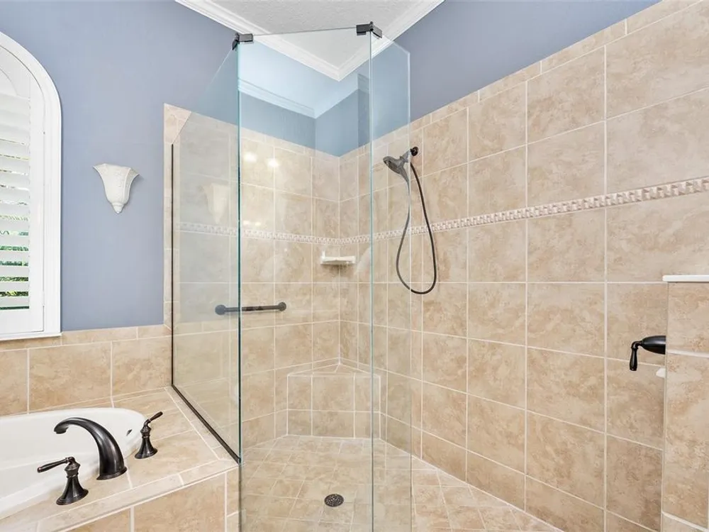 - Ceiling Fan(s), Crown Molding, Eat-in Kitchen, High Ceilings, Open Floorplan, Main Level Primary, Split Bedrooms, Stone Counters, Thermostat, Tray Ceiling(s), Walk-In Closet(s), Window Treatments