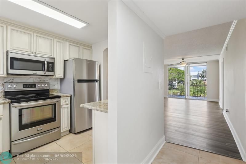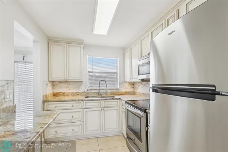 Welcome to Royal Park Gardens, a 55+ active adult community with resort-style amenities. See Floorplan and3D Tour online. This newly updated unit offers 2 bed, 1.5 baths, located on the 2nd floor with elevator access. Enjoy an updated kitchen with brand-new appliances. Sleek new tile & vinyl flooring. The primary bed features a walk-in closet, & the 2nd bed offers a spacious closet. Both bathrooms have been beautifully renovated, ensuring comfort & style. Relax on your balcony overlooking the heated pool. Ample storage throughout, includes a personal storage unit. Community perks include 3 heated pools, tennis, pickle, & bocce ball courts, BBQ & picnic area, clubhouse, card & pool table room, library, gym, & laundry facilities on each floor. Includes 1 parking spot& ample guest parking.