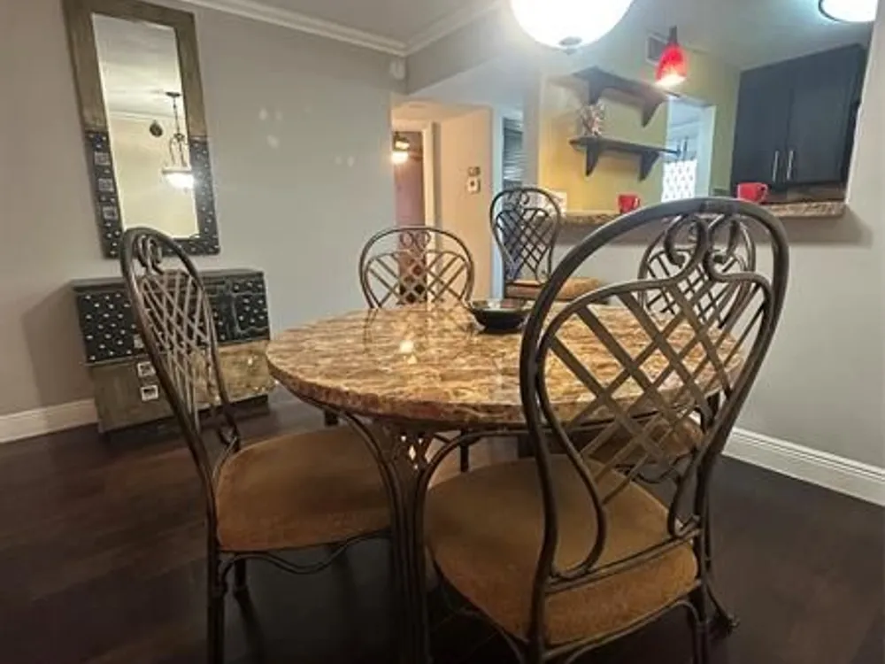 Step into this immaculate, artist-inspired 2-bedroom, 1.5-bath condo and prepare to fall in love. Completely redone with impeccable taste, new floors, modern appliances, and a kitchen that’s as beautiful as it is functional, highlighted by custom wall lighting designed to showcase artwork. The primary bathroom boasts a luxurious walk-in shower that’s truly a showstopper!One of the unit’s standout features is the enclosed patio—so spacious and cozy, it could easily serve as an additional room for relaxing, working, or entertaining. Very well-kept building w/ elevator access & laundry on every floor.Off Royal Palm Blvd, minutes from 441, Rock Island Road, major supermarkets, and the casino. Warmly, lovingly maintained by an artist and radiates a unique charm! TRULY move-in ready!