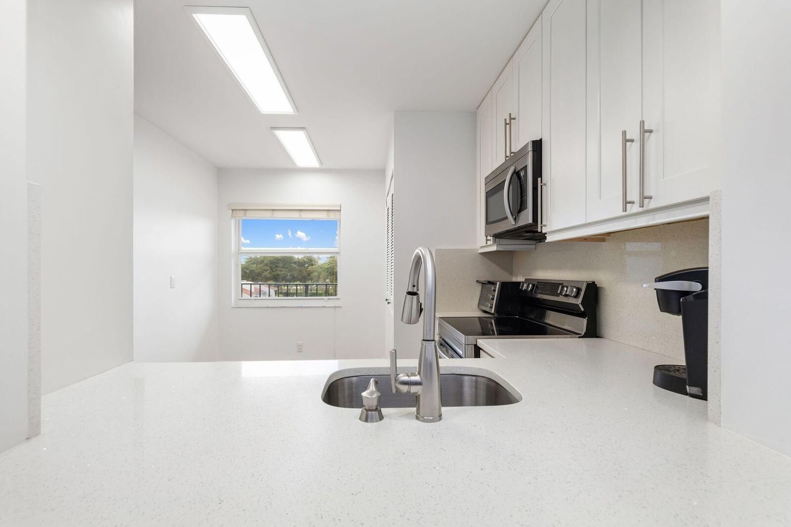 Bring all offers ready to go. Fully renovated 2BR/2BA penthouse corner unit just 6 miles from the beach in desirable Delray Beach! Located on the 4TH floor of an elevator building with a brand -new elevator, this light-filled residence offers added privacy and abundant natural light. Completely redone from the top to bottom-impact glass, new lighting, new flooring, and all new appliances. Stunning redesigned kitchen with new cabinetry and countertops. Both bathrooms fully renovated with new vanities