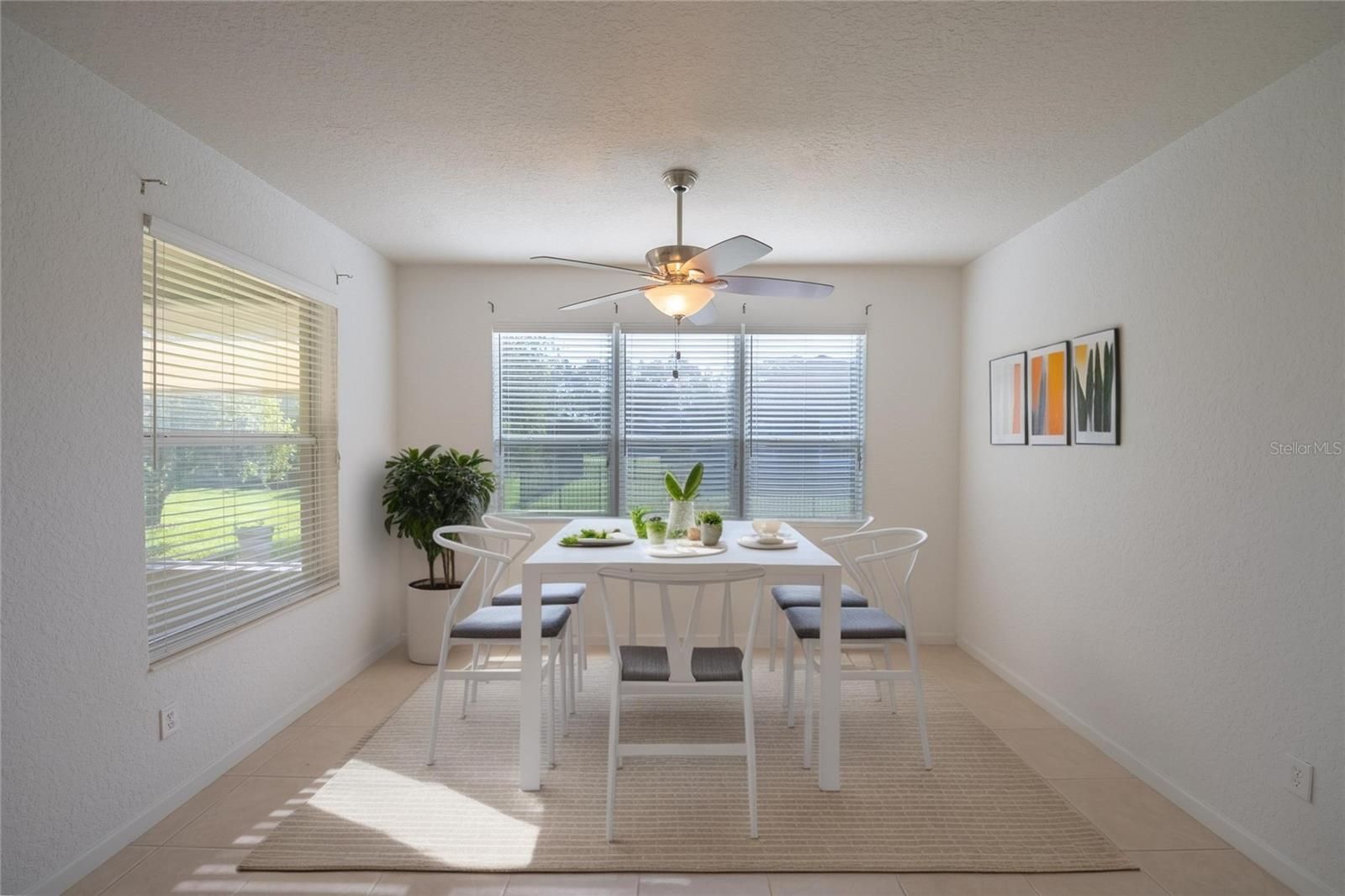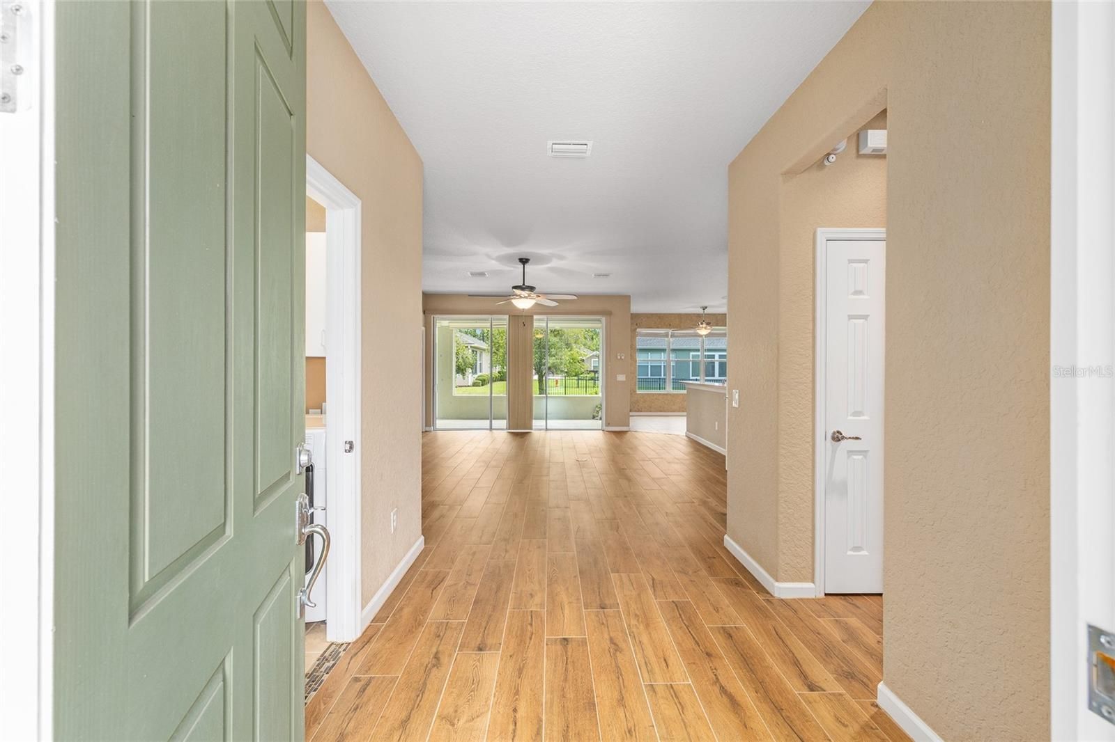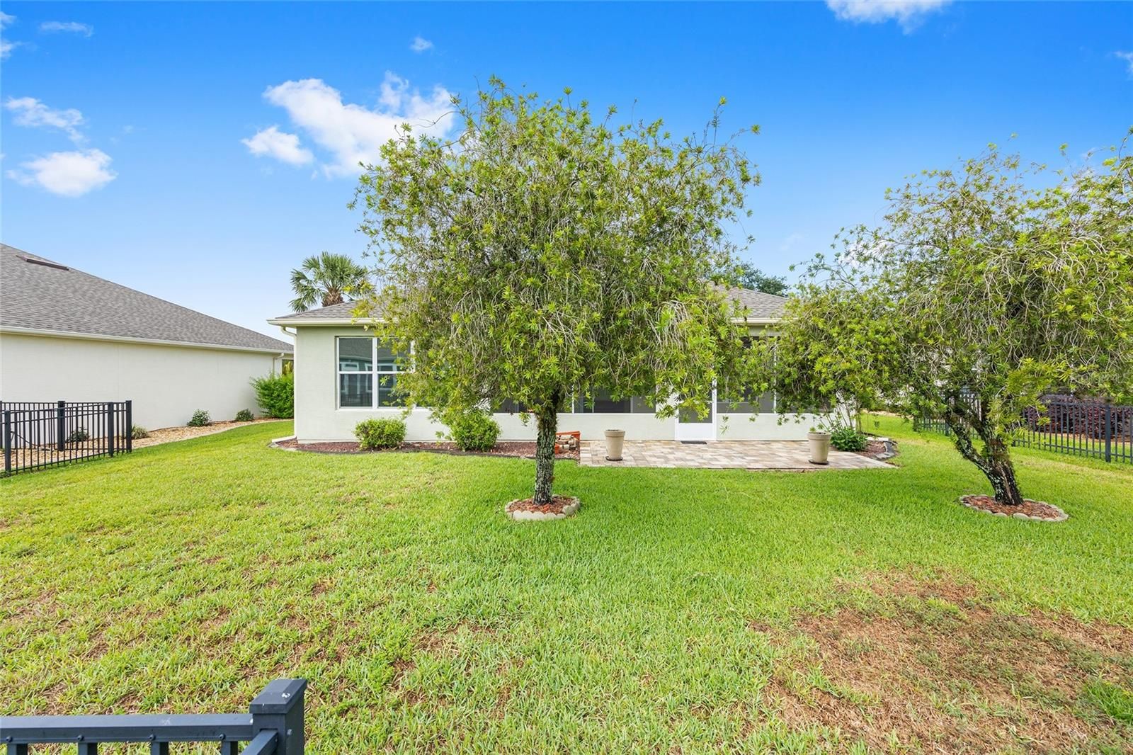 One or more photo(s) has been virtually staged. MOVE-IN READY WITH VERY MOTIVATED SELLERS! Welcome to this beautifully upgraded 2-bedroom, 2-bathroom home with a versatile flex room, located in the sought-after 55+ community of Del Webb Stone Creek. This well-maintained home combines comfort, style, and functionality with new wood-look ceramic tile in the entry, living room, and hallway; tile in the kitchen and bathrooms; and professionally cleaned carpet in the bedrooms and flex room. The freshly painted dining room adds a bright, updated touch to the main living space. The spacious kitchen features solid surface countertops, a breakfast bar, pull-out cabinetry, and a generous dining area that has been newly painted. The split-bedroom floorplan offers privacy, with a primary suite that includes plantation shutters, a walk-in closet with custom built-ins, dual vanities, a walk-in shower, and linen closet. The guest bedroom also features built-ins and plantation shutters, with a nearby bath offering a tub/shower combo and vanity. Other highlights include a laundry room with washer, dryer, and cabinets; a smart panel for connectivity; whole-house water filtration system; and an over-the-air antenna in the attic. The garage boasts a new roll-up screen (2024), epoxy flooring, attic stairs, utility sink, and built-in shelving. Outdoor living is easy with a newly screened lanai featuring a solid knee-wall, sunshades, ceiling fans, and a paver patio. Curbed planting beds and a screened front porch with plantation shutters add charm and curb appeal. Major updates include a new roof (2022), HVAC (2024), hot water heater (2023), and kitchen appliances—range, microwave, dishwasher, and disposal—all replaced in 2024. A transferable termite bond adds peace of mind. Del Webb Stone Creek offers resort-style amenities, including a golf course, pool, fitness center, and a wide range of clubs and activities. Don’t miss your chance to own this move-in-ready, upgraded home in one of Ocala’s premier active adult communities—schedule your private showing today!