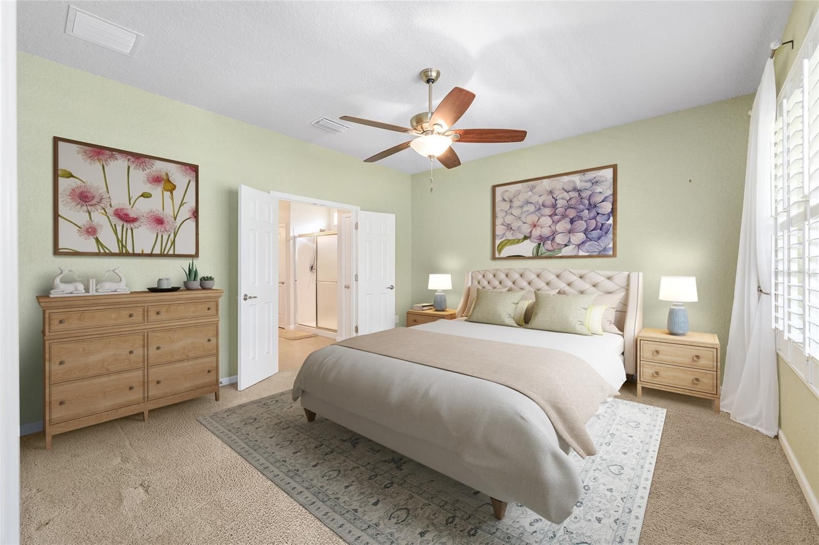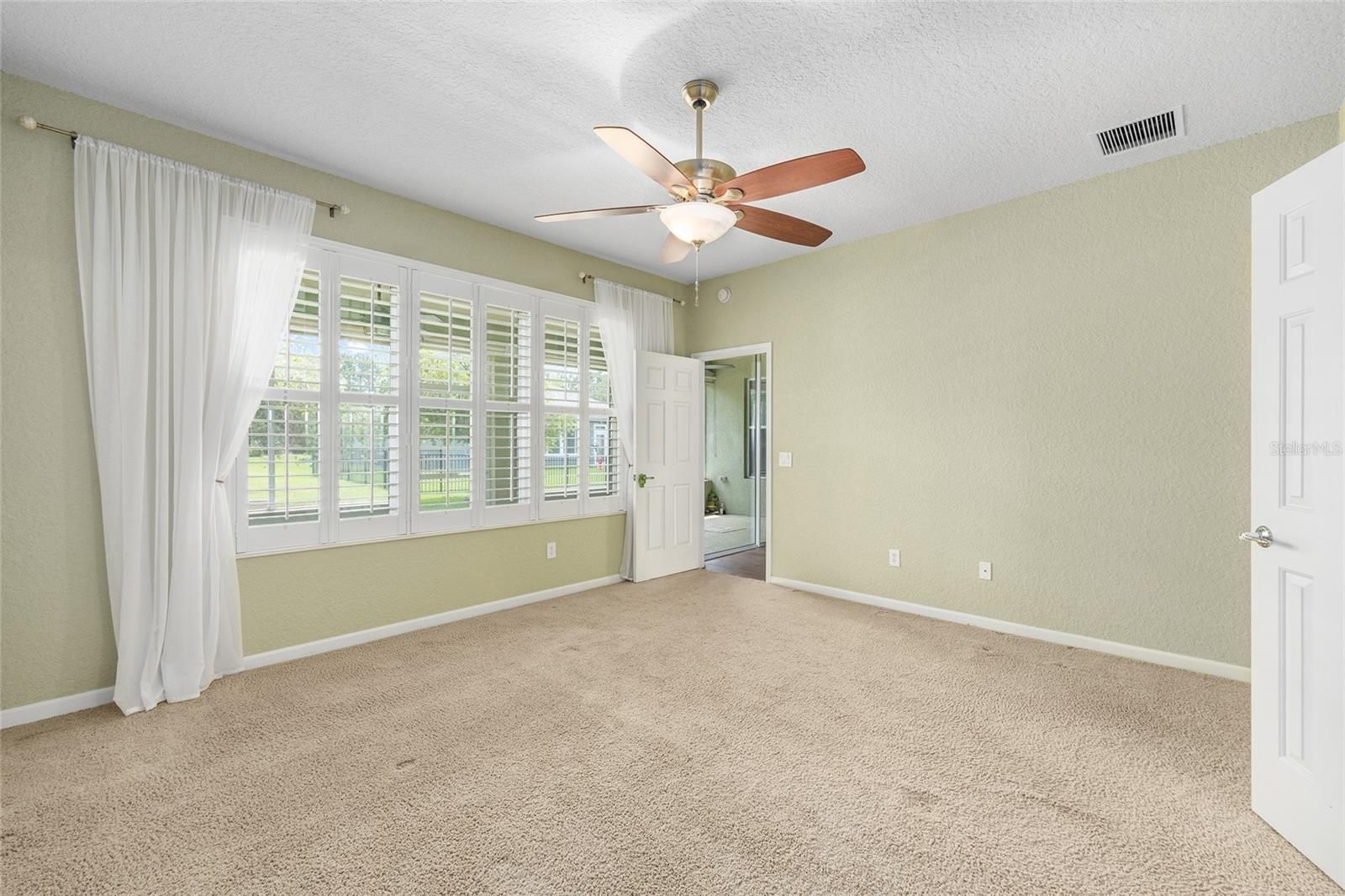 - Ceiling Fan(s), Eat-in Kitchen, Kitchen/Family Room Combo, Open Floorplan, Main Level Primary, Thermostat, Walk-In Closet(s), Window Treatments