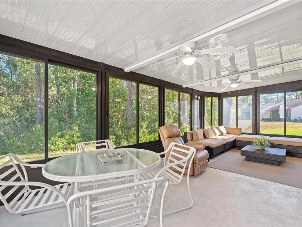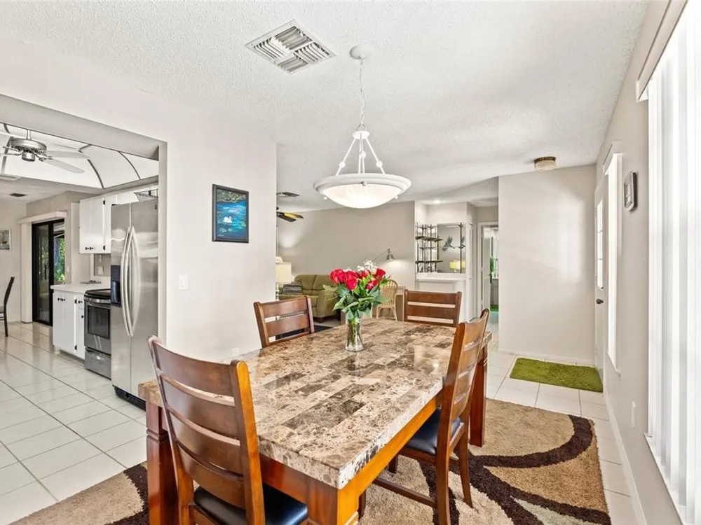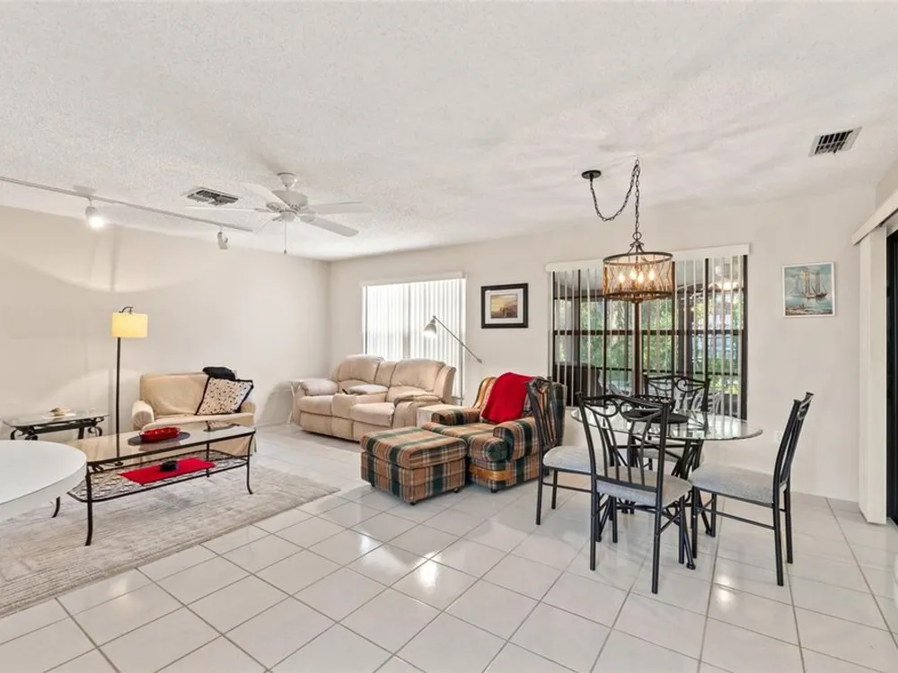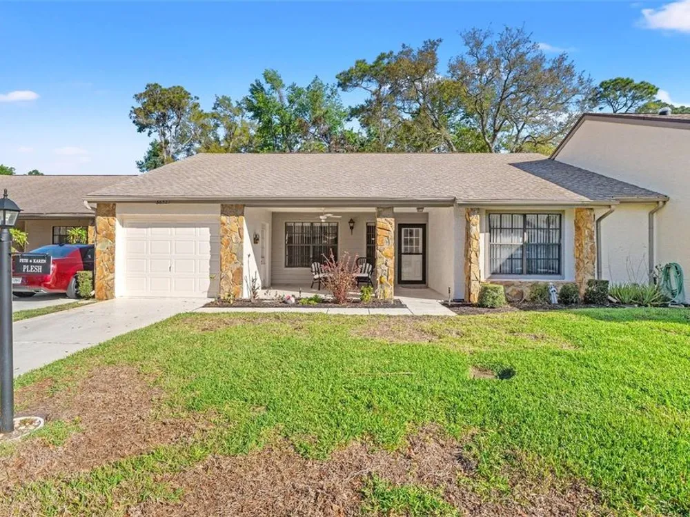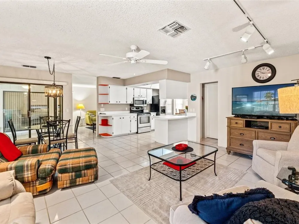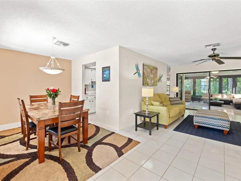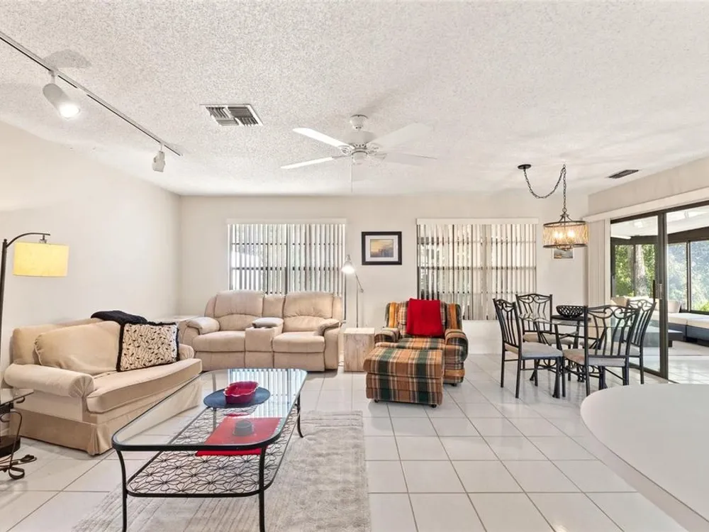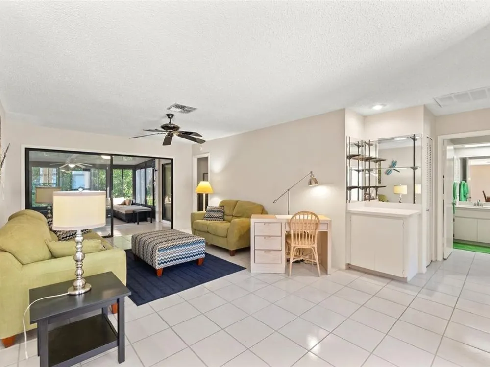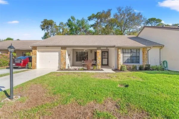 PENDING. Charming 2/2 Villa in Award-Winning Timber Pines – Private & Move-In Ready! Welcome to this beautifully maintained 2-bedroom, 2-bathroom villa nestled in a private, park-like setting within the sought-after Timber Pines community. This home offers an open-concept layout with tile flooring throughout, making it both stylish and easy to maintain. You'll appreciate the Crown Molding throughout. Step inside to find a spacious primary bedroom that leads to an updated en-suite bathroom featuring a step-in shower. The guest bedroom is equally inviting, boasting an oversized closet and easy access to a hall bath with a tub-shower combo and linen storage. The kitchen is a chef’s delight, equipped with stainless steel appliances, a new disposal, and a convenient pass-through to the family room and breakfast nook. From either the kitchen or dining area, step out to the oversized lanai, the perfect space for entertaining or enjoying your morning coffee in peaceful surroundings. Love to grill? A large outdoor slab provides the ideal setup for barbecues! Additional highlights include: NEW Washer & Dryer, located in the garage with a utility sink Pet-friendly village with an exclusive community pool for Pine Glen residents only Termite protection included for peace of mind Fully furnished & turnkey—just bring your suitcase! This Village has it's own Geothermal pool for Pine Glen residents to enjoy. This village is also pet friendly!! This villa is the perfect combination of comfort, convenience, and tranquility. Don’t miss your opportunity to call it home! Make this YOUR HOME & ENJOY THE GREAT LIFE TIMBER PINES has to offer, a gated, guarded, 55+ Active Adult Community. Timber Pines boasts 4 PRISTINE Golf Courses, Award winning pickle ball center, New state of the art Fitness/Wellness Center, Club House and Restaurant, Performing Arts Center, Residents Activity Center, 2 Geothermal Pools, Tennis, Billiards, Bocce, Wood Shop, Arts and Crafts Center, PAWS PARK for your pets. SO MANY ACTIVITIES with Over 100 Clubs. Spectrum Cable TV, 2 Boxes, and highest speed internet included in HOA fee. New buyer pays $2900 Capital Contribution to TPCA at closing. CALL TODAY!!!