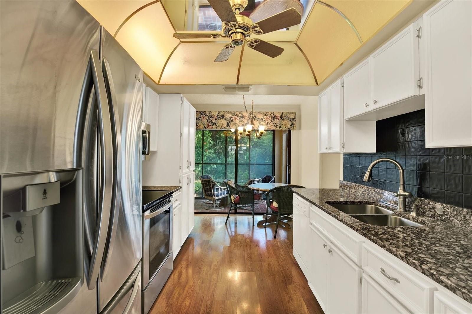 PRICE ADJUSTMENT! MOTIVATED SELLER! Welcome to this beautifully maintained villa in the sought-after, pet-friendly Pine Glen 1 Village in TIMBER PINES. Inside, you'll find well designed 2 BEDROOMS, 2 FULL BATHS layout with 1234 sq ft living space. The primary suite features a walk-in closet, dual sinks, and direct access to the screened lanai. Spacious second bedroom with generous closet space is perfect for guests. Both the living room and primary bedroom open to a peaceful outdoor space, ideal for relaxing or enjoying your morning coffee. Kitchen boasts of GRANITE COUNTERTOPS with plenty of space for meal preparations. FRESHLY PAINTED in neutral color with wood flooring throughout. The attached one car garage includes a screen door for added convenience. This home is just a few steps away from the community swimming pool and backs up to a serene, wooded area which offers privacy and lush landscaping. NEWER A/C (2023), updated garage epoxy flooring. Located in the gated, amenity-rich, 55+ community of Timber Pines, residents enjoy 4 golf courses, a country club, swimming pools, remodeled restaurant/bar, fitness center, pickleball, tennis, billiards, and over 100 clubs. Don’t miss this opportunity—schedule your private tour today!