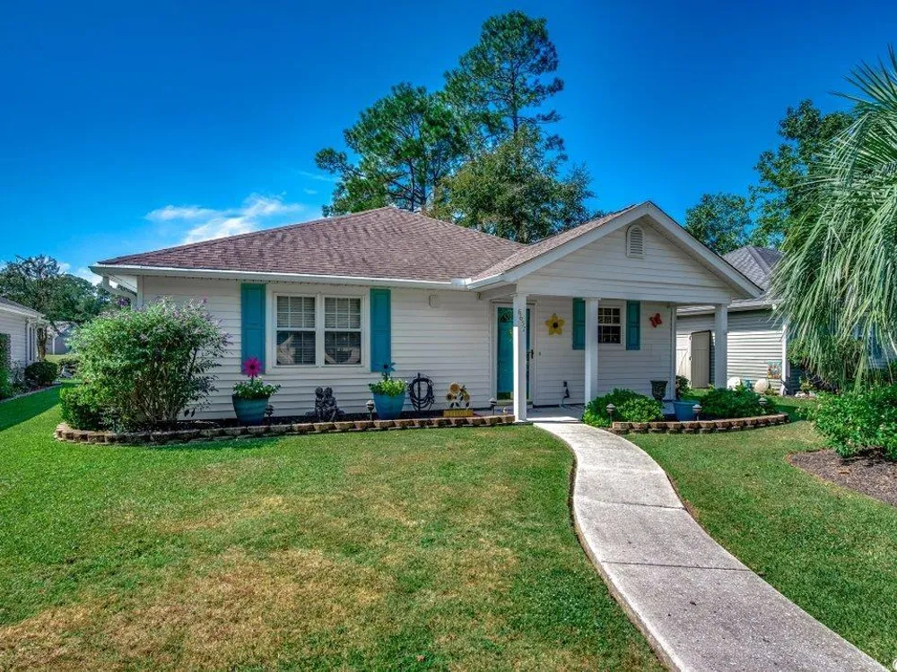 Well kept lovely two bedroom, two bath home on a cul-de-sac at Myrtle Beach Golf & Yacht with an open layout and sunroom. Bedrooms are spacious and primary has a large walk in closet. External storage room to keep the beach chairs and gardening tools. Hot water tank was replaced 2023 & A/C replaced 2020. Myrtle Beach Golf and Yacht is centrally located nearby Highway 31 enabling an easy commute anywhere along the Grand Strand, a few minutes from the Waccamaw river, and less than 20 minutes from the beautiful blue Atlantic Ocean. The desirable Myrtle Beach Golf & Yacht offers 24hour security, large community pool, tennis, pickleball, and rec facility.