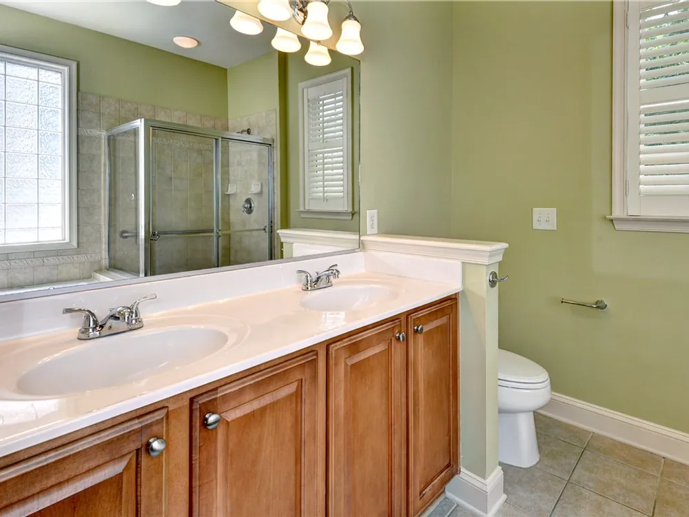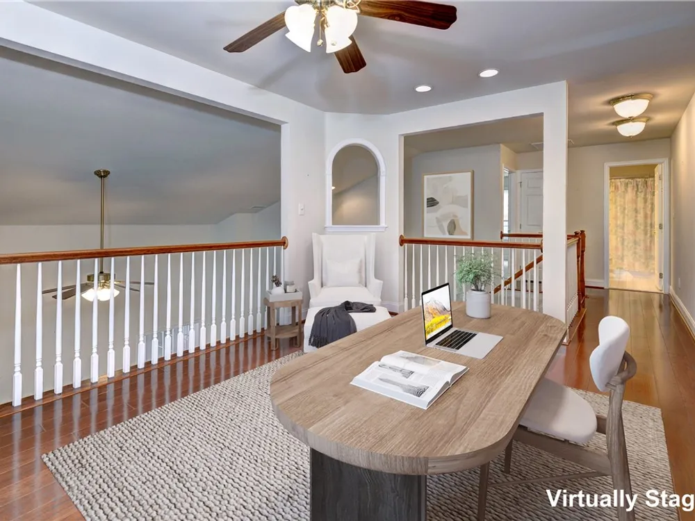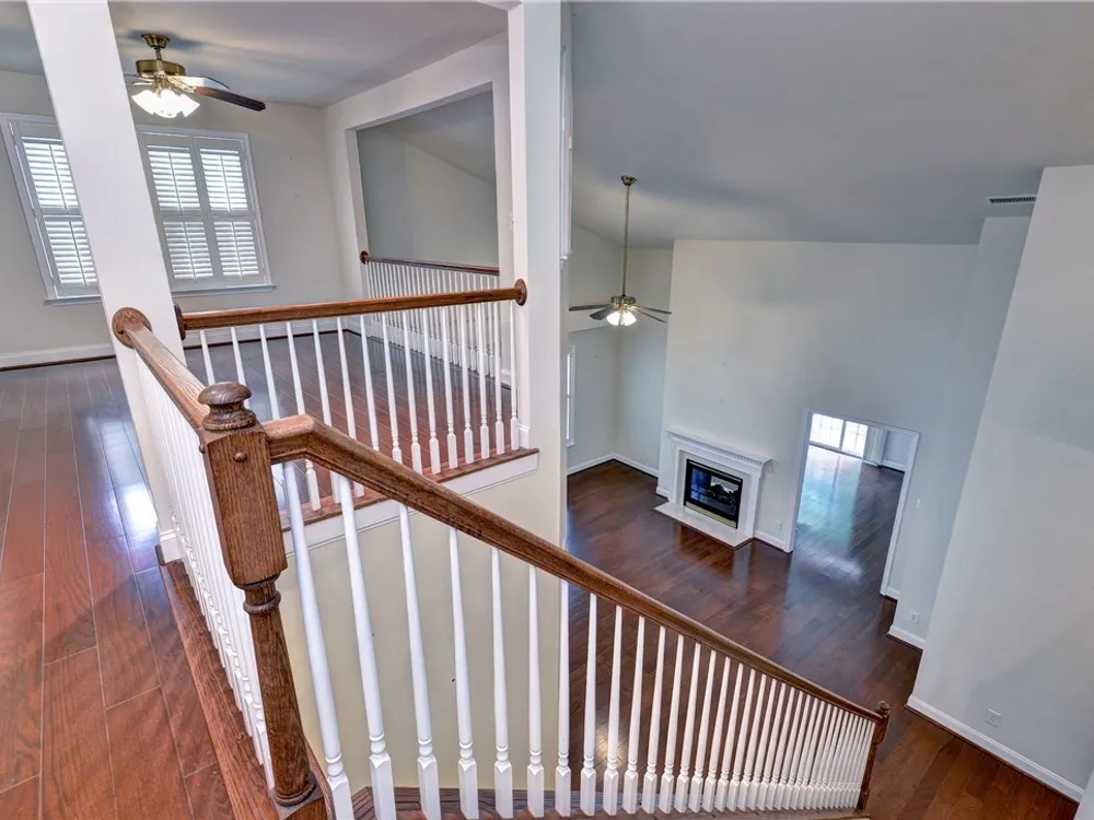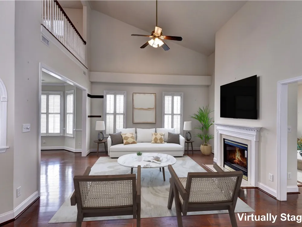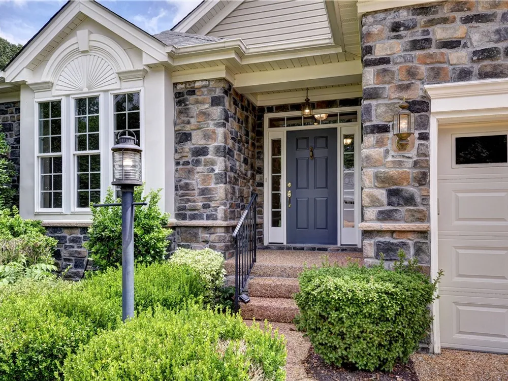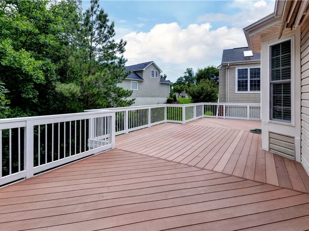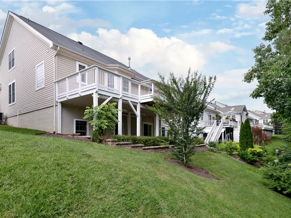 Welcome to this beautifully maintained home backing to a private, wooded lot. Inside, enjoy gleaming hardwood floors on the main level and vaulted ceilings. The gourmet eat-in kitchen features granite countertops, a large center island, and ample workspace. A formal dining room opens to the living room with a striking dual-sided fireplace shared with a cozy sitting area—perfect for relaxing or entertaining. The spacious first-floor primary suite offers two walk-in closets, a soaking tub, and dual sinks. A second bedroom makes an ideal office with access to a full bath. Upstairs, a loft offers another retreat, plus a large guest bedroom nearby. The full basement has 10-foot ceilings, a bedroom/art room with two walk-in closets, and plenty of storage—ideal for a workshop, recreation, or future expansion. Outside, enjoy a large deck and multi-tier paver patio overlooking mature woods—perfect for al fresco dining or quiet mornings. This home has it all—style, space, and setting.