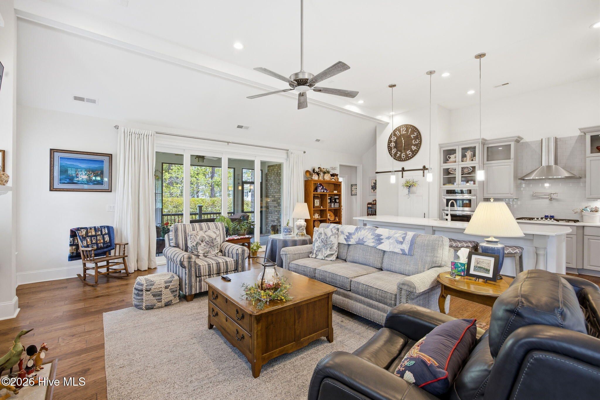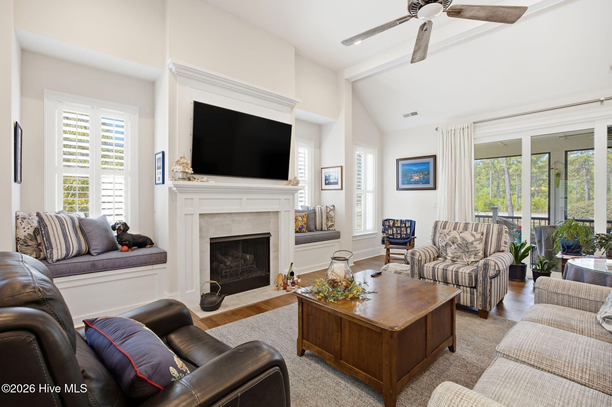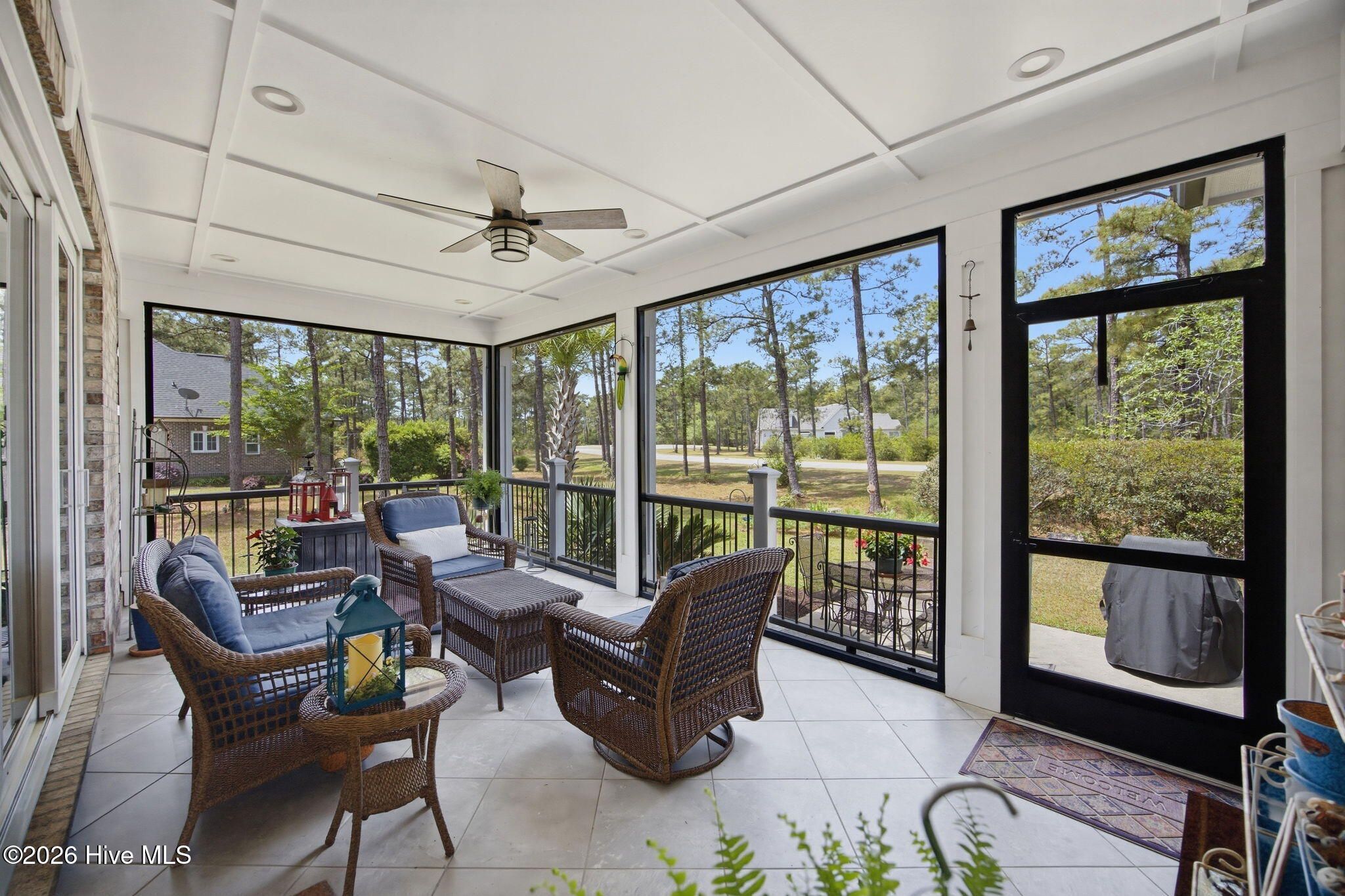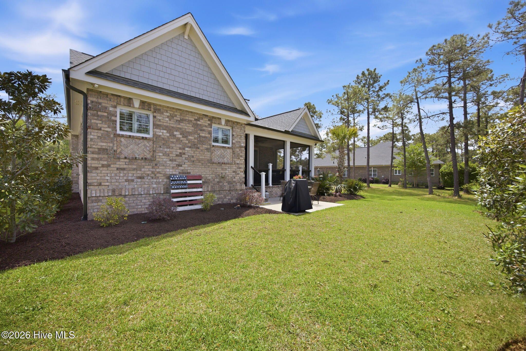 Welcome to this beautifully crafted home where brick and stone accents paired with Hardie siding create timeless curb appeal. A set of craftsman-style front doors with glass detailing opens to a dramatic foyer highlighted by soaring 18-foot ceilings and elegant wainscoting. Thoughtfully designed cased openings guide you into the main living spaces. To one side, a refined dining room features a coffered ceiling and detailed trim, while straight ahead the great room impresses with a 12-foot vaulted ceiling, striking faux beams, and a 36-inch vent-free fireplace with custom mantle and shiplap surround. Engineered hardwood floors flow throughout the main living areas, leading to expansive 12-foot PGT sliding doors that open onto a tiled, screened porch--perfect for enjoying peaceful pond views. The kitchen is both functional and beautifully appointed, centered around a large eat-in island and accented by a classic subway tile backsplash. Features include under-cabinet lighting, a pot filler, a 60/40 stainless farmhouse sink, soft-close cabinetry, a direct vent hood, and a full suite of LG stainless appliances including a convection microwave/oven combo, dishwasher, and 5-burner gas cooktop. A spacious pantry offers ample storage. The owner's suite is a true retreat, featuring a tray ceiling with double crown molding, ambient rope lighting, recessed lighting, USB outlets, and a generous walk-in closet. The spa-like bath includes dual vanities, porcelain tile flooring, and a zero-entry shower with bench seating, custom tile work, and a LED-lit niche. Additional highlights include a large laundry room with built-ins, utility sink, and adjacent mudroom space, as well as solid core doors throughout, a HERS energy rating, and a tankless water heater. Outdoor living is equally inviting with a screened and tiled rear porch complete with ceiling fan and lighting, 2 car garage with epoxy coated floor, an upgraded landscaping package, full irrigation system with drip lines, and a 12' x 12' patio--perfect for relaxing or entertaining. You'll appreciate the convenience of the extra-wide driveway, providing ample space for easy entry and exit at your new home. Property is located just a short stroll to the amenities center. Located in the golf course community of Ocean Ridge, an exceptional coastal Carolina location along with a private oceanfront Beach Club on Sunset Beach--recognized by National Geographic as one of the top beaches in the world. Residents enjoy an unmatched amenity package including 72 holes of championship golf, multiple clubhouses with dining, an owners' lounge, walking trails, a fitness and cardio center, indoor, outdoor, and children's pools, tennis and pickleball courts, parks, a community pavilion, and over 100 clubs and activities. Ocean Ridge has also been recognized as one of the ''Top 100 Communities in America'' by Where to Retire.