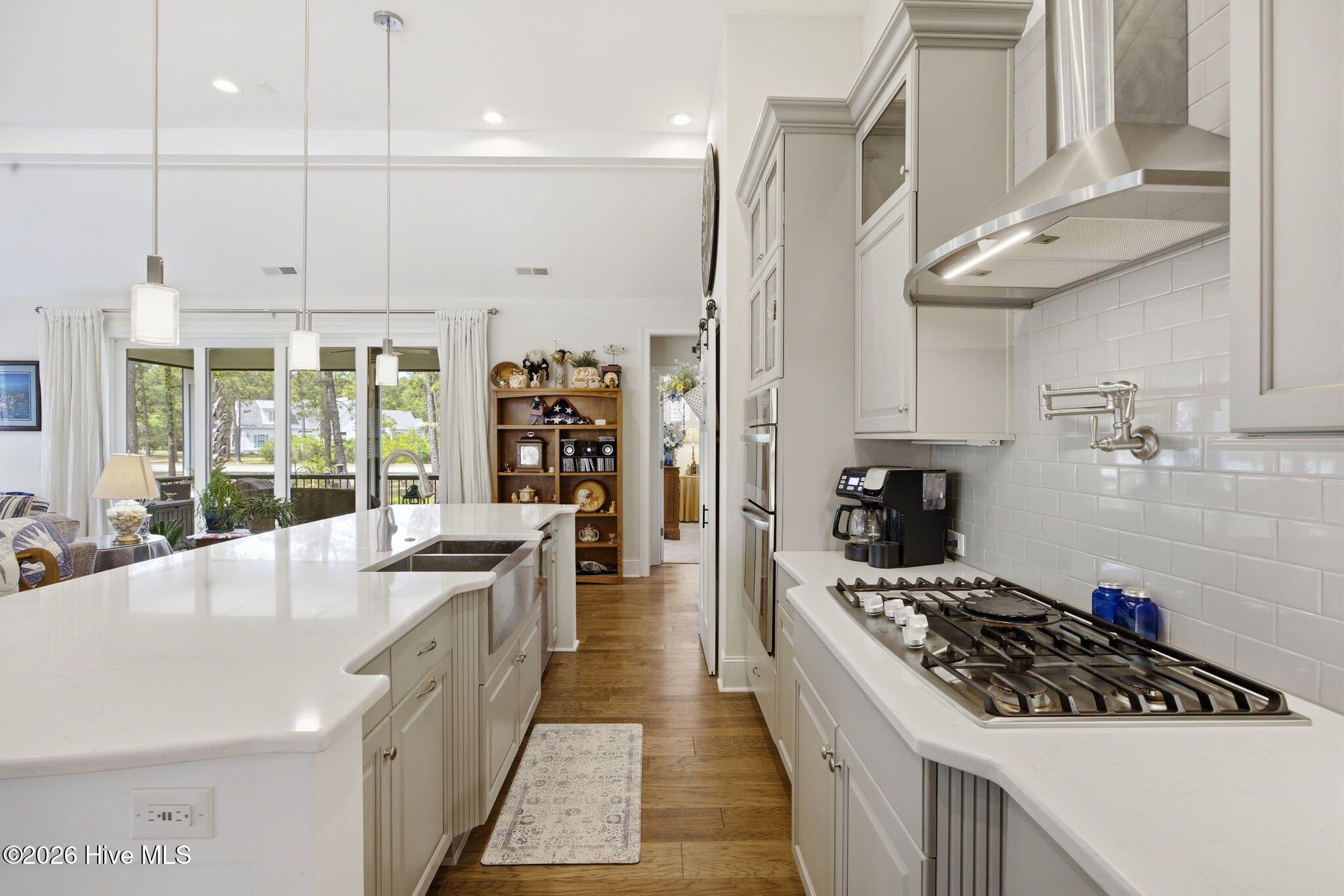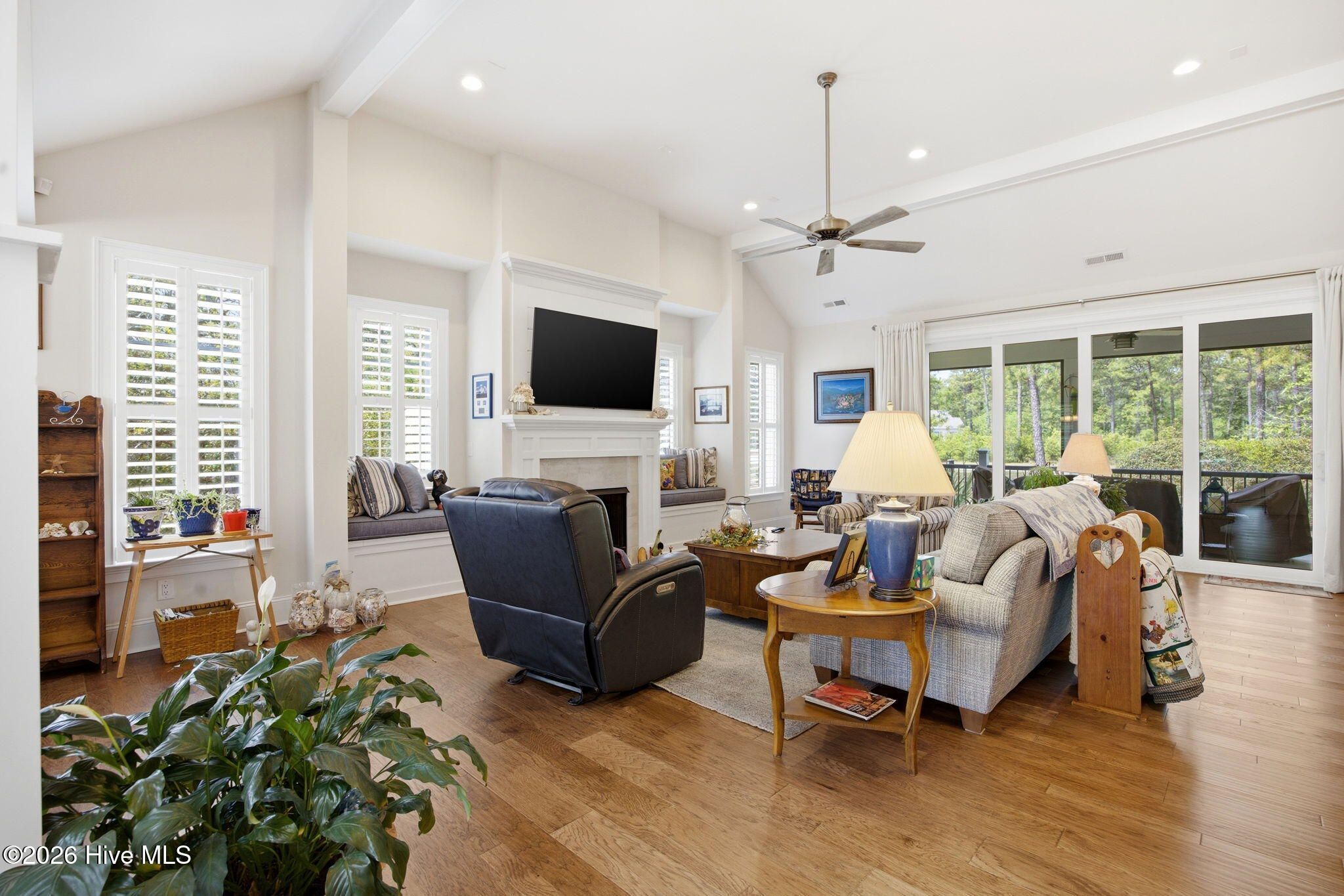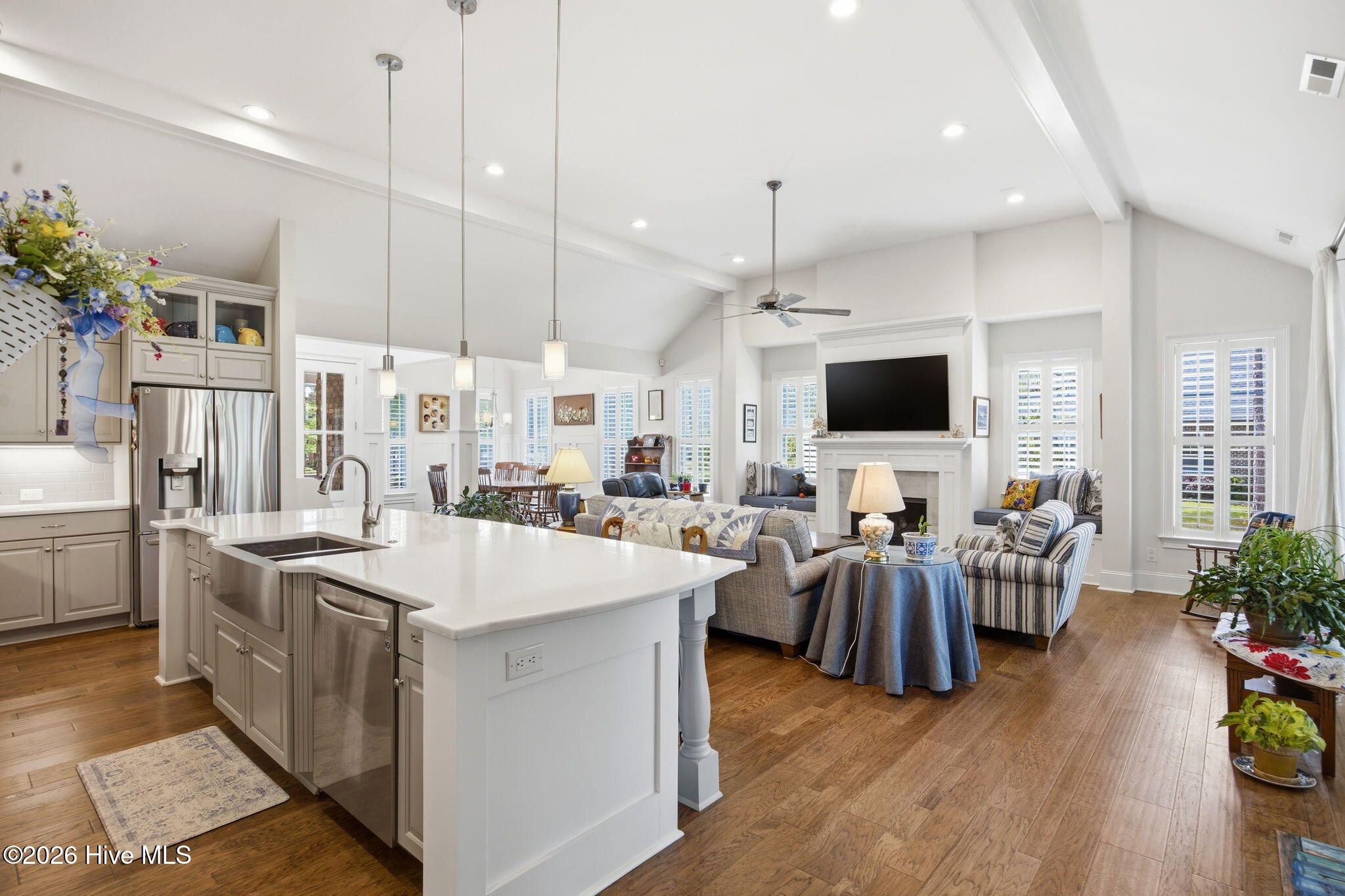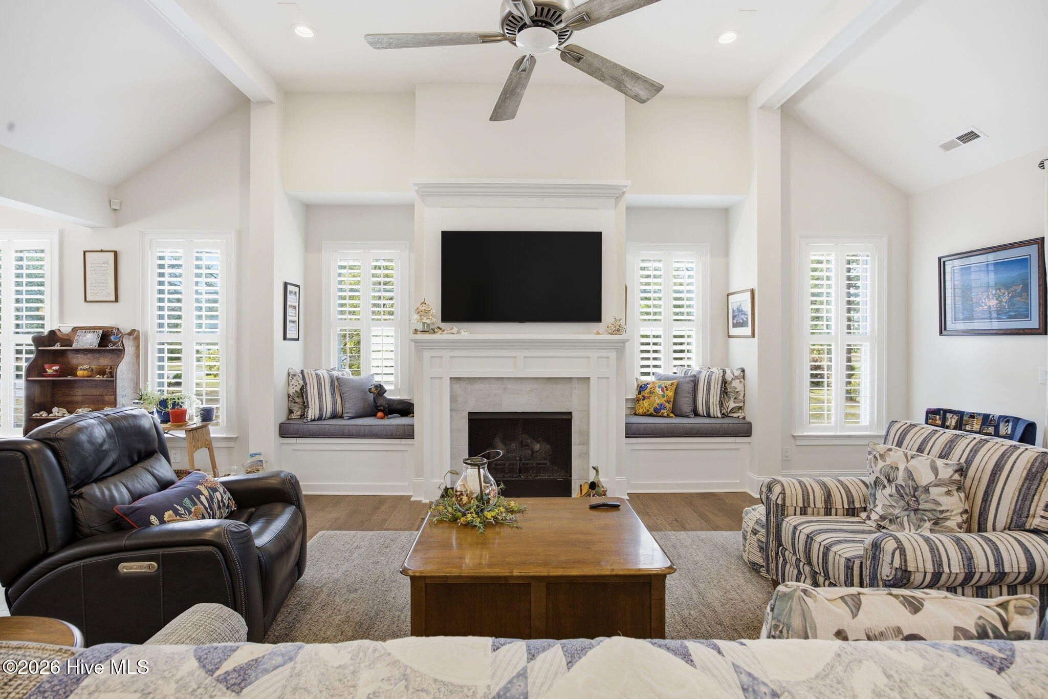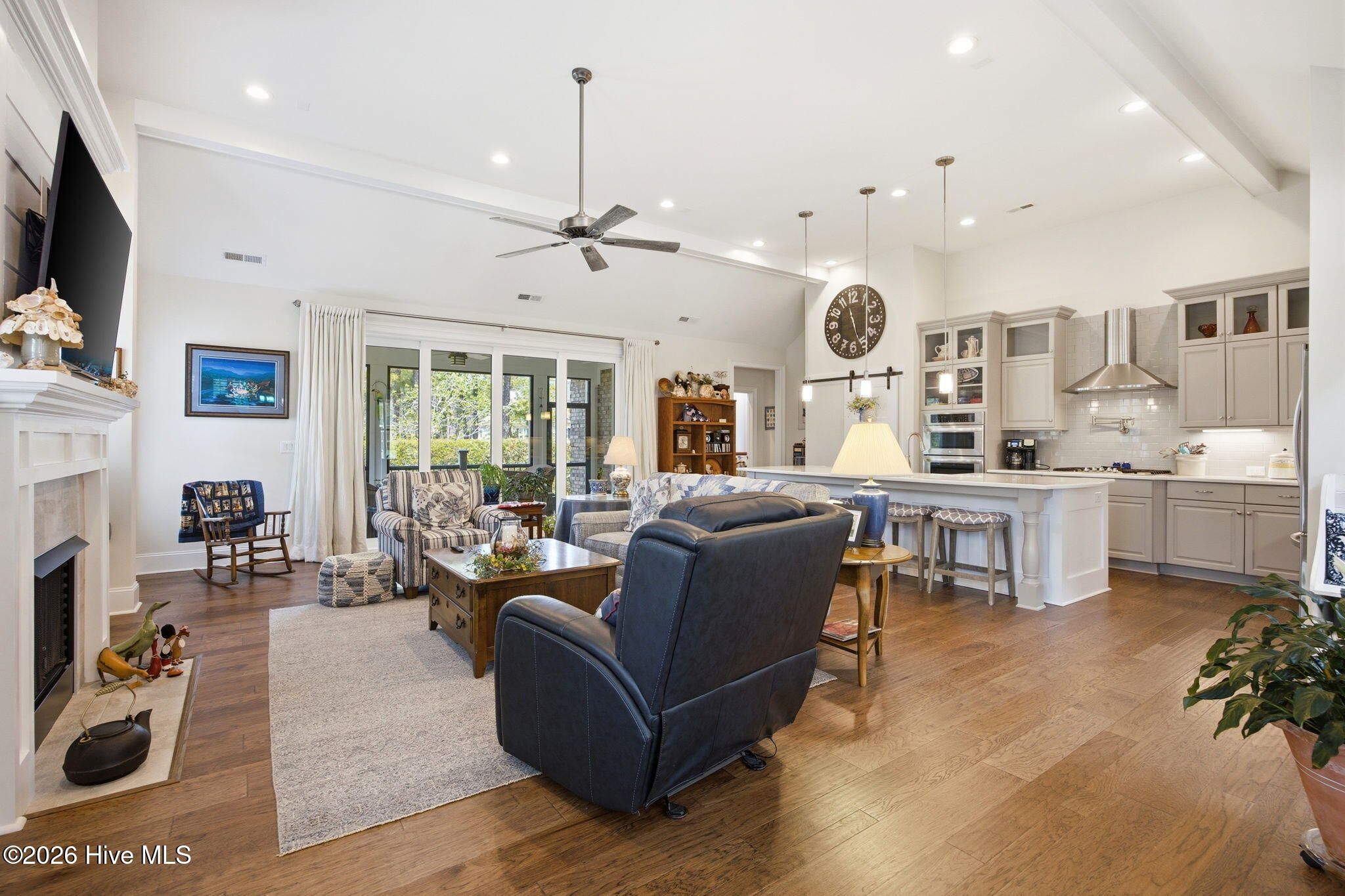 Welcome to this beautifully crafted home where brick and stone accents paired with Hardie siding create timeless curb appeal. A set of craftsman-style front doors with glass detailing opens to a dramatic foyer highlighted by soaring 18-foot ceilings and elegant wainscoting. Thoughtfully designed cased openings guide you into the main living spaces. To one side, a refined dining room features a coffered ceiling and detailed trim, while straight ahead the great room impresses with a 12-foot vaulted ceiling, striking faux beams, and a 36-inch vent-free fireplace with custom mantle and shiplap surround. Engineered hardwood floors flow throughout the main living areas, leading to expansive 12-foot PGT sliding doors that open onto a tiled, screened porch--perfect for enjoying peaceful pond views. The kitchen is both functional and beautifully appointed, centered around a large eat-in island and accented by a classic subway tile backsplash. Features include under-cabinet lighting, a pot filler, a 60/40 stainless farmhouse sink, soft-close cabinetry, a direct vent hood, and a full suite of LG stainless appliances including a convection microwave/oven combo, dishwasher, and 5-burner gas cooktop. A spacious pantry offers ample storage. The owner's suite is a true retreat, featuring a tray ceiling with double crown molding, ambient rope lighting, recessed lighting, USB outlets, and a generous walk-in closet. The spa-like bath includes dual vanities, porcelain tile flooring, and a zero-entry shower with bench seating, custom tile work, and a LED-lit niche. Additional highlights include a large laundry room with built-ins, utility sink, and adjacent mudroom space, as well as solid core doors throughout, a HERS energy rating, and a tankless water heater. Outdoor living is equally inviting with a screened and tiled rear porch complete with ceiling fan and lighting, 2 car garage with epoxy coated floor, an upgraded landscaping package, full irrigation system with drip lines, and a 12' x 12' patio--perfect for relaxing or entertaining. You'll appreciate the convenience of the extra-wide driveway, providing ample space for easy entry and exit at your new home. Property is located just a short stroll to the amenities center. Located in the golf course community of Ocean Ridge, an exceptional coastal Carolina location along with a private oceanfront Beach Club on Sunset Beach--recognized by National Geographic as one of the top beaches in the world. Residents enjoy an unmatched amenity package including 72 holes of championship golf, multiple clubhouses with dining, an owners' lounge, walking trails, a fitness and cardio center, indoor, outdoor, and children's pools, tennis and pickleball courts, parks, a community pavilion, and over 100 clubs and activities. Ocean Ridge has also been recognized as one of the ''Top 100 Communities in America'' by Where to Retire.