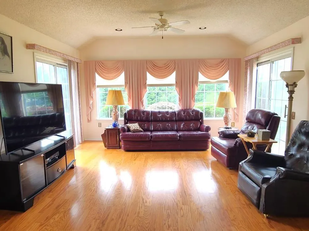 - Cathedral Ceiling(s), Shades, Vaulted Ceiling(s), Entrance Foyer, Bedroom, Kitchen, Living Room, Full Bathroom, Bath on Main Level, Dining Room, Family Room, None