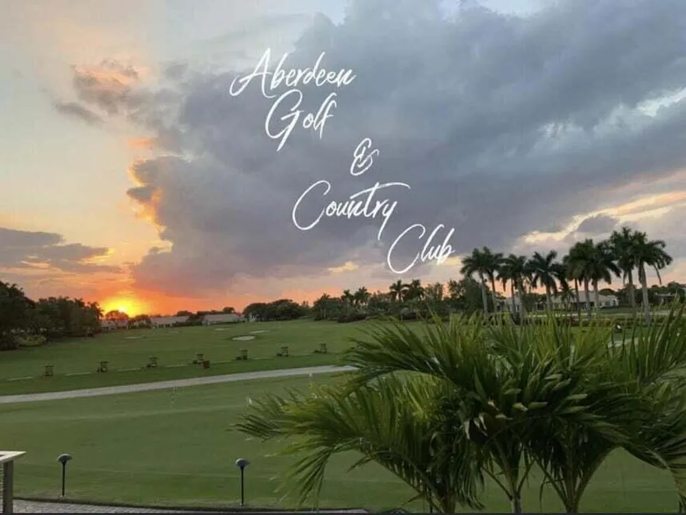 Two Bedroom + Den/office (easily convertible), two full bath 2,175 sq ft home. This is an opportunity to personalize and update to your taste. HOA includes exterior pest control, exterior house painting, lawn care and cable . Live the dream at Aberdeen golf and country club featuring 40,000 sq. ft. modern Clubhouse, state of the art tennis complex , 14 Har-Tru tennis courts, state of the art fitness center, card rooms and restaurants, access Jim Fazio's spectacular golf course. Golf & Tennis membership optional. Aberdeen is in a location that is private, beautiful and convenient to the ocean, 15 miles from PB Int'l Airport, area shopping and fine dining. Whether you are looking for a full-time or seasonal residence, superior services and location makes living here an easy choice.
