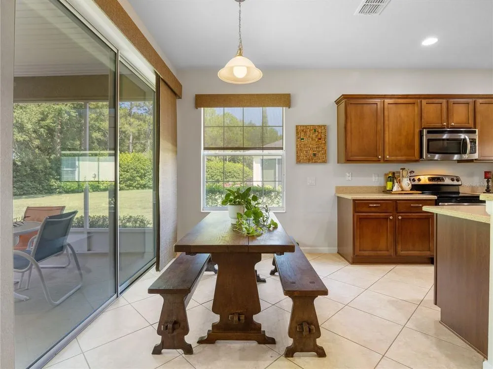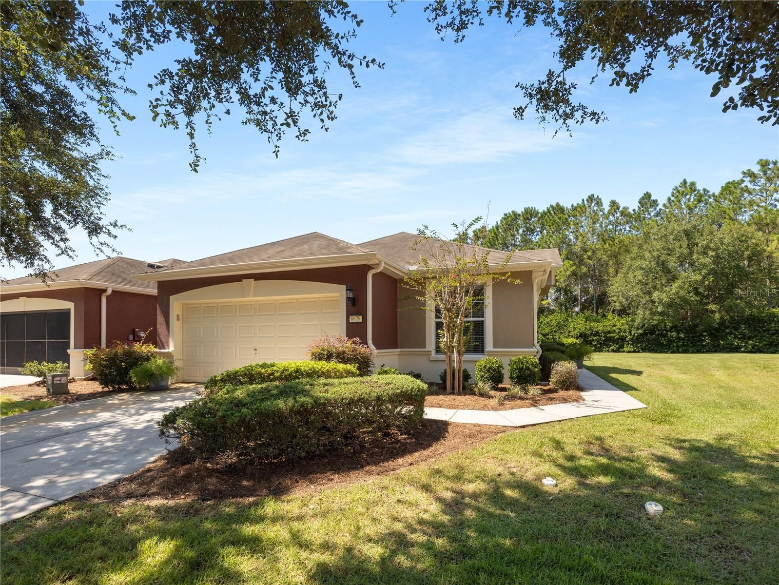 Welcome to this beautifully designed Alexander model villa located in the highly desirable 55+ community of Del Webb Stone Creek. Sitting on a spacious quarter-acre lot, this 2-bedroom, 2-bathroom home also includes a versatile flex room with elegant French doors, offering the perfect space for a home office, hobby room, or guest retreat. Step outside to your private screened-in lanai, where you’ll enjoy tranquil views of mature trees with no neighbors behind you—perfect for morning coffee or relaxing evenings. The maintenance-free lifestyle means all exterior upkeep is handled for you, including lawn care, roof repair, maintenance, and even replacement, giving you peace of mind and more time to enjoy what matters most. Inside, the villa offers an open-concept design with natural light throughout, creating a warm and welcoming atmosphere. As a resident of Stone Creek, you’ll also have access to world-class amenities, including a championship golf course, resort-style pool, fitness center, pickleball, and a wide range of social clubs and activities. This villa is the perfect combination of comfort, convenience, and low-maintenance living in one of Ocala’s most sought-after communities.