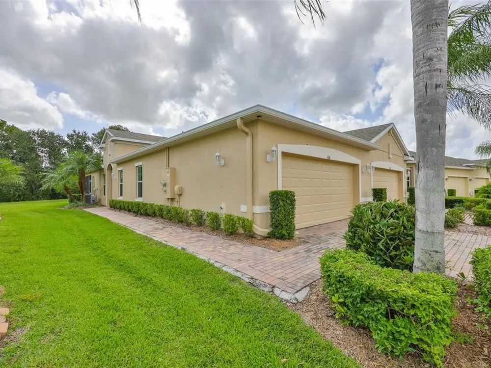 NEW ROOF! HURRICANE SHUTTERS! MOVE-IN READY LUXURY VILLA IN GATED VERONA AT SUN CITY CENTER Welcome to low-maintenance living in the desirable 55+ community of Verona at Renaissance. This beautifully maintained Buttonwood model villa offers nearly 1,600 sq. ft. of open-concept living with 3 bedrooms, 2 full bathrooms, and a 2-car garage. Built in 2016, the home features high ceilings, elegant finishes, and serene views of the wooded preserve. The kitchen is a standout with granite countertops, 42" upper cabinets, pull-out drawers, stainless steel appliances, tile backsplash, pantry, and a center island with bar seating! Perfect for cooking and entertaining. The spacious great room features tray ceilings and recessed lighting and flows seamlessly into the dining area and screened lanai. The owner's suite is located at the rear of the home for privacy and includes peaceful backyard views, a granite double vanity, a walk-in shower, and a large walk-in closet. Two additional bedrooms (one ideal as an office or den) and a full-size laundry room complete the layout. Step outside to your screened, covered lanai and enjoy the quiet preserve setting. Upgrades include a 2024 roof, hurricane shutters, paver driveway and walkway, custom blinds, and neutral finishes throughout. HOA covers lawn care, exterior painting, roof replacement, and gated security, making this truly maintenance-free living. Residents of Verona enjoy access to their private neighborhood pool and are just minutes from Club Renaissance, featuring a resort-style pool, fitness center, spa, indoor walking track, dining, and a full calendar of social activities. Located in Sun City Center, one of Florida's top-rated 55+ communities, with over 200 clubs, golf, pickleball, tennis, shopping, dining, and world-class medical facilities -- all golf cart accessible. Close to Tampa, Sarasota, beaches, and Orlando attractions. Don't miss this opportunity! Schedule your private tour today!!