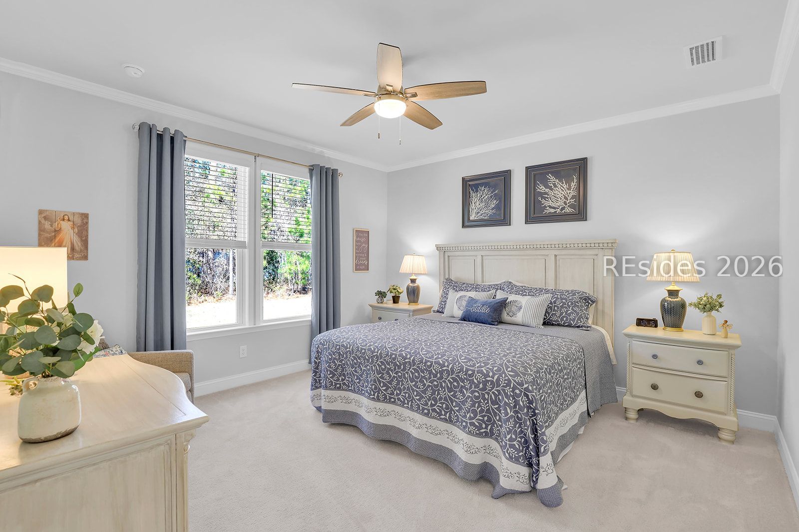 - Ceiling Fan(s), Carbon Monoxide Detector, Main Level Primary, Multiple Primary Bathrooms, Smooth Ceilings, Window Treatments, Eat-in Kitchen, New Paint, Pantry