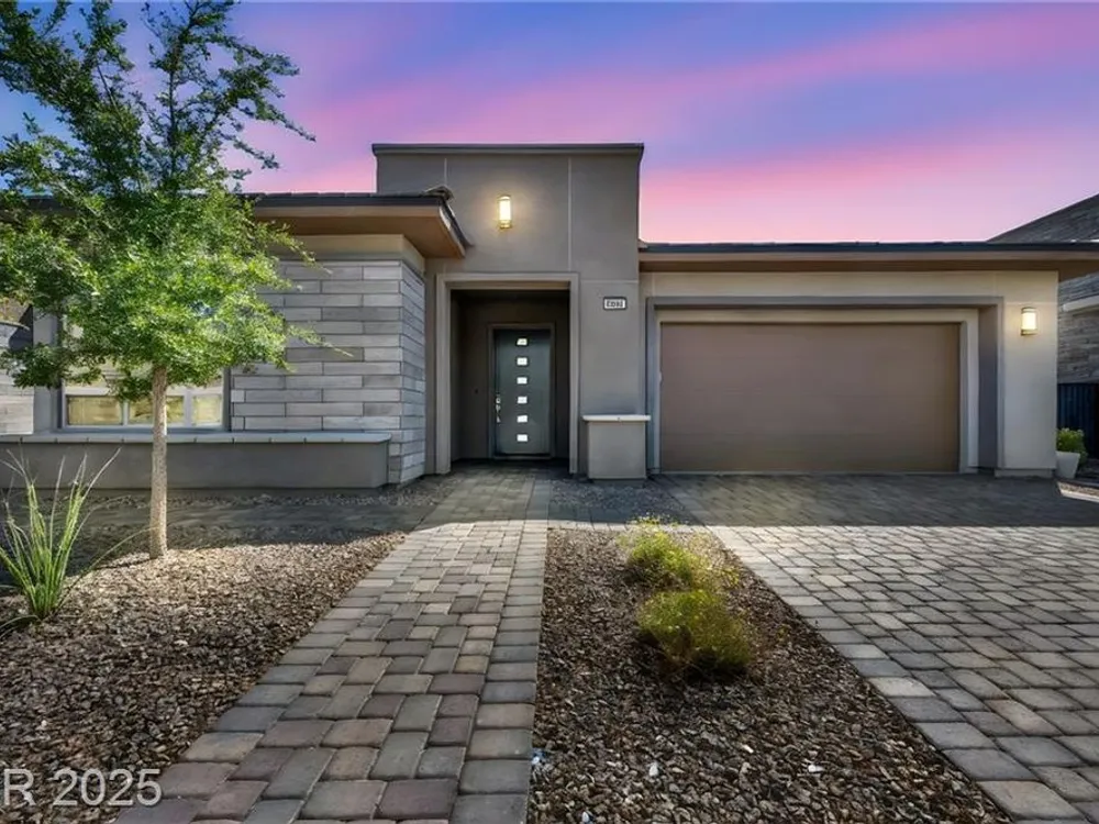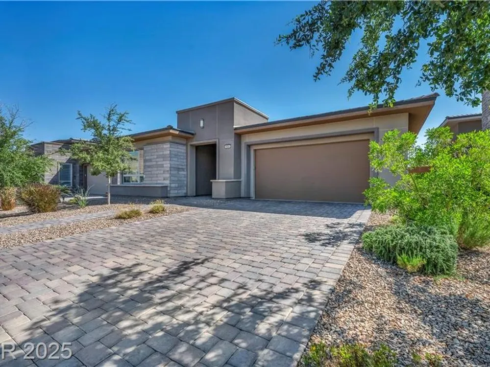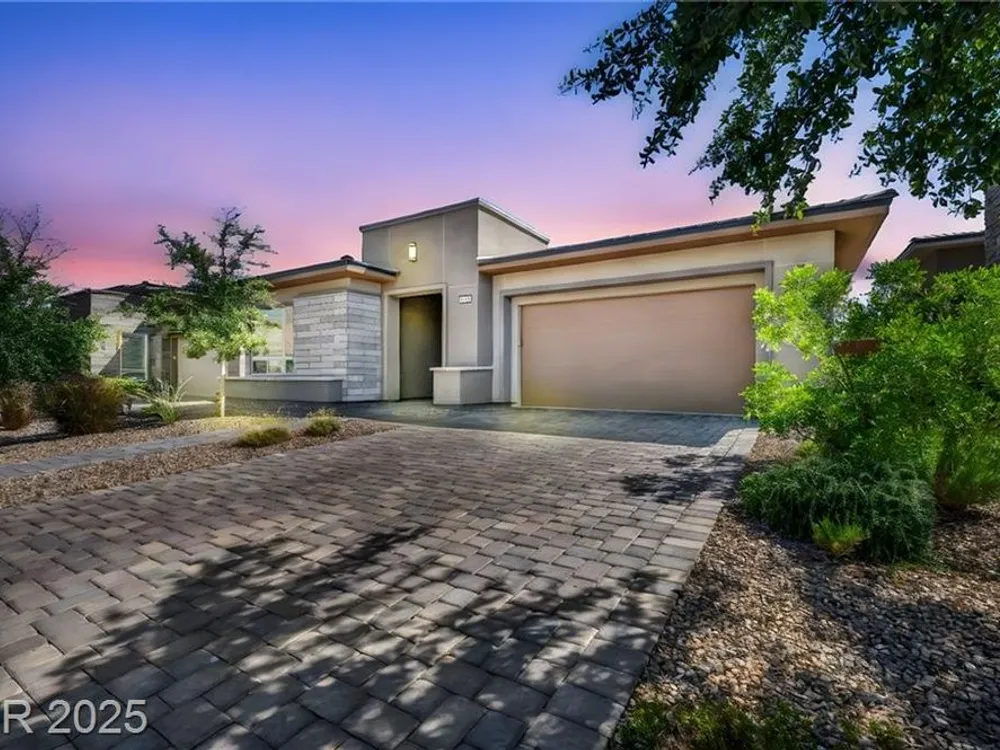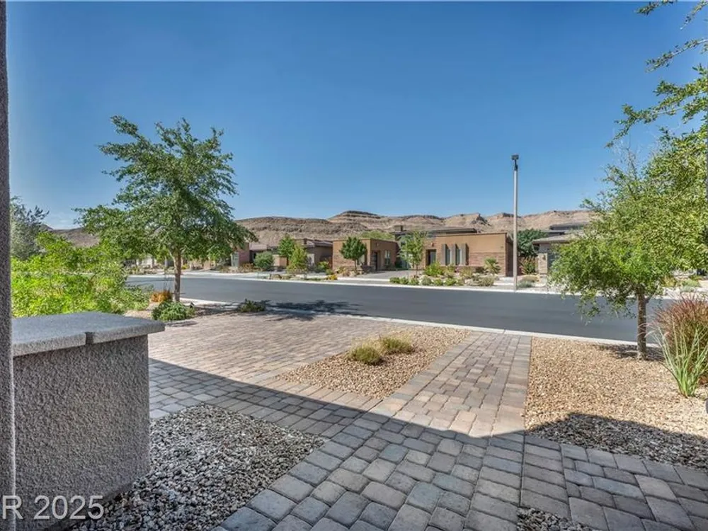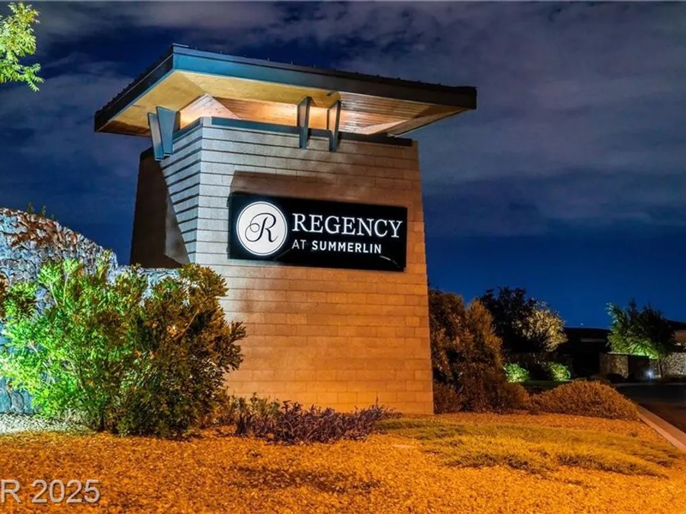 This thoughtfully designed Delamar is ideal for those who value style & function. Covered entry leads into a grand foyer which overlooks a beautiful open floor plan. Centrally located den—perfect for formal dining or home office. Sleek & Stylish modern kitchen features quartz counters, large island, stainless steel appliances incl. double oven, gas cooktop, French door fridge + designer pendant lighting. Dining area is filled w natural light from expansive bi-parting sliders leading to a clear span covered patio for seamless indoor/outdoor living. Primary suite boasts a spa-inspired bath w/ luxe shower, dual vanities w/ makeup area & walk-in closet. Guest room enjoys mountain views & nearby full bath. Add'l highlights: 10' ceilings throughout, conveniently located laundry w/ access to kitchen & garage. Regency at Summerlin is a guard gated community that offers resort-style amenities, including a 22,000 sq ft clubhouse w indoor/outdoor pools, spa, pickleball + social event calendar!