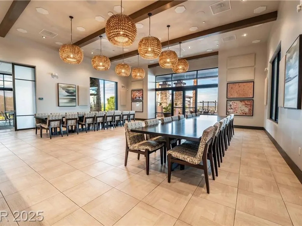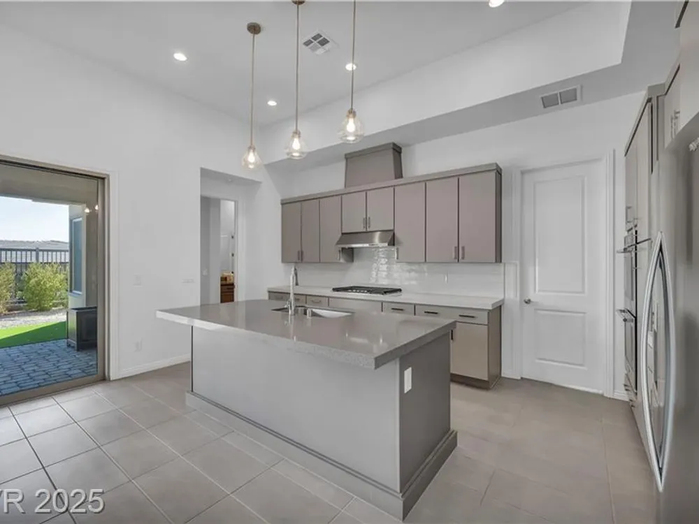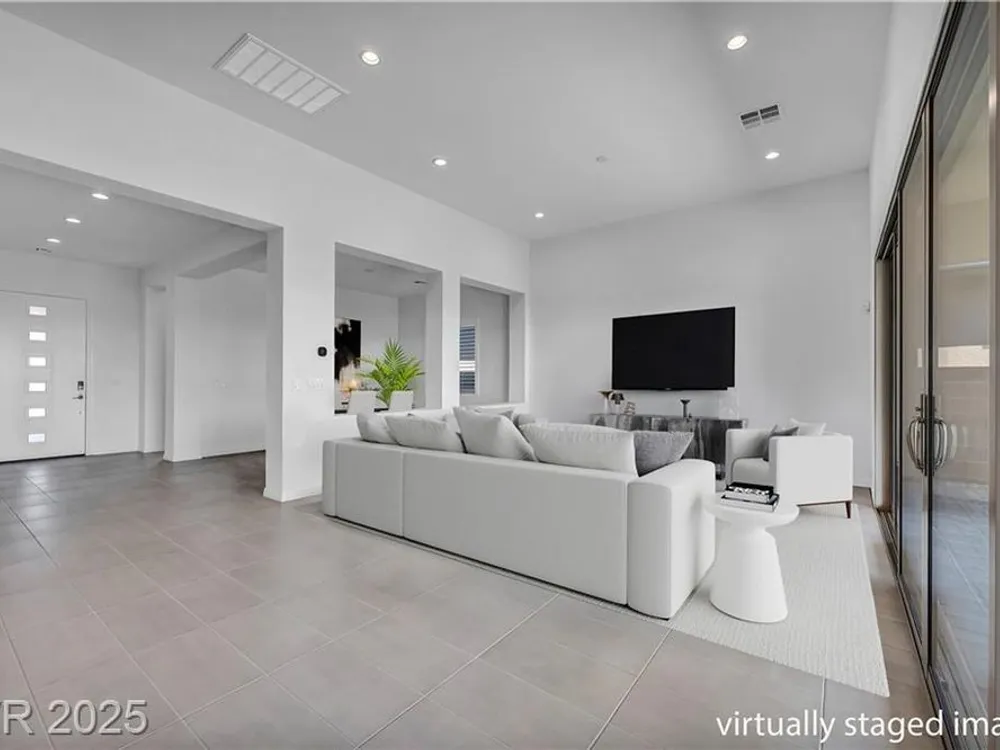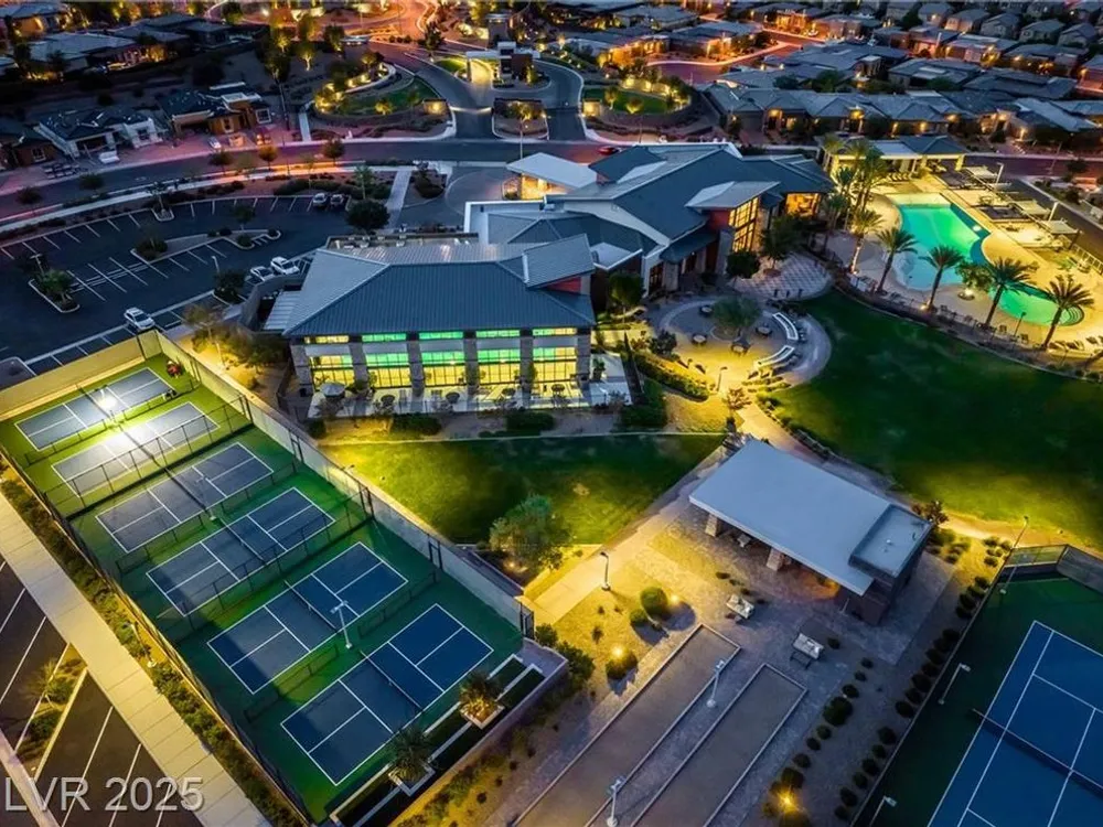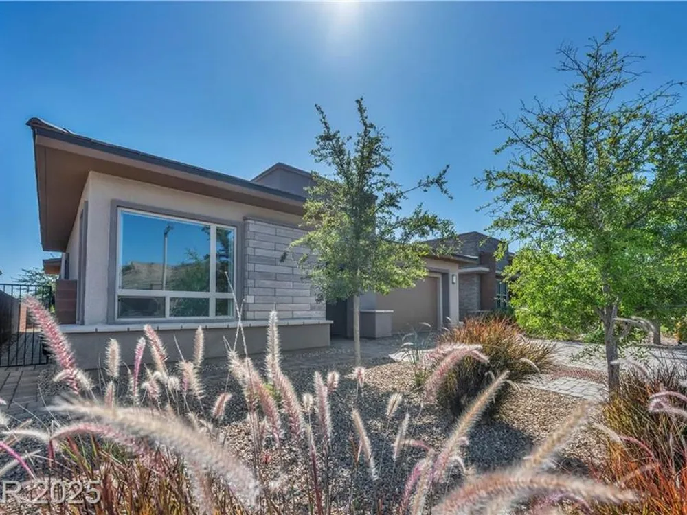 This thoughtfully designed Delamar is ideal for those who value style & function. Covered entry leads into a grand foyer which overlooks a beautiful open floor plan. Centrally located den—perfect for formal dining or home office. Sleek & Stylish modern kitchen features quartz counters, large island, stainless steel appliances incl. double oven, gas cooktop, French door fridge + designer pendant lighting. Dining area is filled w natural light from expansive bi-parting sliders leading to a clear span covered patio for seamless indoor/outdoor living. Primary suite boasts a spa-inspired bath w/ luxe shower, dual vanities w/ makeup area & walk-in closet. Guest room enjoys mountain views & nearby full bath. Add'l highlights: 10' ceilings throughout, conveniently located laundry w/ access to kitchen & garage. Regency at Summerlin is a guard gated community that offers resort-style amenities, including a 22,000 sq ft clubhouse w indoor/outdoor pools, spa, pickleball + social event calendar!