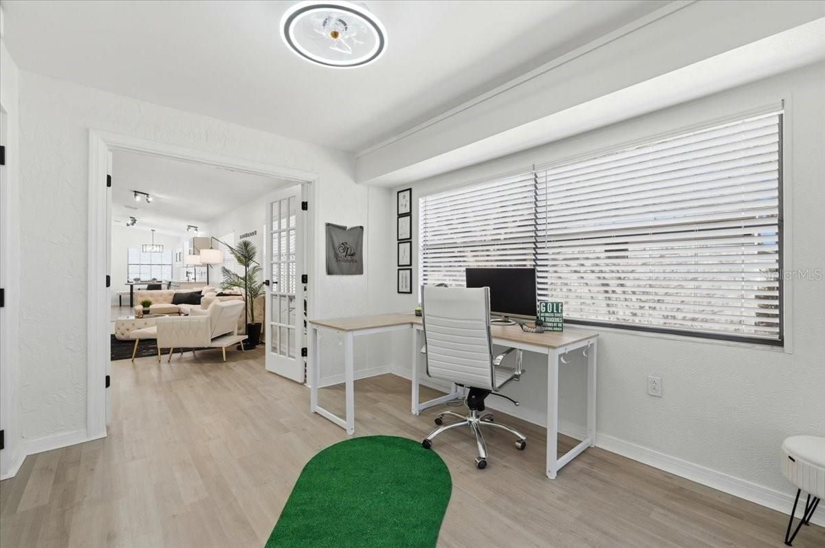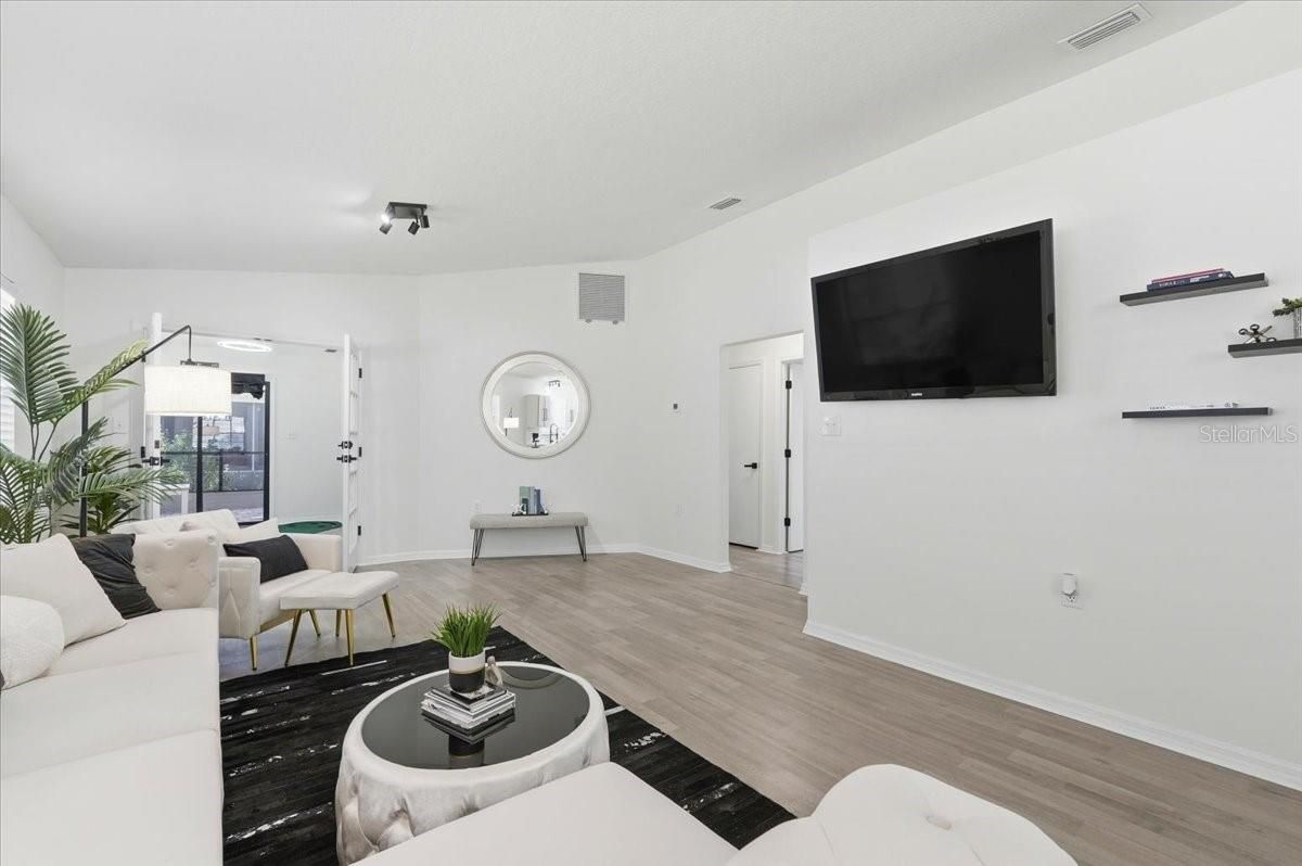Experience effortless Florida living in this beautifully updated 2-bedroom, 2-bath residence located within the highly desirable Sandpiper Golf & Country Club community. Thoughtfully redesigned from top to bottom, the home showcases modern finishes, a light and open floor plan, and stylish upgrades throughout. The kitchen serves as the heart of the home, featuring newly installed cabinetry, granite countertops, a striking waterfall backsplash, and stainless steel appliances—perfect for both everyday living and entertaining. Spacious bedrooms offer comfort and privacy, while both full baths have been tastefully renovated with contemporary finishes, including retiled walk-in showers, smart mirrors, upgraded fixtures, and a stylish barn door feature that adds both character and function. A versatile study or office provides the ideal flex space for working from home or pursuing hobbies and opens to a covered lanai which is an inviting space for morning coffee or evening relaxation. Additional updates include new window coverings, a 2021 roof, and a 2019 HVAC system for added peace of mind. Enjoy maintenance-friendly living with low monthly HOA fees that include lawn care, irrigation, cable TV, and internet. Residents of Sandpiper Golf & Country Club have access to a wide array of amenities, including a clubhouse, community pool, tennis and pickleball courts, fitness center, shuffleboard, on-site dining, and an 18-hole golf course.