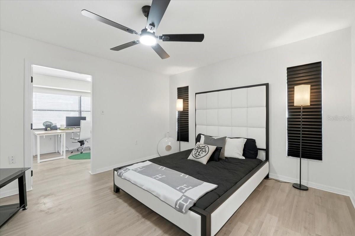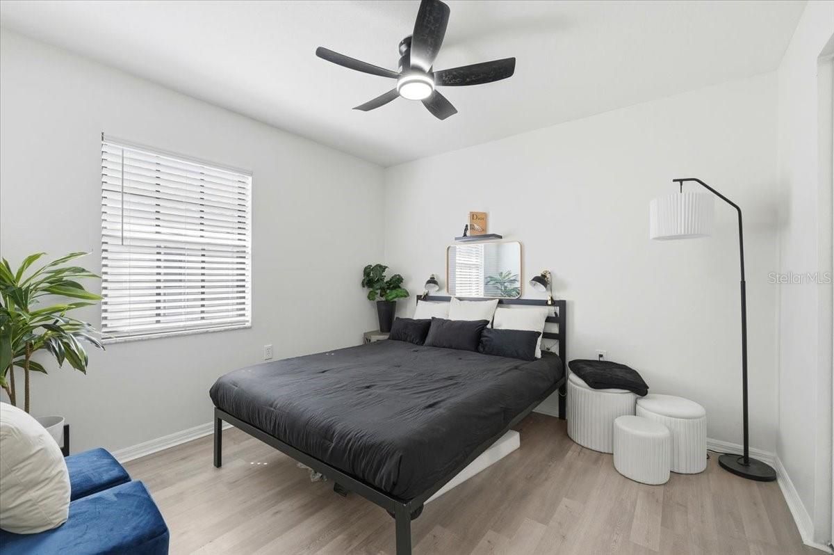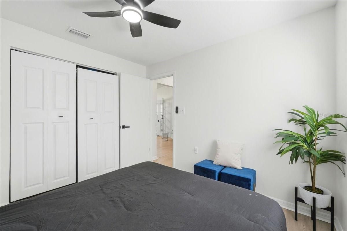- Ceiling Fan(s), High Ceilings, Solid Surface Counters, Solid-Wood Cabinets, Thermostat, Walk-In Closet(s)