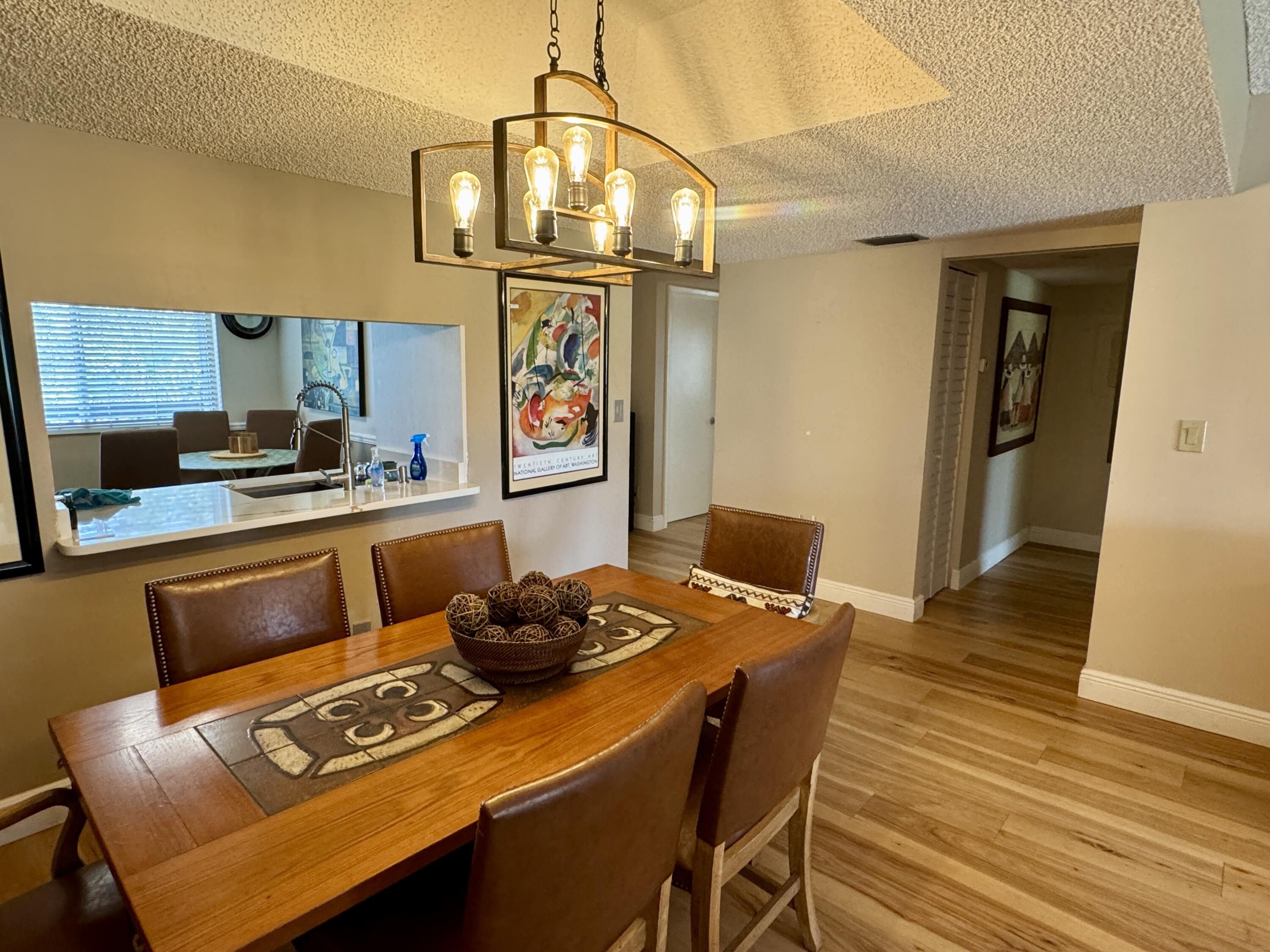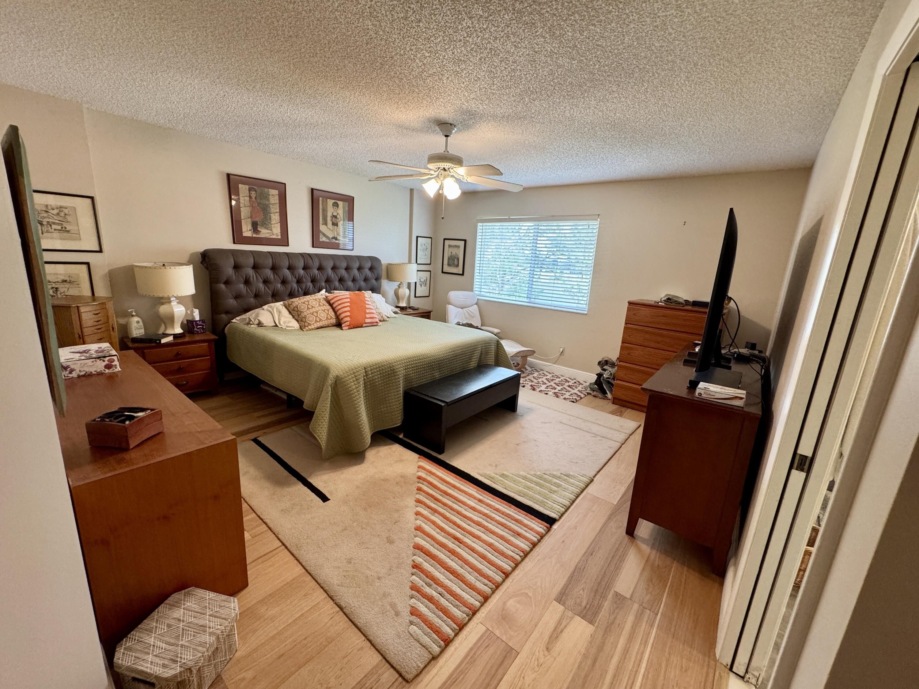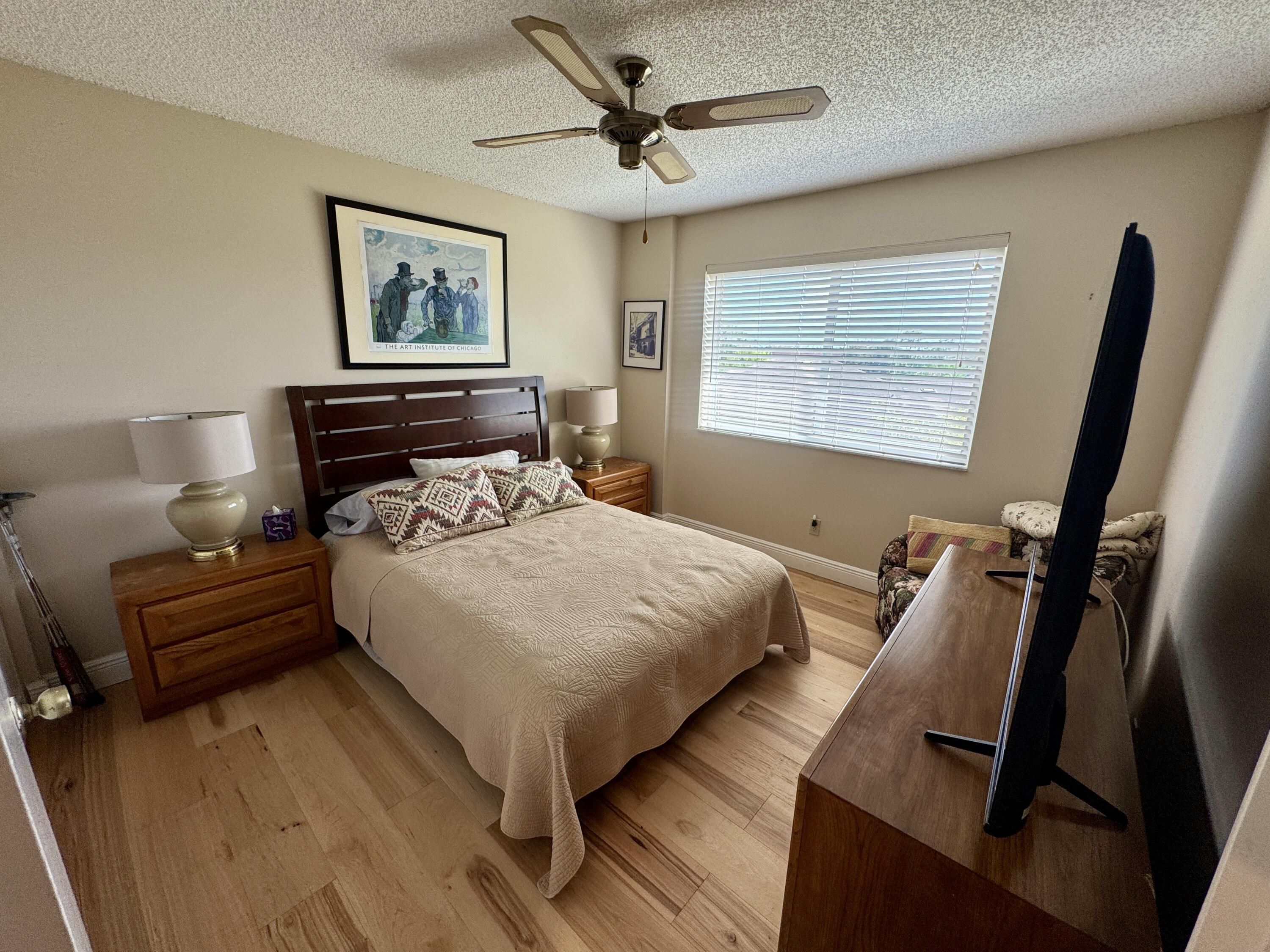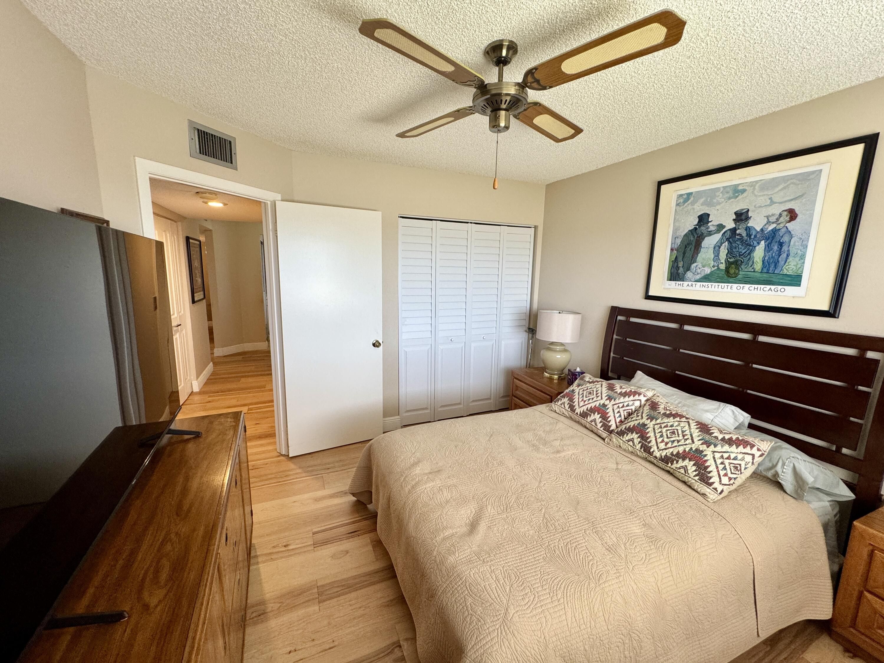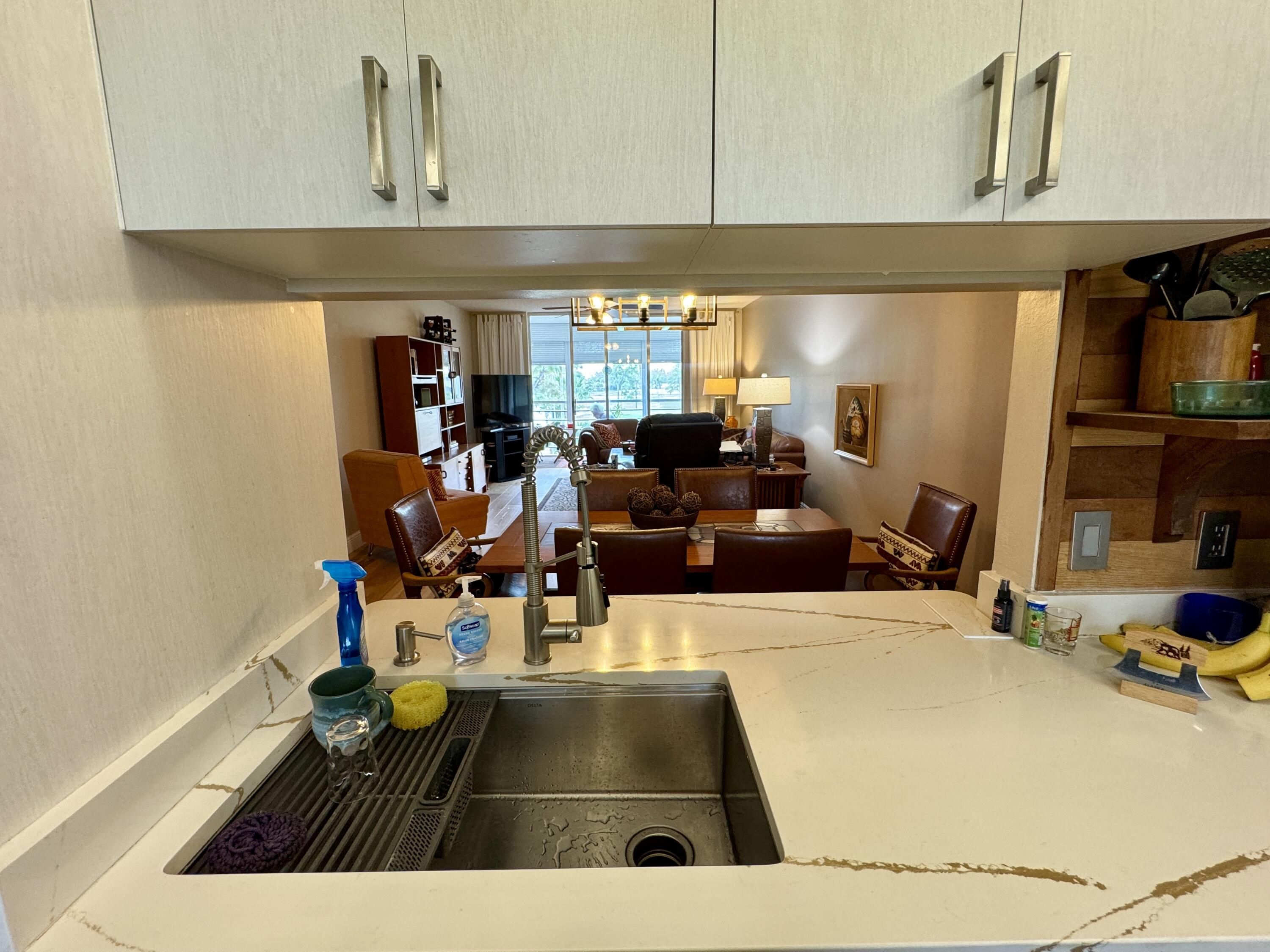 Rare 4th-top floor, corner condo with beautiful golf course views.This spacious 3-bedroom, 2-bath unit offers over 1,505 sq ft of bright, airy living space with abundant natural light and a screened patio perfect for relaxing or entertaining.The whole units has wood floors,and light color walls.the kitchen with granite counters,and SS appliances.Large primary suite featuring a walk-in closet and modern bath.Two more bedrooms one with a custom made wall unit and a Murphy bed. Very active 55+community,Pay as you play Golf course,Residents enjoy resort-style amenities, including a clubhouse, Bistro,2 pools, fitness center, and social activities. New roof 2024,accordion shutters.Maintenance fee includes water, cable, building insurance, exterior maintenance,elevator,pest control,reserves. Second bedroom could be used as a comfortable guest or office space. Screened patio perfect spot for morning coffee or evening breezes overlooking the greens of the golf course. Ideally located near shopping, restaurants, medical facilities,very close to Floridas great beaches and major roadways, this condo combines comfort, convenience, and an active lifestyle in South Florida. All appliances recently replaced .