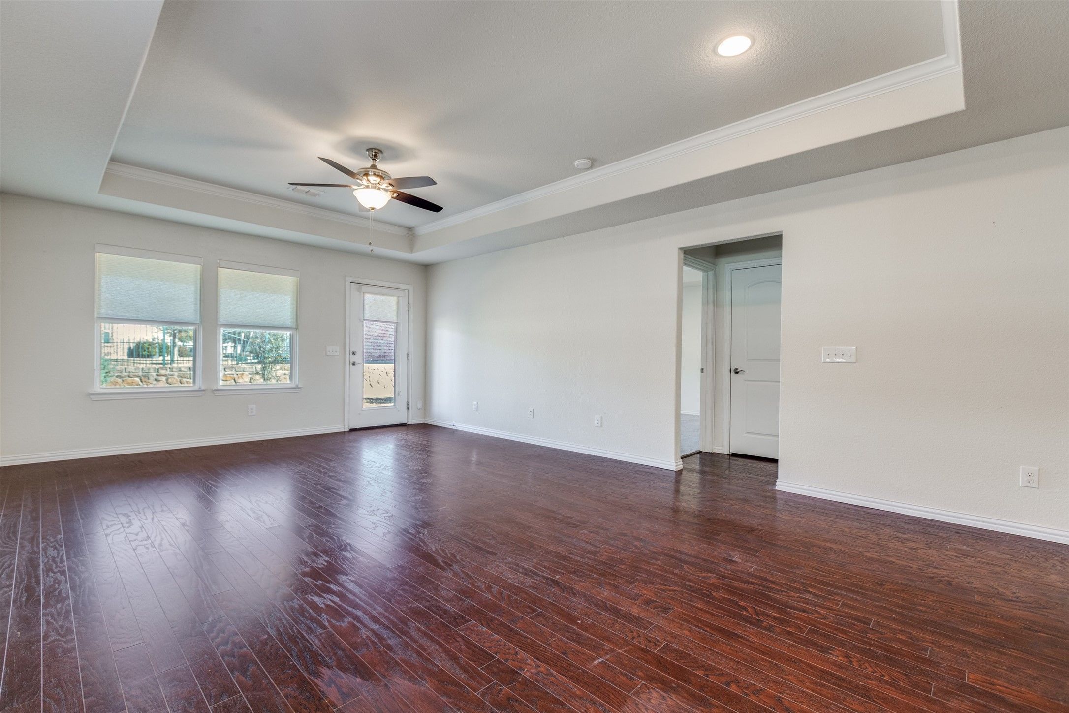 Welcome to Del Webb at Frisco Lakes adult community living! This thoughtfully designed home offers an open-concept layout with rich wood flooring, abundant natural light, and a spacious kitchen featuring granite countertops, stainless appliances, ample cabinetry, and a large island perfect for entertaining. The seamless flow into the living and dining areas creates an inviting space for gatherings or quiet evenings at home. Enjoy peaceful mornings and shaded afternoons on the covered patio overlooking a beautifully maintained yard. The private primary suite provides a relaxing retreat, while flexible secondary space can serve as a guest room, hobby area, or home office. Residents of Del Webb enjoy resort-style amenities including a clubhouse, fitness center, pools, pickleball, walking trails, and a full calendar of social activities. Conveniently located near PGA Headquarters, shopping, dining, golf, and major highways, this home offers low-maintenance living and an active lifestyle in one of Frisco’s premier adult communities.