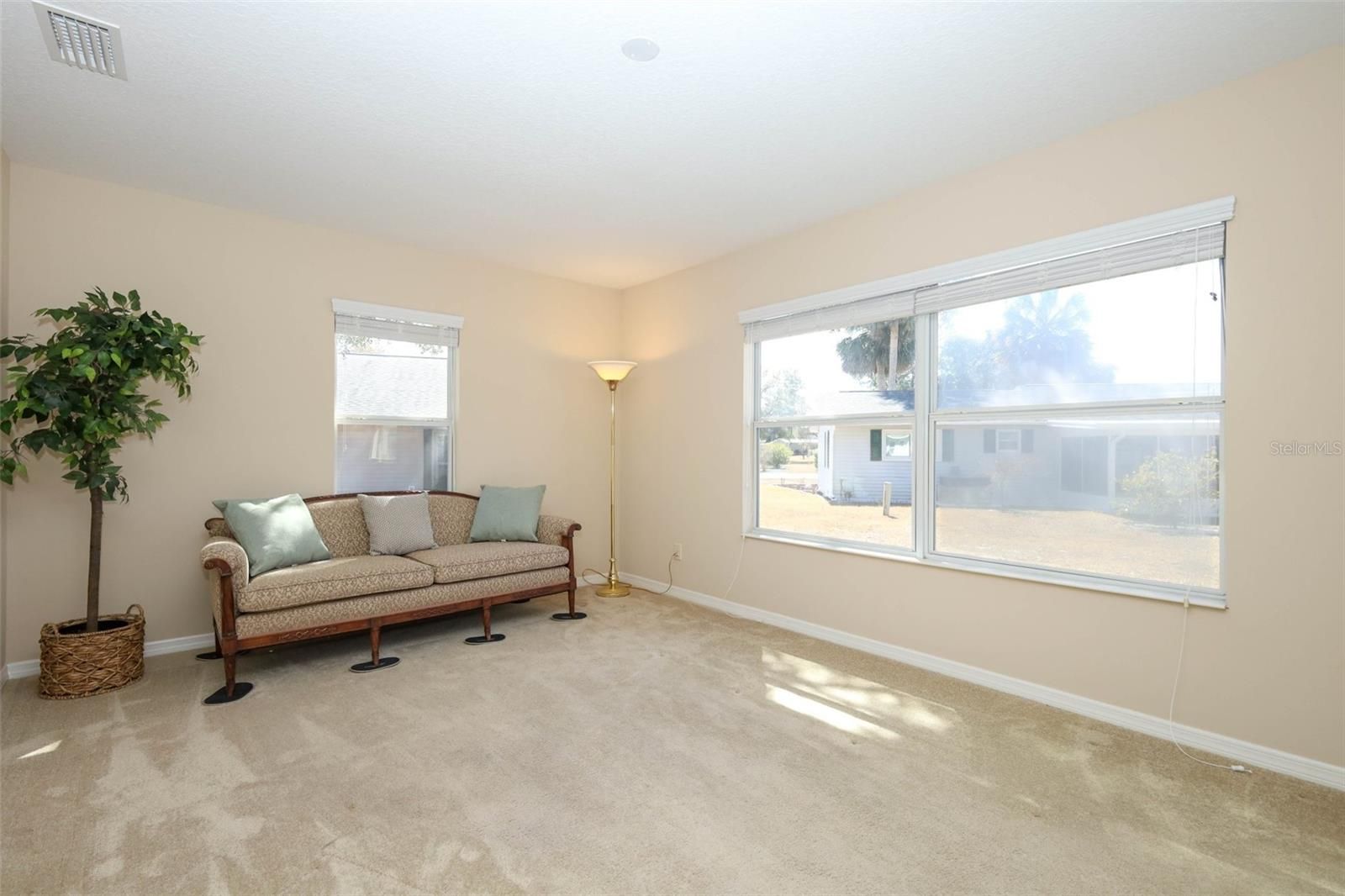 Welcome to this loved and well-maintained 2-bedroom, 2-bath home situated on an oversized corner lot in the desirable Scottish Highlands 55+ community. Filled with natural light throughout, this home offers a thoughtful layout with a primary suite featuring an en-suite bath and walk-in closet, while the secondary bedroom includes a private entrance. Both bathrooms feature walk-in showers with built-in seating and safety handles. Along with the living and dining spaces, this layout offers a flexible bonus room that can work as an office, hobby room, storage space or reading nook. Additional features include a one-car garage with washer and dryer included, extra storage space, and a ramp for easy access. Enjoy low-maintenance living with a low HOA that includes cable, internet, sewer services, and maintenance of amenities and common areas. Scottish Highlands offers exceptional amenities including tennis/pickleball, bocce, shuffleboard, an outdoor and indoor heated pool with lift access, hot tub, community centers, a plethora of social activities, clubs and classes, optional RV/boat storage available for a small fee and MORE. This home is conveniently located near shopping, dining, and 2 major hospitals. With easy access to major roadways, the Harris Chain of Lakes and being only minutes from community events and festivals in Mount Dora, Eustis, and Tavares, this is the place for you!