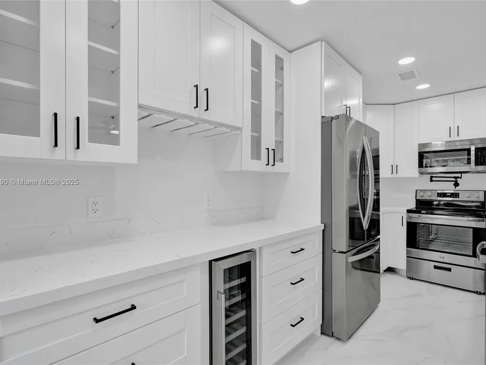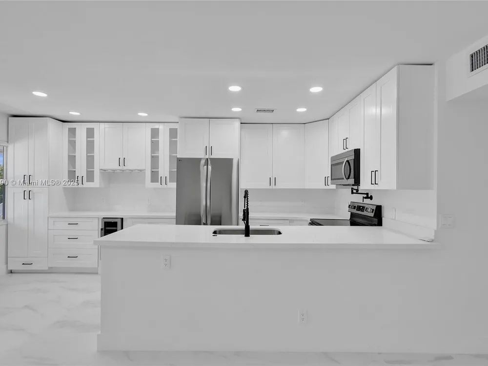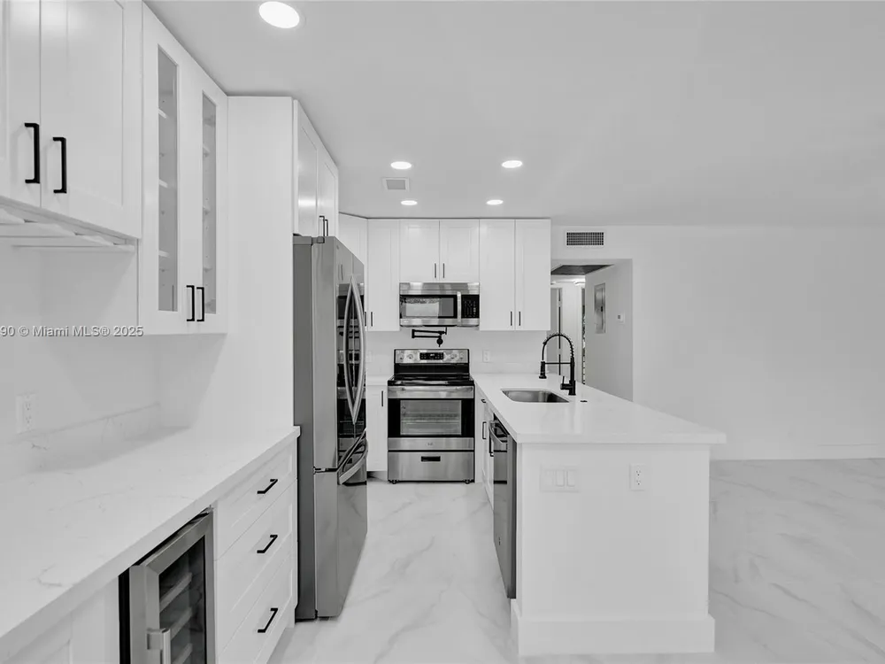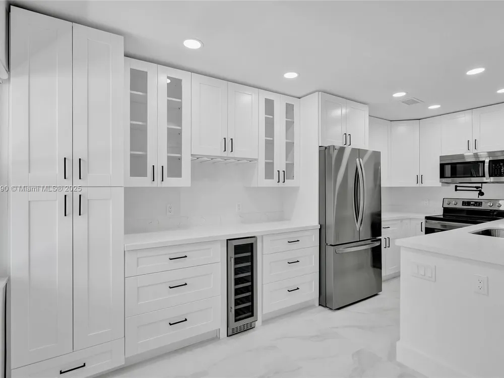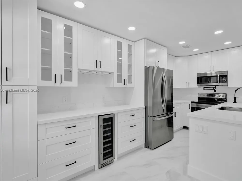 Step into this freshly renovated unit featuring impact windows and doors throughout.The open-concept kitchen is a chef’s dream with ample cabinet space, a pot filler for convenience, and a built-in wine cooler for wine enthusiasts. Enjoy porcelain tile flooring, modern zebra blinds, and beautifully upgraded bathrooms. The community offers courtesy buses to nearby shopping and beaches, plus an array of amenities including multiple pools, theater, exercise room, pickleball courts, and more. This stunning unit truly has it all, don’t miss the chance to make it yours!