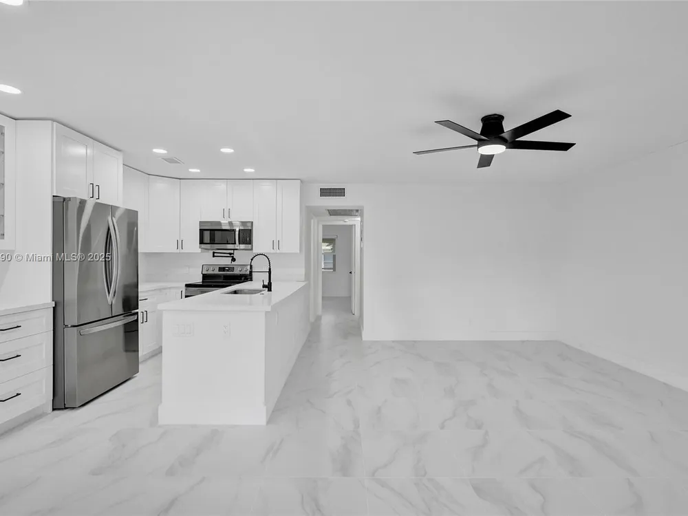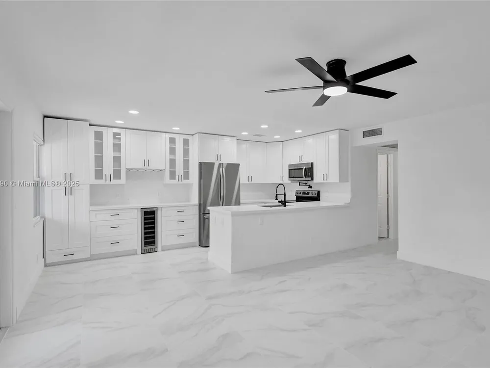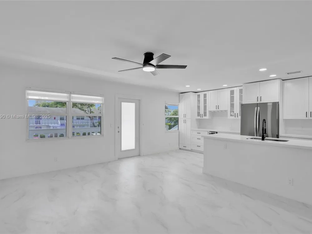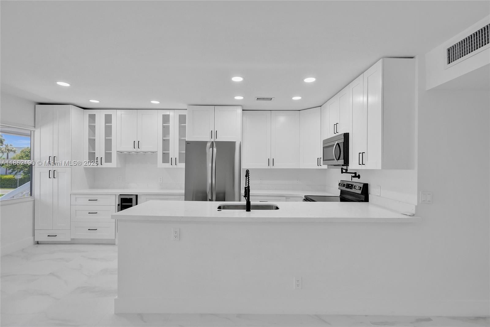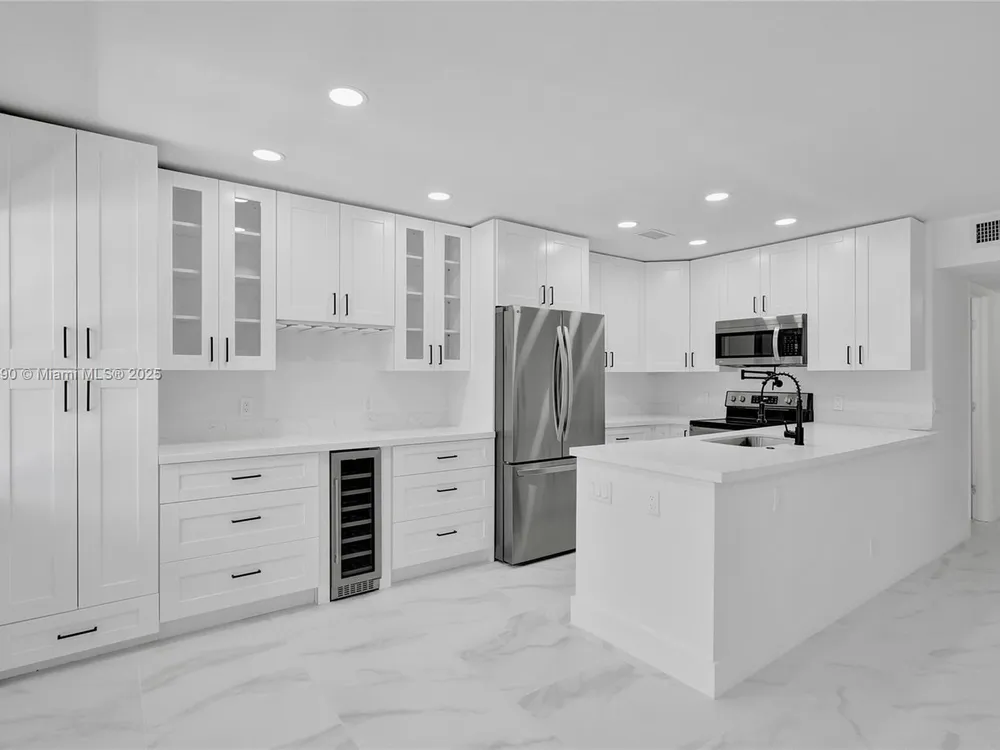 Step into this freshly renovated unit featuring impact windows and doors throughout.The open-concept kitchen is a chef’s dream with ample cabinet space, a pot filler for convenience, and a built-in wine cooler for wine enthusiasts. Enjoy porcelain tile flooring, modern zebra blinds, and beautifully upgraded bathrooms. The community offers courtesy buses to nearby shopping and beaches, plus an array of amenities including multiple pools, theater, exercise room, pickleball courts, and more. This stunning unit truly has it all, don’t miss the chance to make it yours!