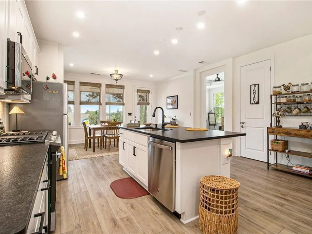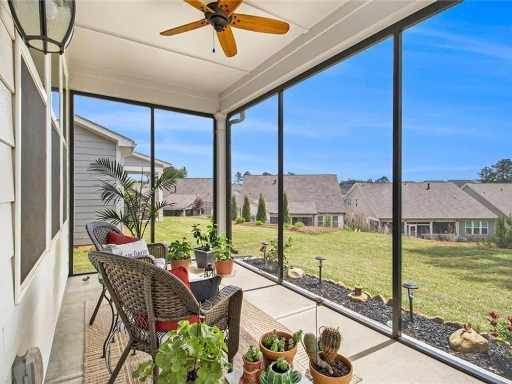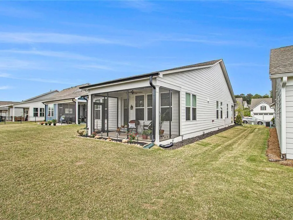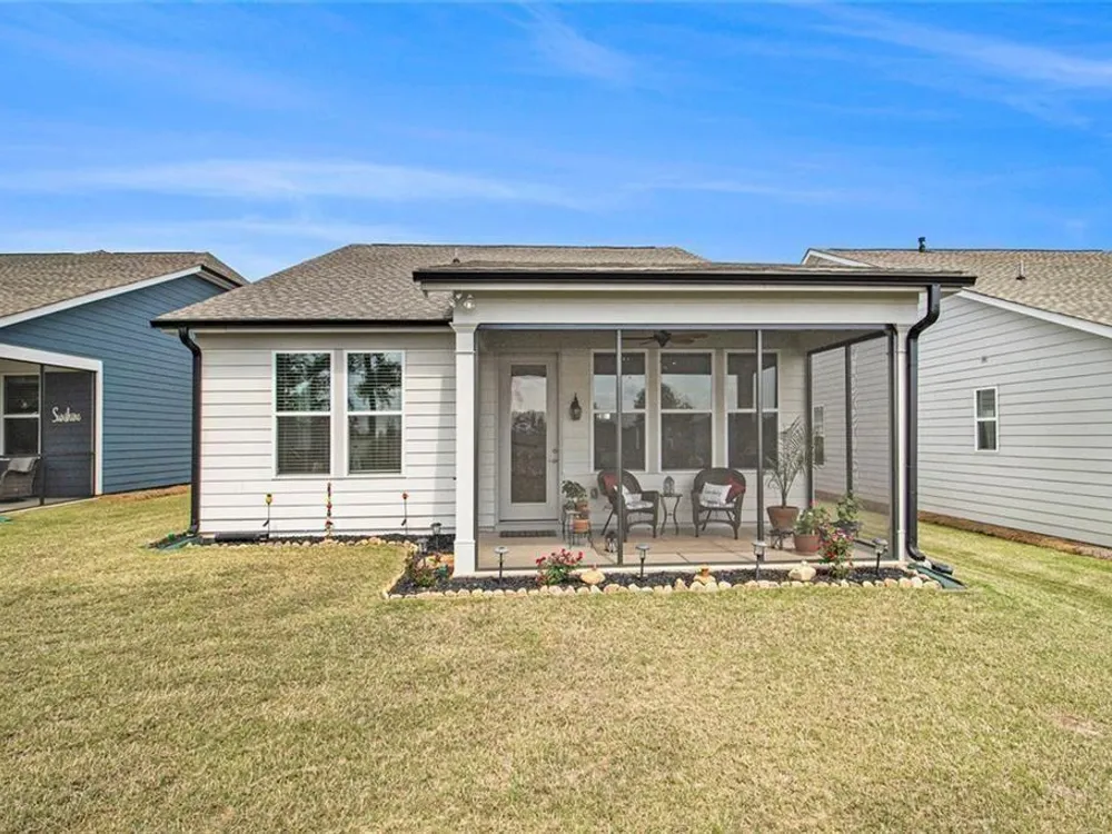 Welcome to downsizing done right. This charming gem proves that smaller can still mean stunning. There is an open-concept flow so the home feels light, airy, and effortlessly livable. Kitchen has updated cabinets with soft close doors, mounted lights and beautiful black pearl leather granite countertops. Enjoy meals or entertaining in the sunlit rear extension off the kitchen, this can be used as a dining area or sitting area. The owner's suite is spacious yet cozy having its own bath with double sink vanity, large walk-in shower and spacious walk-in closet. There is also a second spacious bedroom with generous closet space. Unwind on the quiet screened porch with morning coffee or evening drinks, plenty of pines have been planted for full future privacy. And don't forget the extended garage, giving plenty of room for car, golf cart, shelving for storage, drop zone, design for your needs. Beyond your doorstep enjoy the large array of resort style amenities to keep you as active as you like. There is a fulltime lifestyle director setting up activities throughout the year, 40 pickleball courts, walking trails, garden area, dog park, outdoor pool, lakes and tennis courts to come. There is an elaborate clubhouse with state of the art gym equipment, pool tables, indoor swimming pool, hot tub, common area, full kitchen and meeting rooms. And clubs galore: pottery, cooking, sewing, cards, games, art, wine/martini, book club, bible studies and too many more to list. So make sure to visit the amenities when viewing this beautiful home and make this yours.
