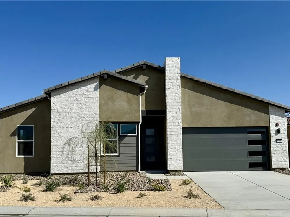 Located in the Prestigious Escena Golf Community in the Palm Springs area. All of our homes include a custom Pool and Spa and many custom designer features. This home, the lovely Decker floor plan boasts an open floorplan, with great room and luxurious chefs kitchen. Quartz kitchen counters including a large kitchen island perfect for entertaining. Enjoy a cup of coffee in the spacious sun room. Amazing GE Monogram appliances including the Built in Refrigerator. 3 large bedrooms including the primary bedroom with gorgeous ensuite bath, shower and soaking tub. Indoor laundry room with cabinets and sink. Great room has double sliding doors that leads to your expansive covered patio where you can enjoy the fabulous views of the Palm Springs mountains.