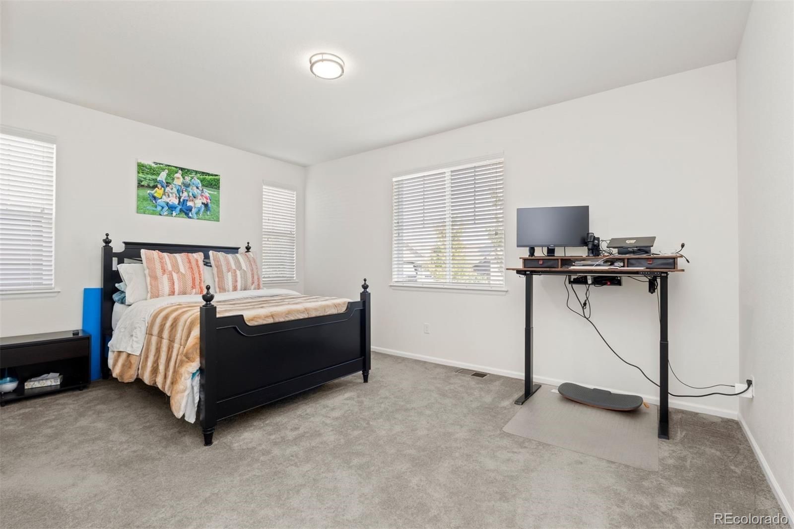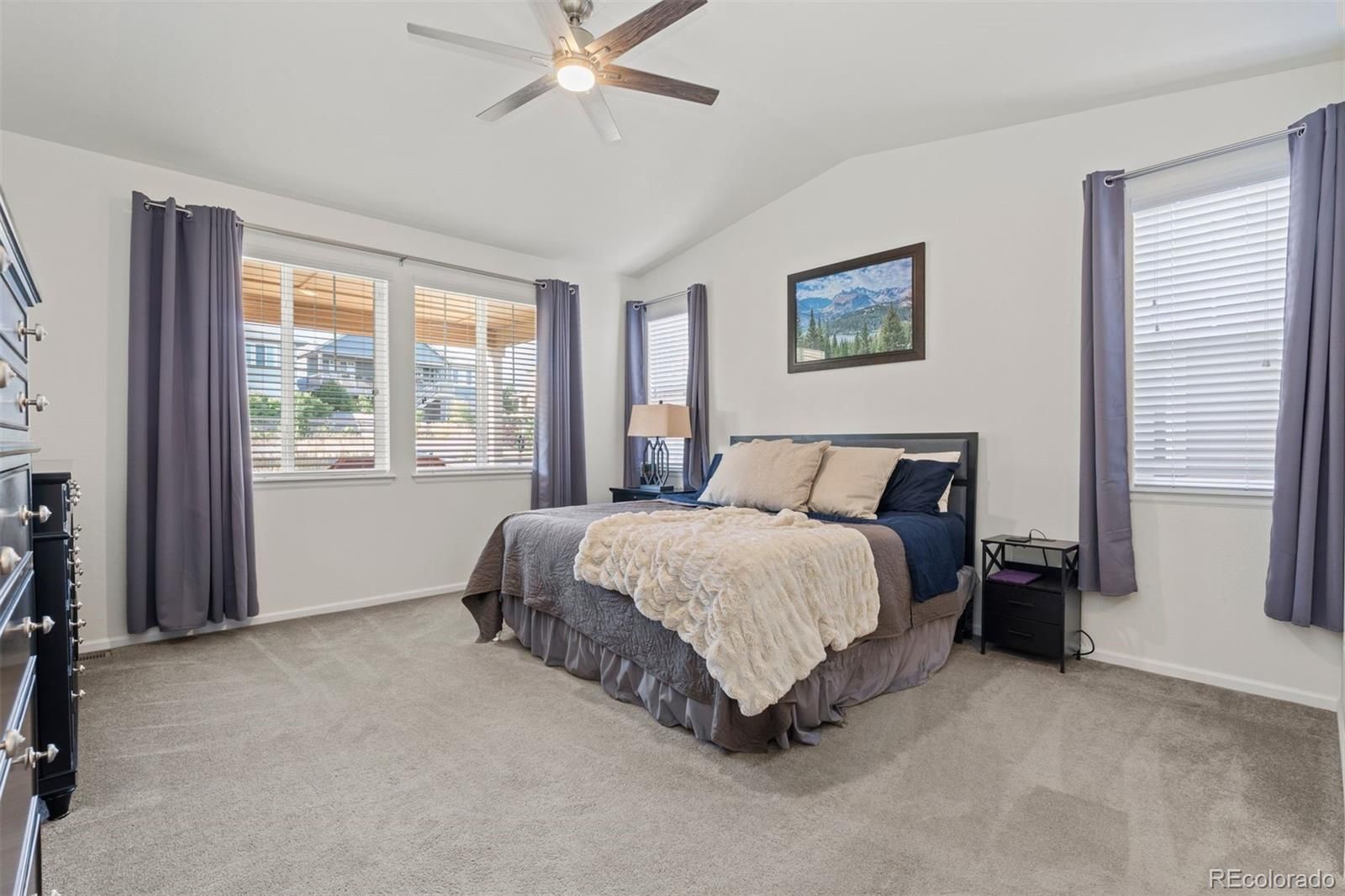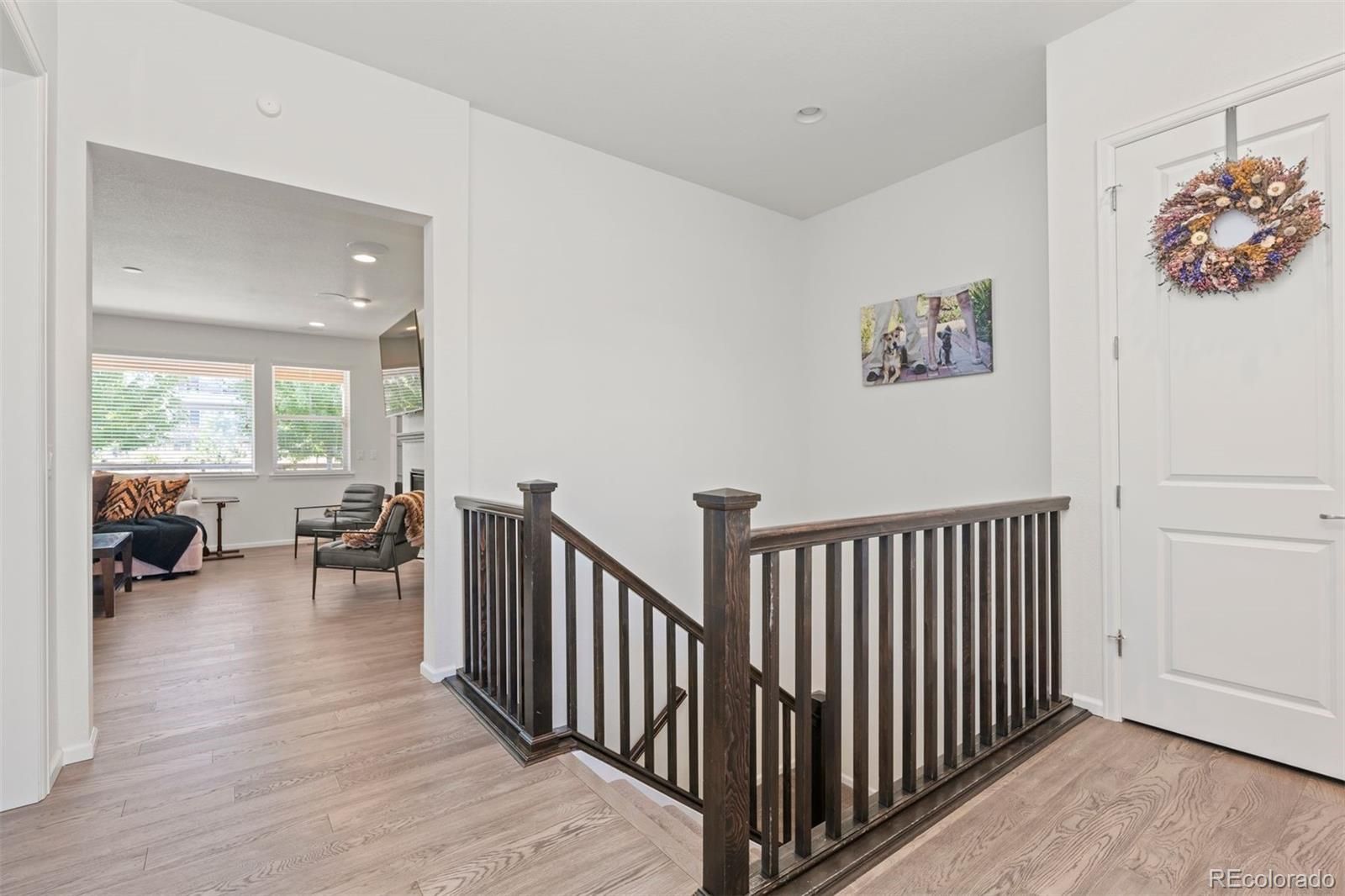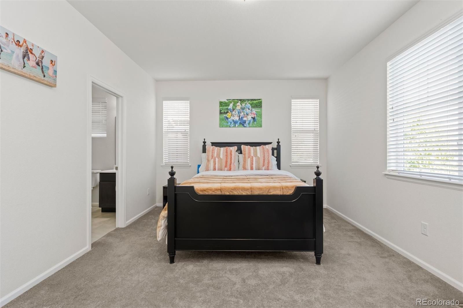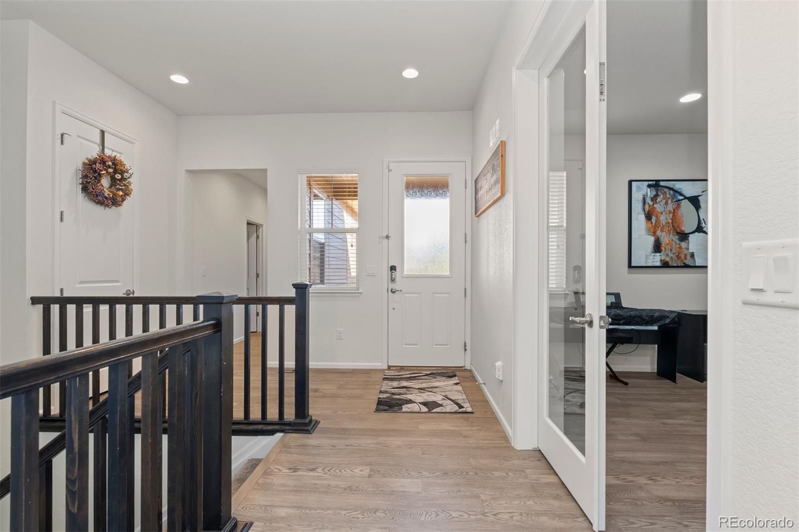 Prime Location! Original Owners built in 2019! Welcome to a home that feels warm and inviting the moment you arrive. The charming front entry and excellent curb appeal set the tone, while the open space surrounding the property and the walking path behind it provide a wonderful lot near the end of the cul-de-sac. Inside, you’ll find a bright, spacious ranch layout designed for today’s lifestyle. The expansive kitchen features abundant cabinetry, generous quartz countertops, a large island, and stainless steel appliances, plus an oversized pantry. The floor plan flows seamlessly into the dining and living rooms—perfect for entertaining and staying connected—with surround sound and a cozy gas fireplace. A sliding door leads to the oversized covered patio, where you can enjoy the beautiful yard and custom-built firepit. The primary suite is a true retreat with vaulted ceilings, a walk-in closet, and a spa-inspired five-piece bath, including a large walk-in shower and soaking tub. A second bedroom offers its own en suite bath with total privacy, while a dedicated office (or potential third bedroom) is paired with a conveniently located powder bath across the hall. The unfinished basement has the potential to double your square footage and is ready for your vision and finishing touches. Step outside to a beautifully landscaped backyard with multiple spaces for entertaining—don’t forget the firepit—and direct access to open space and trails. This peaceful setting offers both privacy and connection to nature, with Ward Reservoir just minutes away, perfect for evening walks by the water. The HOA includes a clubhouse, pool, parks, and small-lake access. All of this comes with the convenience of nearby parks, schools, shopping, dining, and an easy commute to downtown Denver, making this home the perfect blend of comfort, lifestyle, and location.