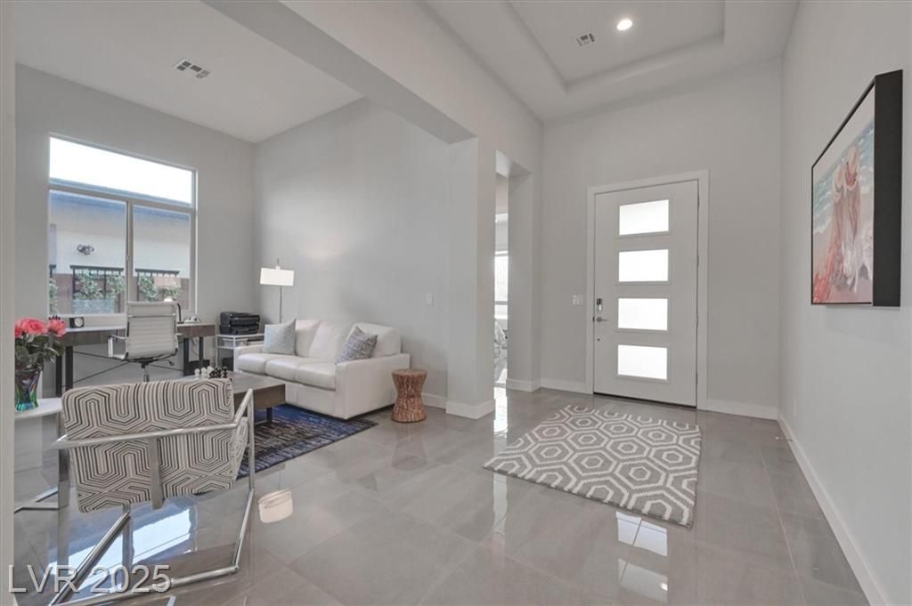 6703 Titanium Crest is a refined, resort-level escape inside Regency by Toll Brothers—Las Vegas’s premier guard-gated 55+ community. East-facing and filled with soft morning light, expansive windows and stackable sliders create effortless indoor-outdoor flow to a private backyard retreat.Inside, soaring ceilings, designer finishes, and a clean open layout deliver modern elegance without excess. Two beautifully appointed bedrooms and two luxe baths offer comfort and calm, while the home’s lightly lived-in, second-home condition shows in every detail.The backyard lives like a private resort, complete with a spa and mountain views—ideal for quiet mornings or easy entertaining. Beyond the gates, Regency offers an elevated lifestyle with pickleball, tennis, pools, a state-of-the-art fitness center, and a vibrant clubhouse built for connection.Refined. Tranquil. Effortlessly social.