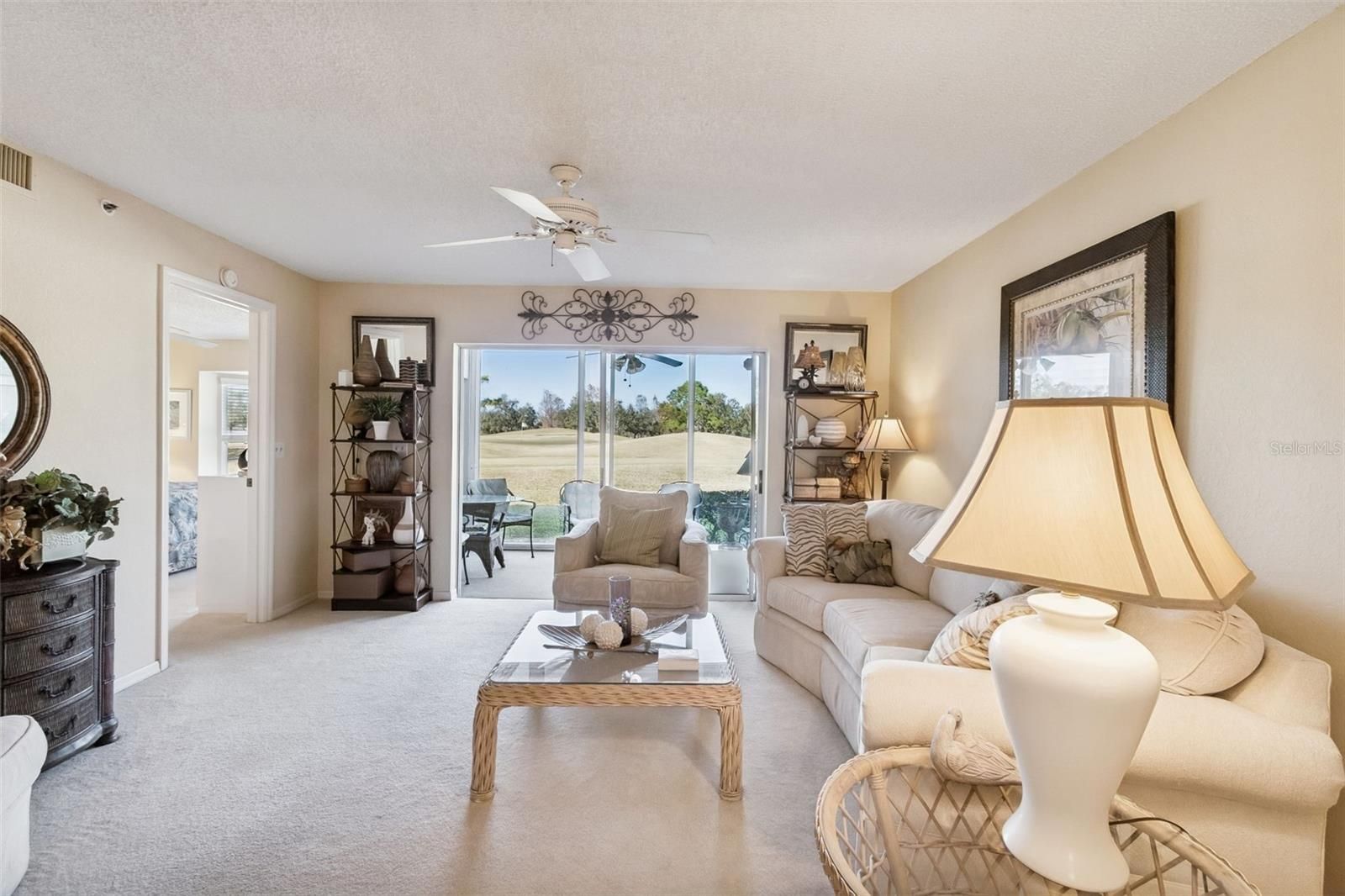 GOLFER’S PARADISE: Turnkey Luxury at Tara Golf & Country Club Experience the pinnacle of Florida living in this meticulously maintained first-floor end unit, situated within the prestigious Tara Golf and Country Club. Offered fully furnished and in pristine "turnkey" condition, this home reflects a true pride of ownership. The versatile floor plan features two spacious bedrooms and two full bathrooms, complemented by a private den that serves perfectly as a third bedroom or home office. At the heart of the home, the eat-in kitchen boasts solid wood cabinetry and granite countertops, opening directly to the front screened porch for breezy morning coffee breaks. The kitchen overlooks an expansive living and dining combination, creating a seamless flow for entertaining that extends out to the rear glass-enclosed lanai with breathtaking views of the manicured golf course grounds. The primary suite is a true retreat, offering "his and hers" walk-in closets that lead to a private en suite bathroom with a walk-in shower. The second bedroom is equally generous in size, positioned just steps from the second full bath and convenient laundry closet. This property is built for peace of mind, featuring a newer roof (2021), fresh exterior paint (2019), and a newly repaved drive (2024). Ideally located in Flood Zone "X," the unit also includes water, sewer, trash, cable TV, and high-speed internet within the association fees. Ownership includes a deeded Class "A" equity golf membership, providing an unparalleled social and active lifestyle. Residents enjoy full access to the championship golf course, practice facilities, and golf cart rentals, as well as the clubhouse restaurant, snack bar, fitness center, and card rooms. The amenities continue with a swimming pool, Jacuzzi, steam room, tennis, and brand-new pickleball courts arriving in 2025. Financial considerations include an annual membership fee of $6,571.44 ($547.62 monthly), a $720 annual food minimum, and a one-time resale capital contribution of $6,571.44 due at closing. Additional costs include the quarterly HOA fee of $1,750.44 and a Tara Master Association annual fee of $1,170.81. This is a rare opportunity to secure a move-in-ready lifestyle in one of the area’s most coveted communities—a true must-see! *All personal items to be removed by owner before closing* *Photos of TGCC provided by TGCC* The co-listing agent is related to the seller. ALL MEASUREMENTS, ASSOCIATION INFORMATION, AND OTHER DETAILS ARE BELIEVED TO BE CORRECT; HOWEVER, ALL INFORMATION NEEDS TO BE CONFIRMED BY THE BUYER AND THEIR AGENT.