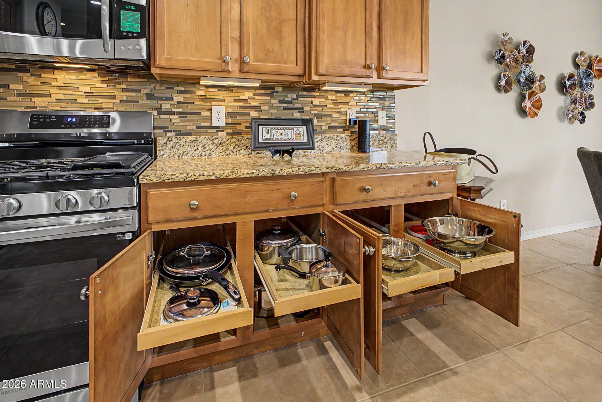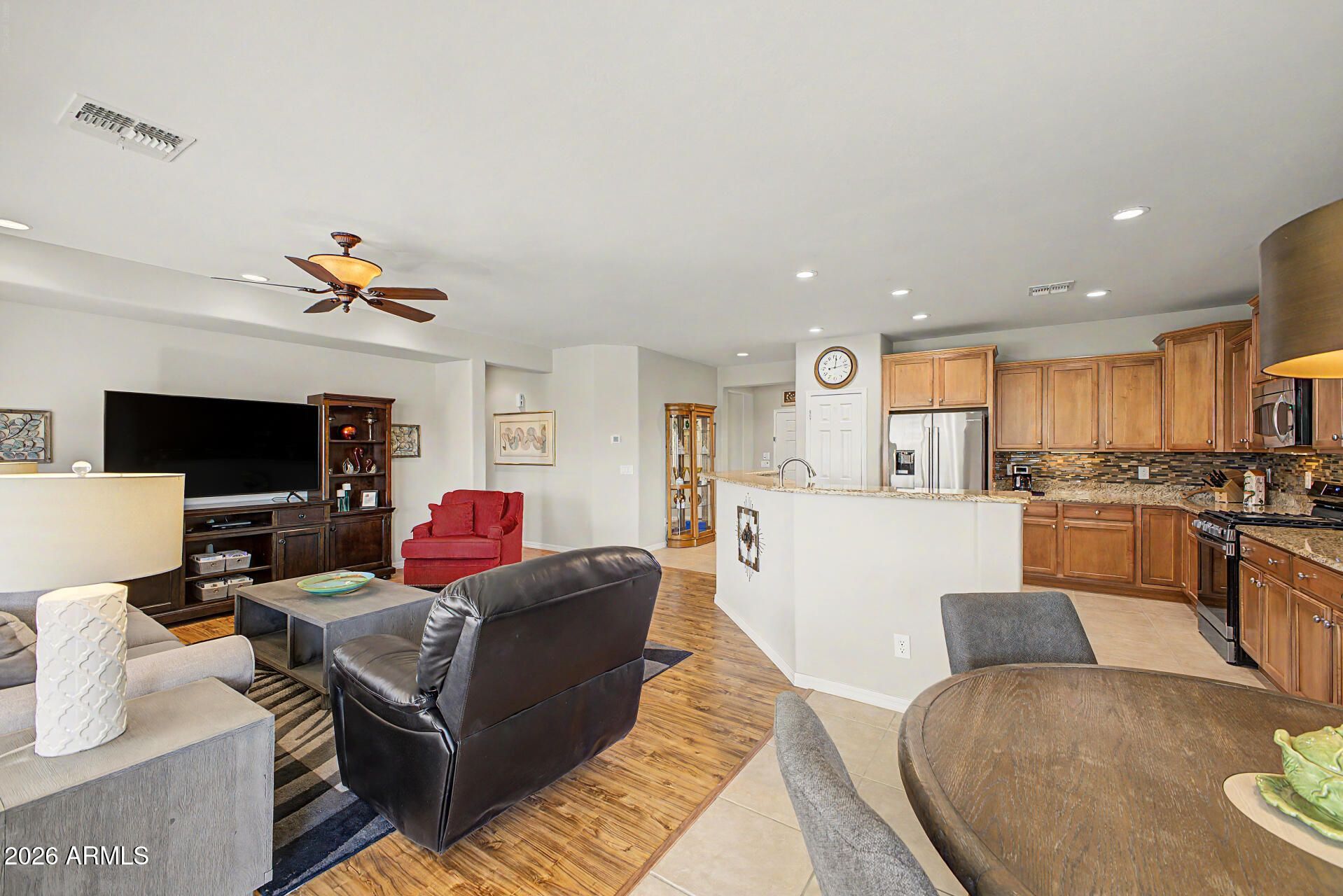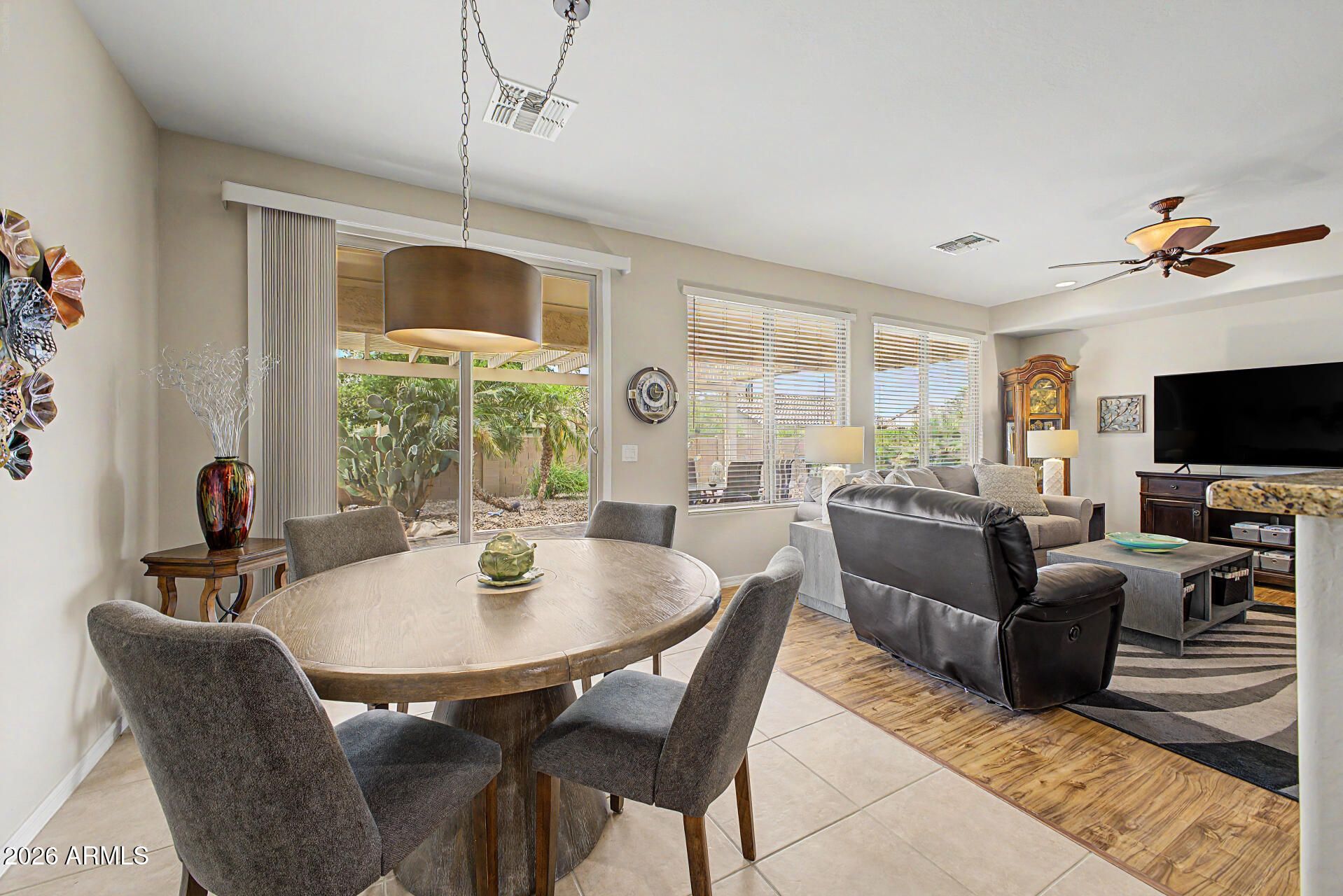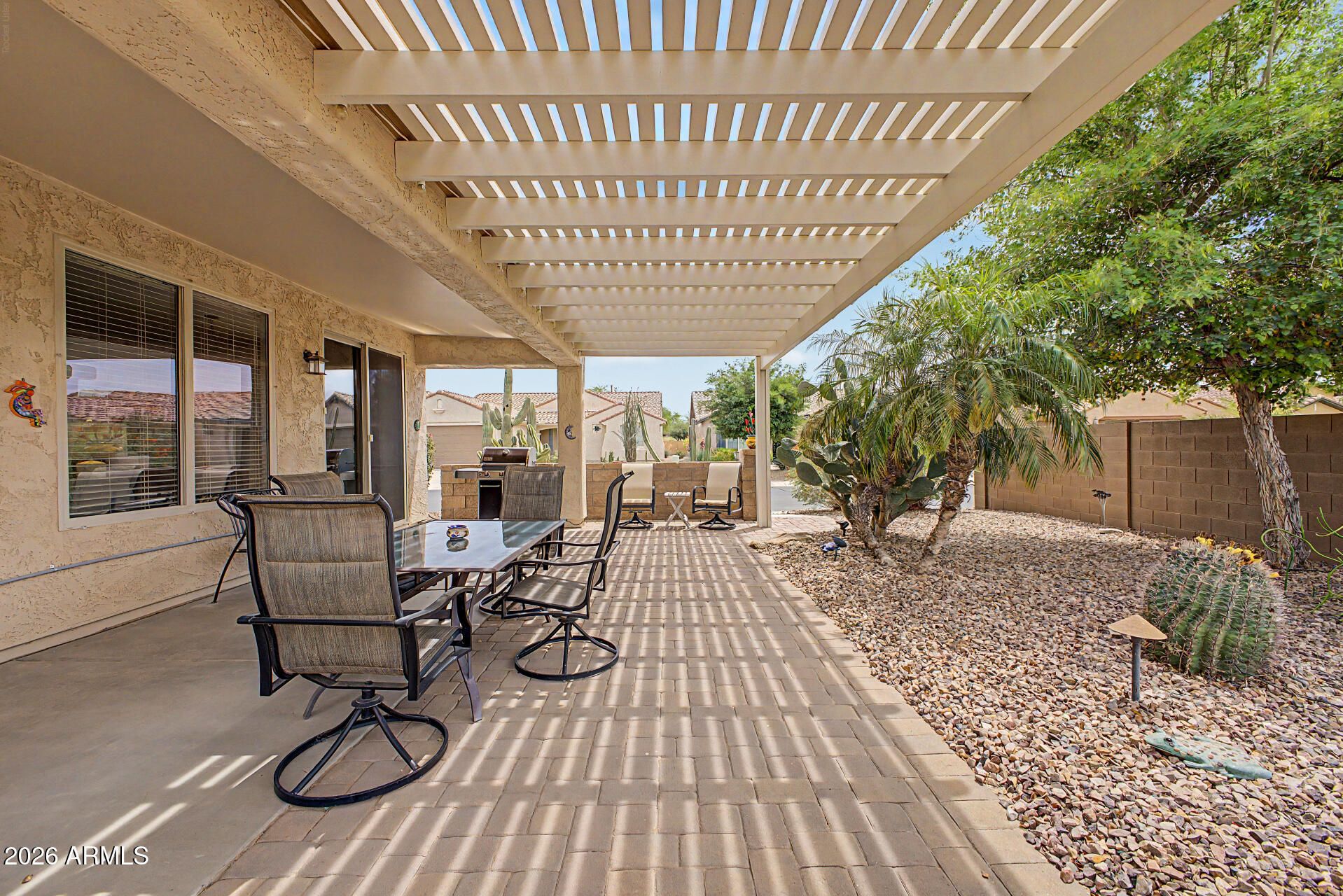 LIVING THE ARIZONA DREAM! This beautiful Providence awaits you, offering comfort, style & move-in-ready convenience. The kitchen is thoughtfully designed w/ tile flooring, granite counters, stylish backsplash & convenient pull-out shelving--perfect for both everyday living & entertaining. The great room showcases durable LVP flooring creating a bright & inviting space. The primary suite features a charming bay window, adding both space & natural light. The en-suite bath includes a double vanity w/ a dedicated makeup vanity, glass-enclosed shower & spacious walk-in closet. The 2-1/2 car garage is a standout w/ epoxy flooring & built-in cabinetry, offering excellent storage & functionality. Situated on a corner lot w/ covered patio, pergola & extended pavers. Solar for savings!! Furnished! Sun City Anthem at Merrill Ranch offers a 48,000 SF recreation center w/ craft rooms for quilting, pottery, glass works, jewelry & crafts, spacious ballroom w/ stage for dancing, theatrical productions, concerts & more. PLUS full gym, work out rooms, indoor lap pool & spa, walking track, cafe area, card rooms, poker tables, pool table, ping pong table, business center, class room for interesting seminars! Troon Poston Butte Golf Course is one of the nicest in the area. Sun City offers Pickleball, Tennis, Bocce Ball, Horseshoes, Shuffleboard, clubs for all activities.......LIVE WHERE THE SURROUNDINGS DELIGHT, INSPIRE & CHALLENGE YOU!