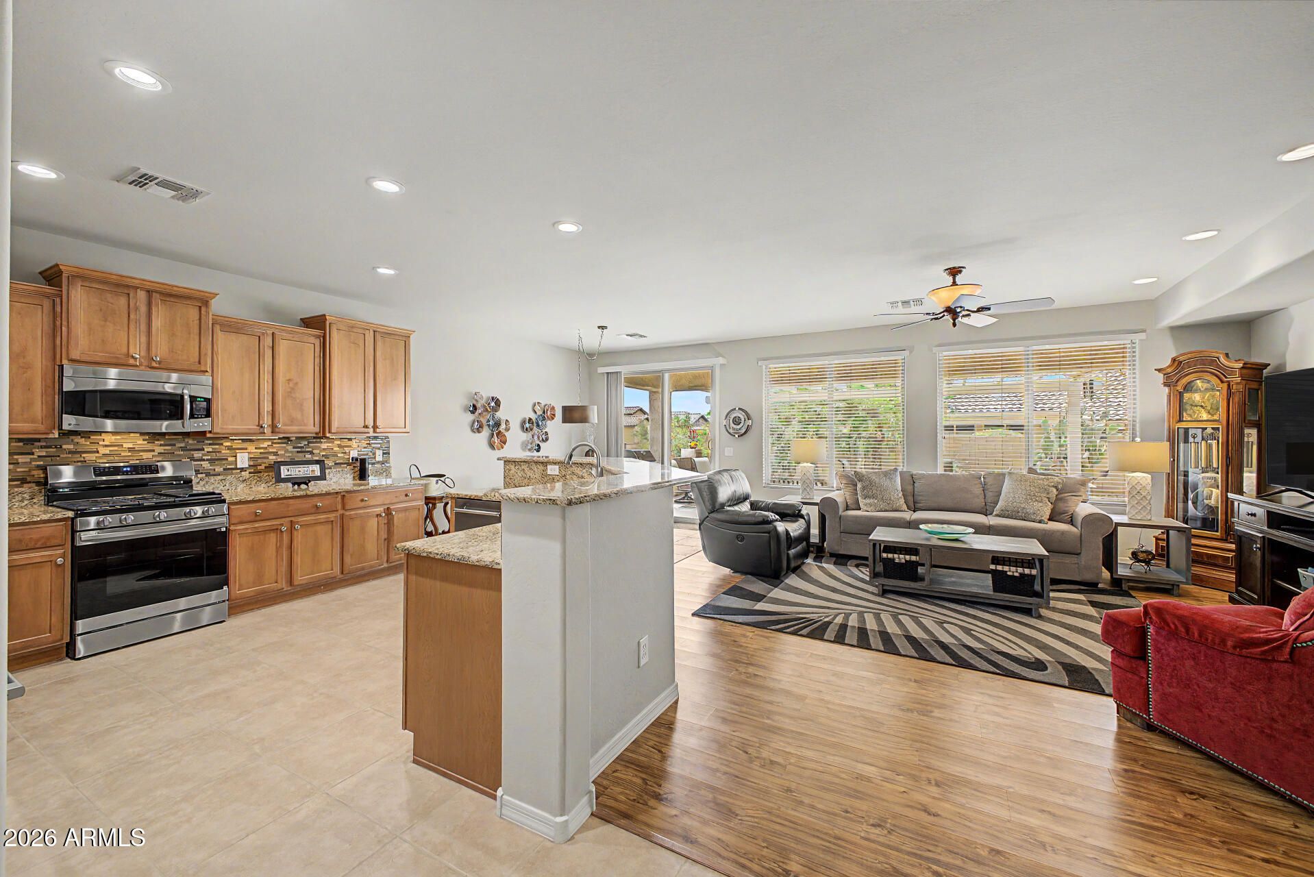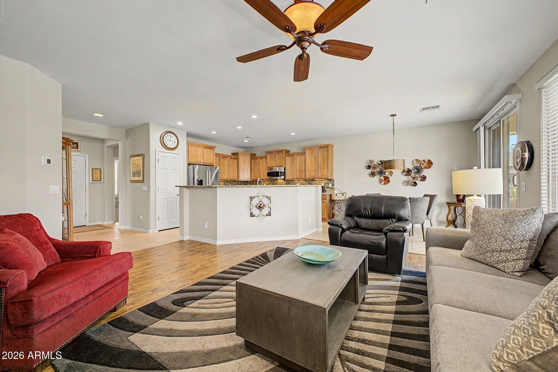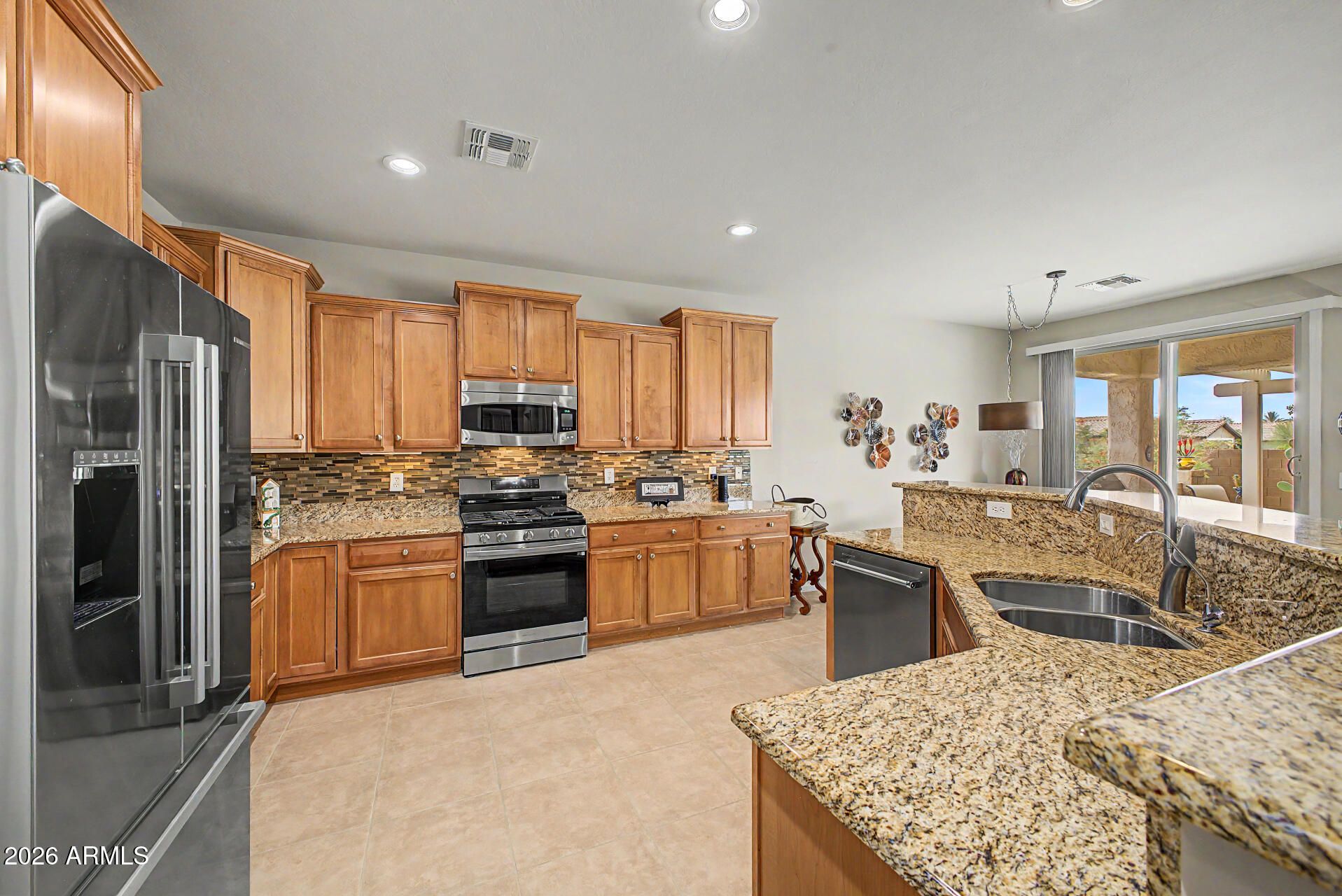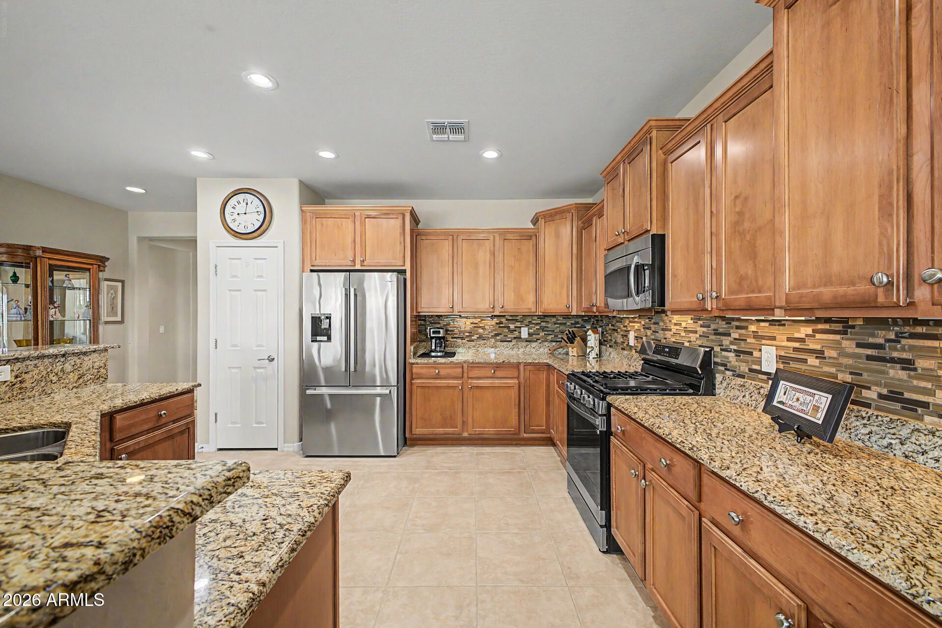 LIVING THE ARIZONA DREAM! This beautiful Providence awaits you, offering comfort, style & move-in-ready convenience. The kitchen is thoughtfully designed w/ tile flooring, granite counters, stylish backsplash & convenient pull-out shelving--perfect for both everyday living & entertaining. The great room showcases durable LVP flooring creating a bright & inviting space. The primary suite features a charming bay window, adding both space & natural light. The en-suite bath includes a double vanity w/ a dedicated makeup vanity, glass-enclosed shower & spacious walk-in closet. The 2-1/2 car garage is a standout w/ epoxy flooring & built-in cabinetry, offering excellent storage & functionality. Situated on a corner lot w/ covered patio, pergola & extended pavers. Solar for savings!! Furnished! Sun City Anthem at Merrill Ranch offers a 48,000 SF recreation center w/ craft rooms for quilting, pottery, glass works, jewelry & crafts, spacious ballroom w/ stage for dancing, theatrical productions, concerts & more. PLUS full gym, work out rooms, indoor lap pool & spa, walking track, cafe area, card rooms, poker tables, pool table, ping pong table, business center, class room for interesting seminars! Troon Poston Butte Golf Course is one of the nicest in the area. Sun City offers Pickleball, Tennis, Bocce Ball, Horseshoes, Shuffleboard, clubs for all activities.......LIVE WHERE THE SURROUNDINGS DELIGHT, INSPIRE & CHALLENGE YOU!