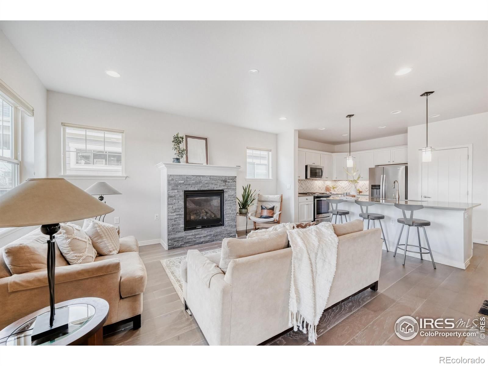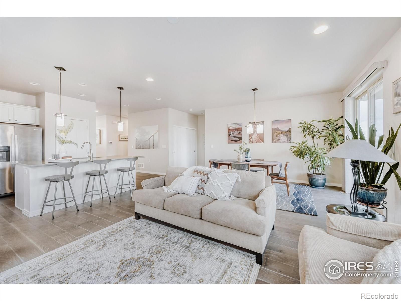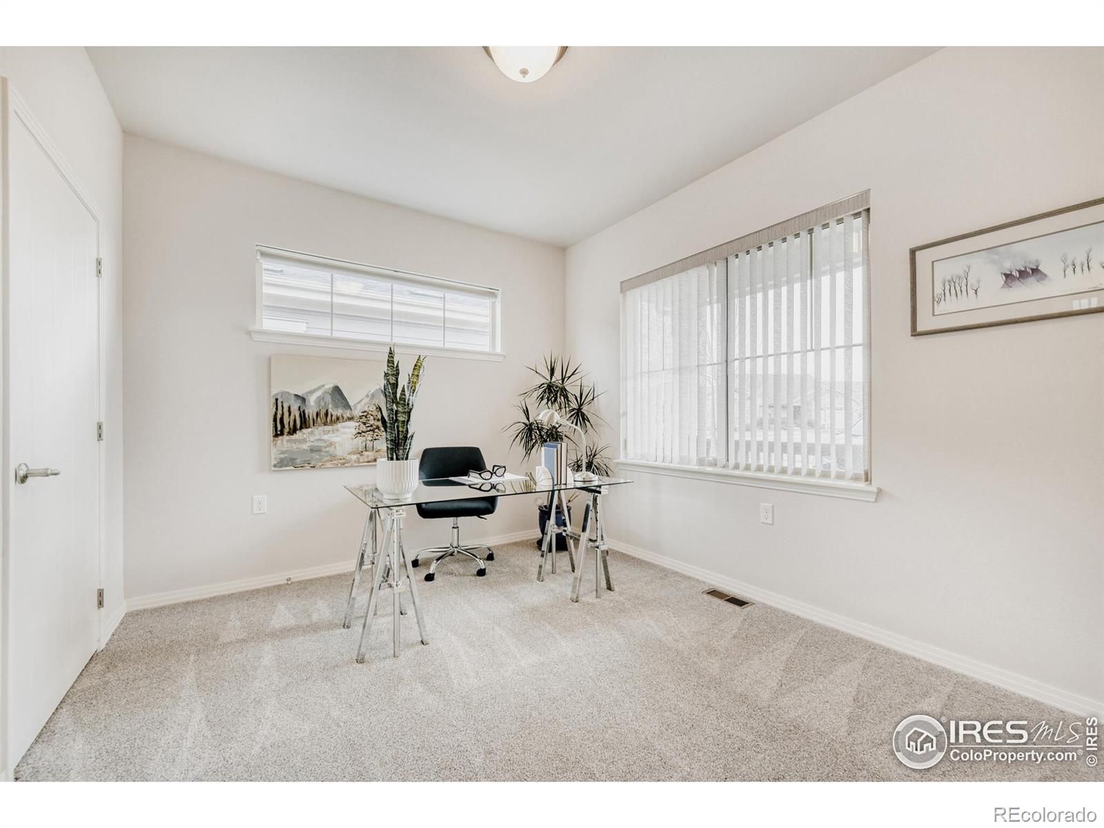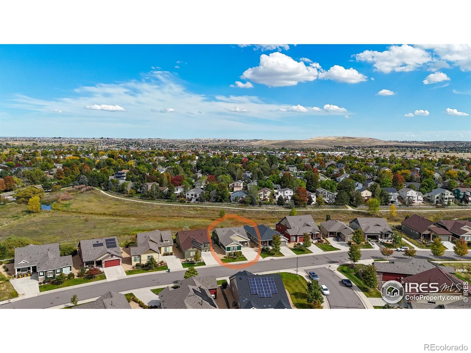 Single-level living in an as-new home, offering a contemporary open-floor plan, complete care of EVERYTHING outside the home, overlooking a magnificent riparian open-space location. Here is a place with a rare combination of qualities. Backing to the tranquility of a riparian open space environment, it is main floor living with wide hallways and door openings and just the right amount of space, set within a relaxed community of neighbors where you never have to care for the landscaping, exterior of the home, or ever lift a snow shovel. That leaves you exploring a trail system and nearby lake park with easy access to shopping and restaurants. When you travel, just lock the door and arrive at DIA in short time, or see the attractions of Denver and Boulder. Inside is a very lightly lived-in home with new carpeting and an island kitchen with stainless-steel appliances, quartz surfaces, and 42" white cabinets. The prime bedroom suite with 4-piece luxe bath looks out on the picturesque open space. A study with a closet offers the opportunity as a 3rd bedroom when necessary. The lower-cost HOA offers true care-free living. Everything outside the home is taken care of. The exterior of the home is freshly repainted with Sherwin-Williams 10-yr, top-quality paint and certified by them to be property applied. Your landscaping, including irrigation, mowing, and tree and shrub care is done, and snow removal includes the driveway. It's a residence like few others. Come and feel the enchantment of life here.