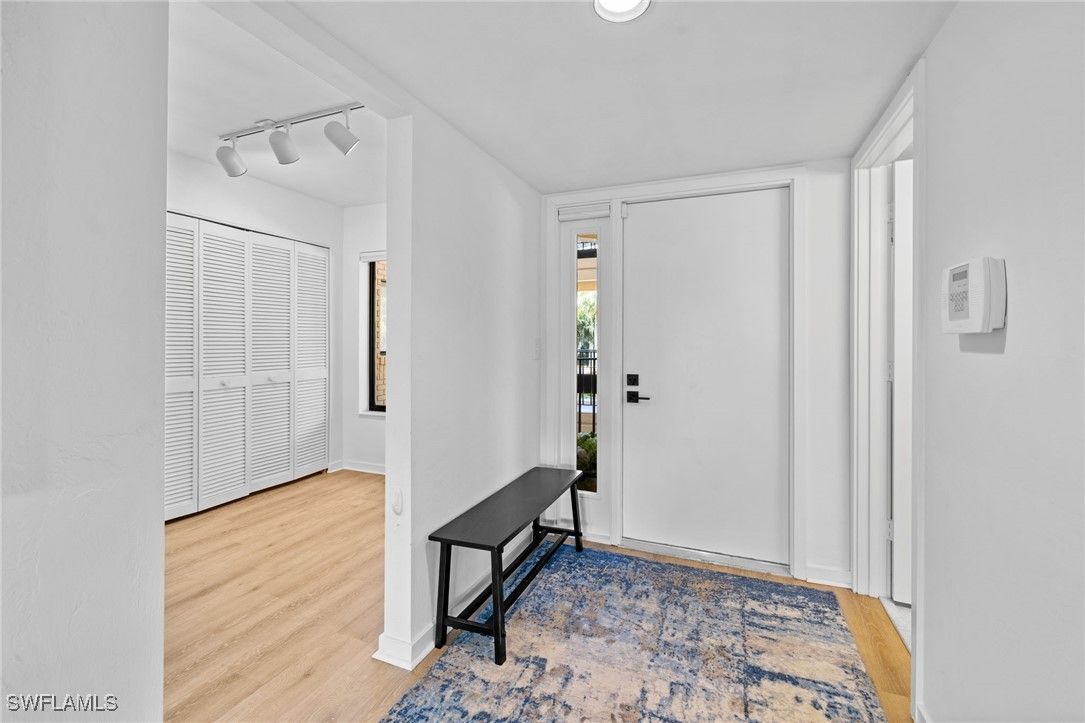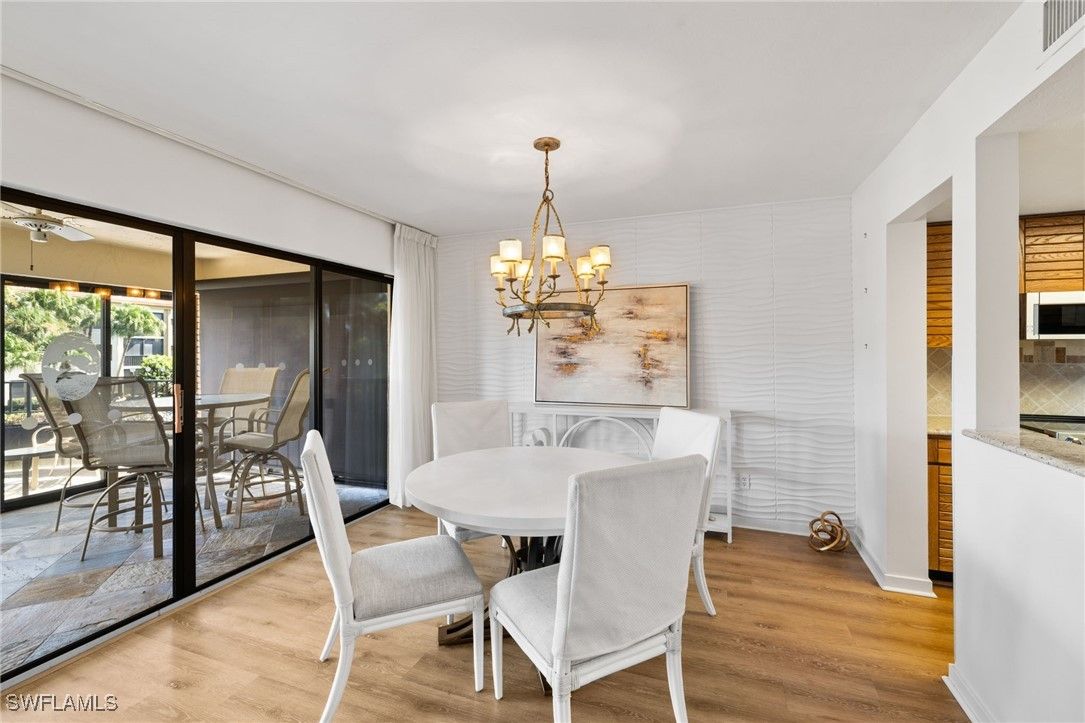 Experience relaxed elegance in this beautifully updated 2-bedroom, 2-bath residence nestled in the coveted Interlachen enclave of Pelican Bay. Filled with natural light, this home captures the picturesque lake views from the screened lanai, spacious open-air porch, and tranquil primary suite. Step inside to find new luxury vinyl plank flooring, a newer AC and water heater, and freshly painted interiors that create a bright, coastal feel throughout. The open-concept floor plan offers both style and functionality, perfect for everyday living or entertaining. The spacious primary suite features abundant closet storage, direct lake views, and a luxurious ensuite bath with dual vanities, a soaking tub, and a separate glass-enclosed shower—your own private retreat. The oversized guest bedroom also includes generous closet space and easy access to a well-appointed guest bath featuring a tub/shower combination. Enjoy multiple dining options with a formal dining room and a cozy breakfast nook, providing ample space for gatherings both large and small. Interlachen’s Frank Lloyd Wright–inspired architecture is set within a lush tropical landscape highlighted by sparkling lakes, fountains, and a tranquil community pool surrounded by water features. Ideally located just steps from the Pelican Bay tram, residents enjoy quick access to the private Beach Clubs, beachfront dining, miles of pristine shoreline, and scenic mangrove boardwalks. Additional amenities include the Commons tennis center and access to Pelican Bay’s renowned lifestyle offerings. The private Club Pelican Bay, featuring 27 holes of championship golf, a full-service spa and fitness center, and fine dining, is just a short walk or drive away. Pelican Bay is Naples’ premier beachfront community, offering an unparalleled coastal lifestyle found nowhere else in Florida.