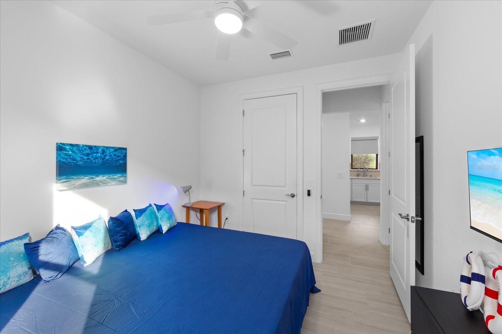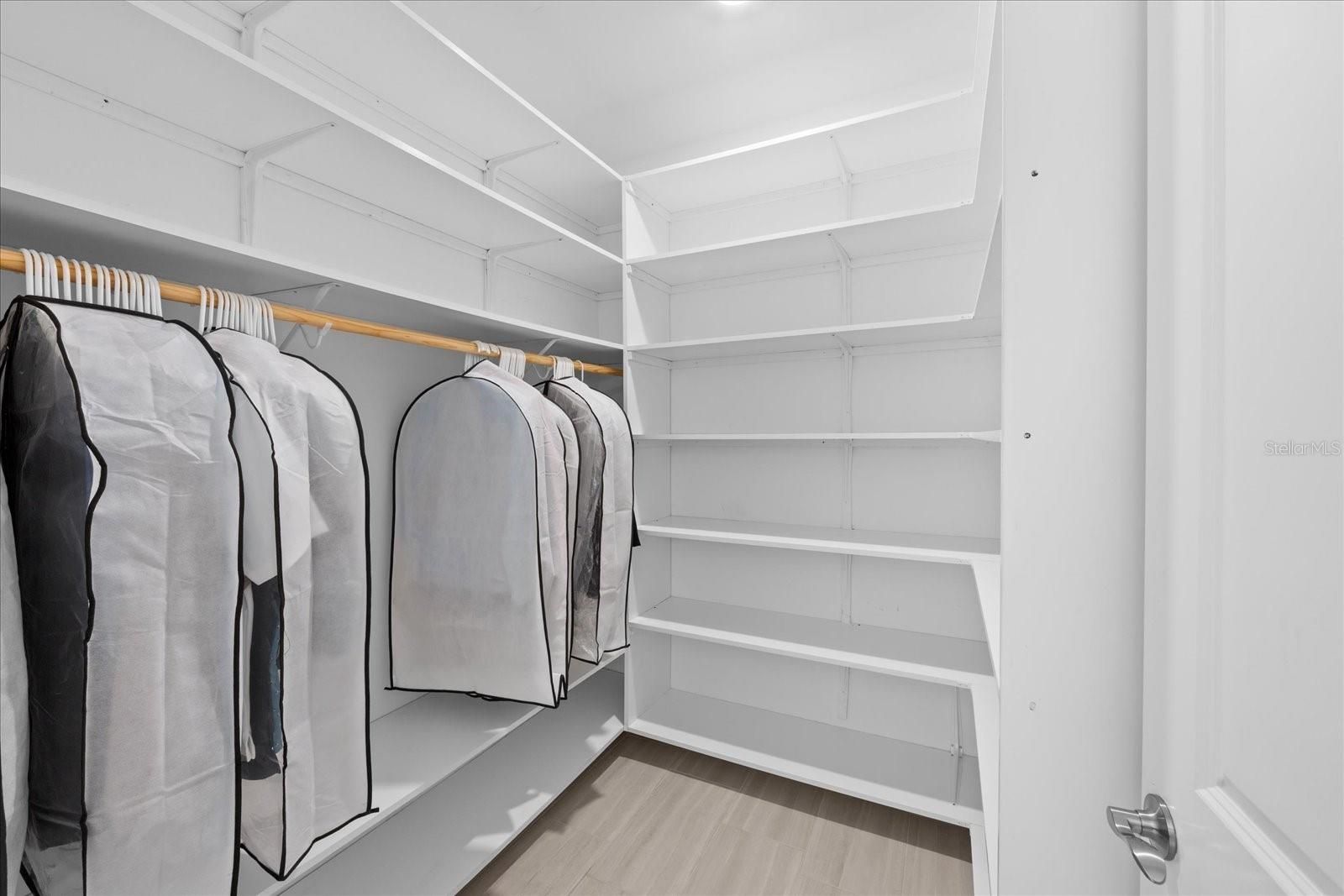 - Ceiling Fan(s), Eat-in Kitchen, In-Wall Pest Control, Living/Dining Room, Open Floorplan, Main Level Primary, Smart Home, Solid-Wood Cabinets, Split Bedrooms, Stone Counters, Thermostat, Walk-In Closet(s)