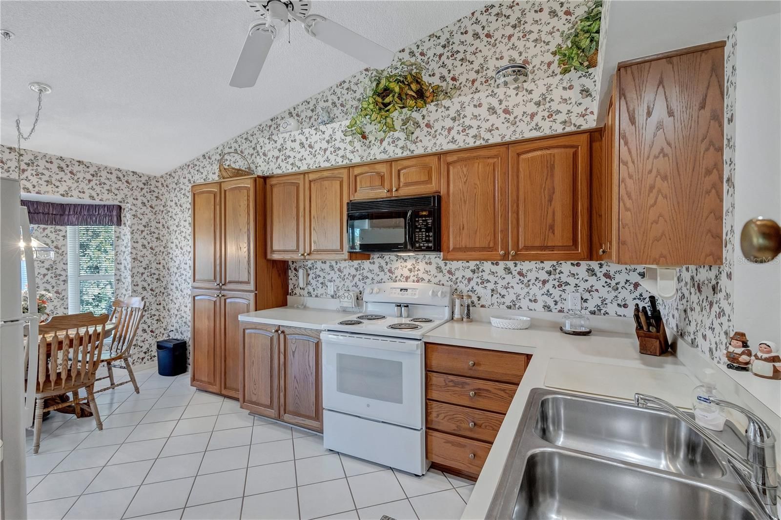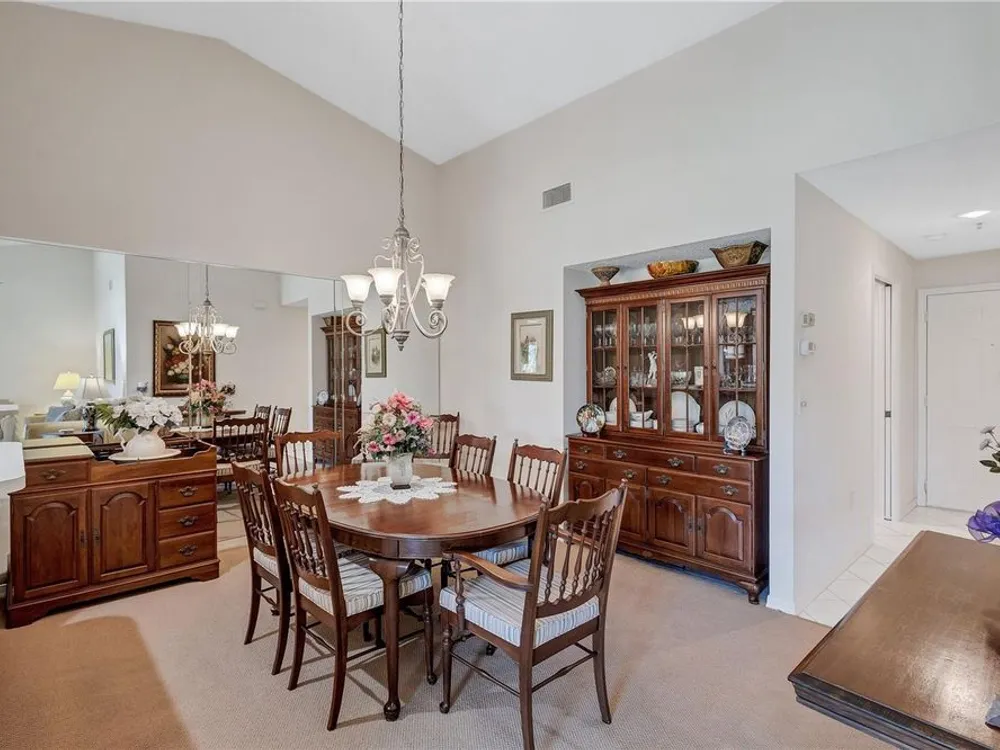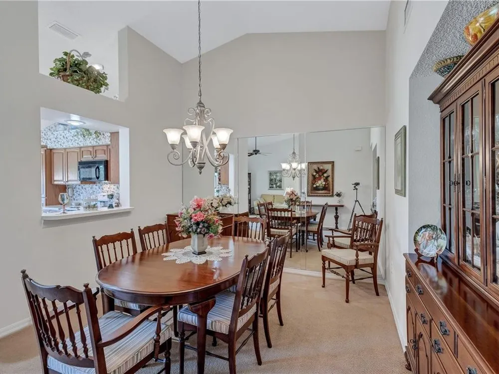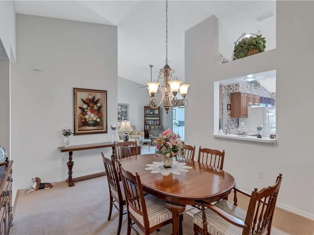 - Cathedral Ceiling(s), Ceiling Fan(s), Eat-in Kitchen, High Ceilings, L-Shaped Dining Room, Solid Surface Counters, Solid-Wood Cabinets, Thermostat, Vaulted Ceiling(s)