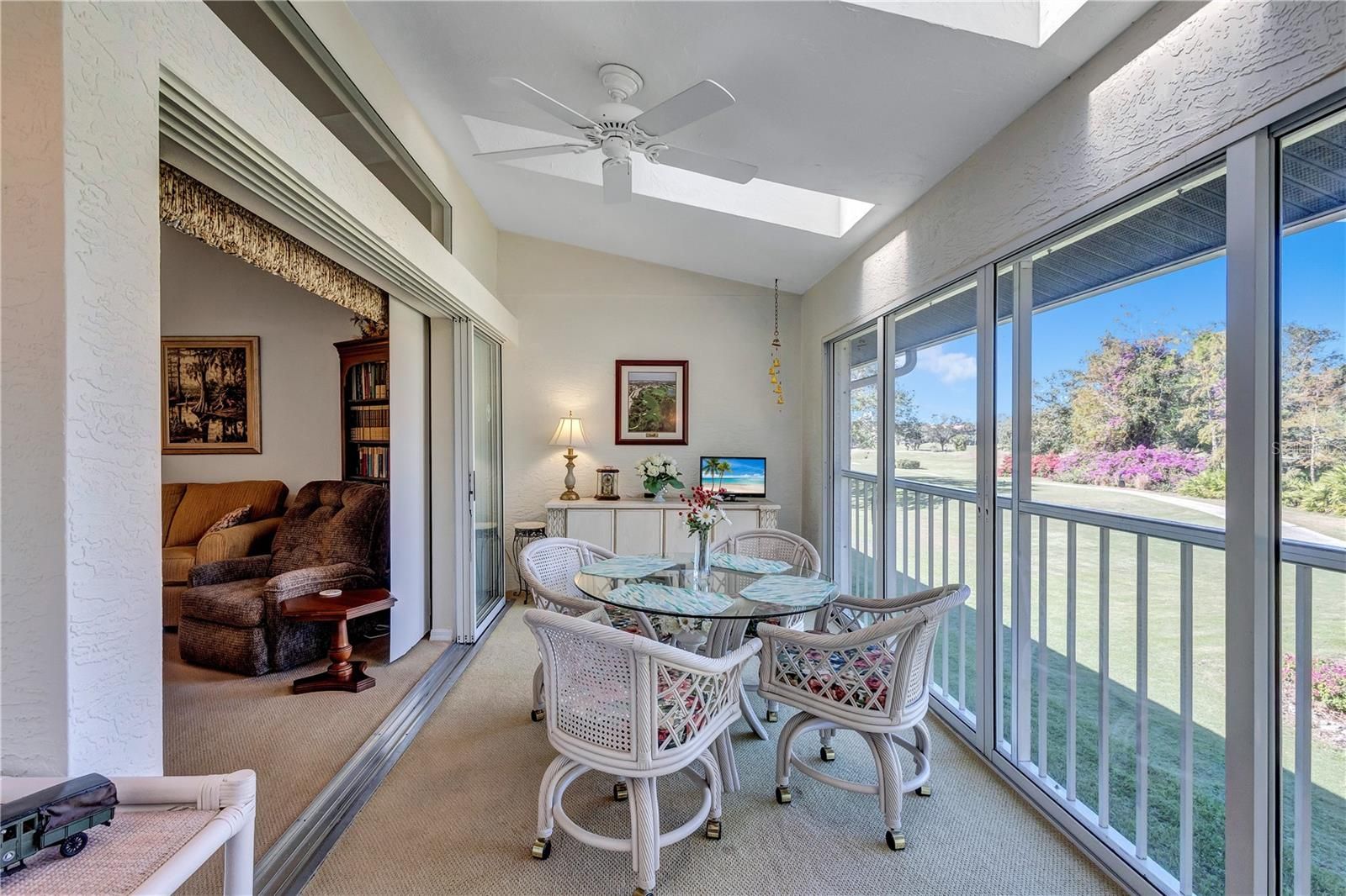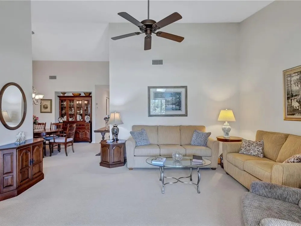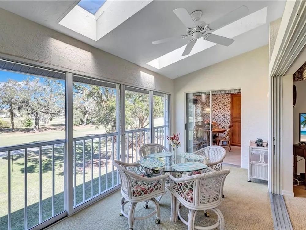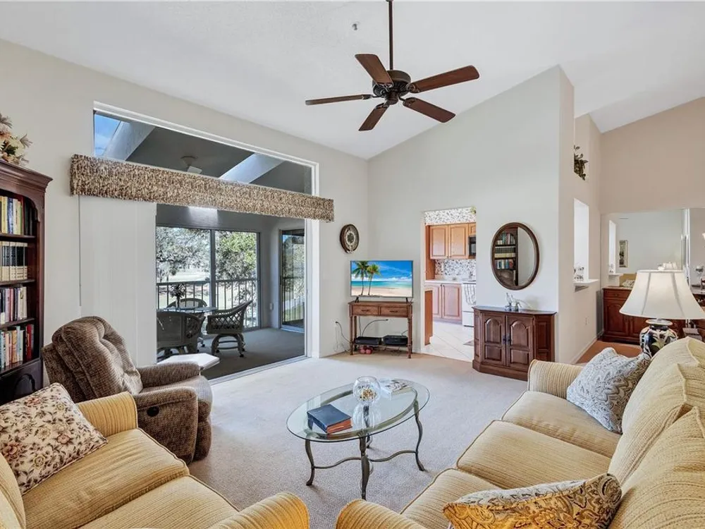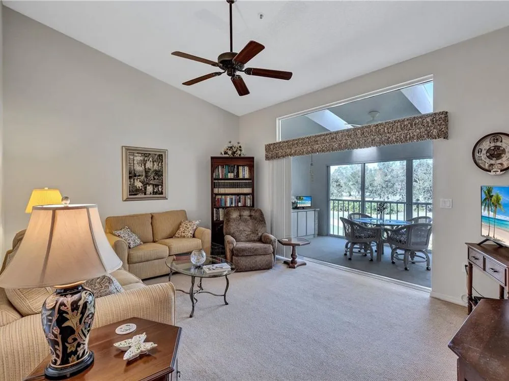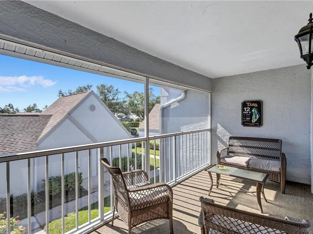 Live the Florida Country Club Lifestyle for Less! Welcome to 6713 Stone River Rd 205, a meticulously maintained 2-bed, 2-bath, 1-car garage condo in The Verandas at Tara. This is your chance to own a piece of paradise with an unparalleled value proposition: a deeded golf membership to Tara Golf & Country Club, saving you thousands annually on championship golf and exclusive amenities! Step inside this spacious and quiet 2nd-floor unit, offered partially furnished for your convenience. Enjoy breathtaking, million-dollar views of the fairway tees from your eat-in kitchen or the expansive, glass/screen-enclosed lanai. This versatile space can seamlessly expand your living area or become your private sunroom, offering serene treed golf course vistas. Vaulted ceilings and a spacious kitchen with solid wood cabinets create an open feel. An additional screen-enclosed front lanai provides another peaceful spot to savor the morning sun. Beyond your doorstep, discover resort-style living. You're just steps away from the large heated community pool! The Tara Golf & Country Club boasts an 18-hole championship golf course (recently renovated with $1.5M!), a state-of-the-art exercise facility, hot tub, sauna, heated lap pool with a concession stand, Har-Tru tennis courts, bocce ball, and pickleball coming in 2025! The magnificent Tara Clubhouse offers fine dining, a grill room, a driving range, a putting green, a pro shop, and a very active social calendar featuring regular entertainment. Recent updates include AC (2019), Water Heater (2019), and Roof (2018). The Total Area is 1,385 SqFt. Tara Reserves and The Verandas at Tara are financially sound associations. Enjoy million-dollar picturesque views from your screened and glass-enclosed lanai (the first-floor units don't give you this view) and maintenance-free living in a secure, beautifully manicured community. With low HOA fees and no state income tax, this is the smart play for snowbirds & sunbirds, investors, or year-round golfers. Priced below market and ready to move in — see it today before the snowbirds and sunbirds return. Highlights: • DEEDED GOLF MEMBERSHIP is a True Value! • Washer/dryer in unit! • Heated community pool, Har-Tru Tennis, Pickleball, Gourmet Clubhouse Dining, Bocce, Driving Range, Putting Green, Activities and Entertainment Daily, and much more. • Just 20 minutes to beaches and SRQ Airport • No CDD fees! Motivated seller – bring your best! Golf where you live. Live where you golf! ... and you're one of the closest condos to the large heated community pool! AC 2019. Water Heater 2019. Roof 2018. Tara Reserves are financially sound. This condo is the best value in the Bradenton/Sarasota area. HOA provides water, sewer, and internet/Cable. You can buy a home anywhere, but you can't buy a lifestyle. Come to Tara and live the Florida Country Club lifestyle at its best.