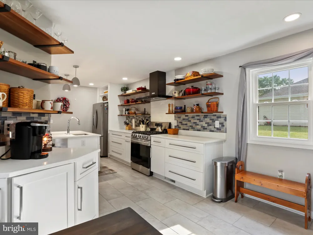 Welcome to beautiful, single-floor living in a stunning home filled with natural light. The remodeled kitchen is a true showstopper, featuring quartz counters, black stainless steel appliances (including a new gas stove), a stylish tile backsplash, and a large island with a breakfast bar. A convenient breakfast nook and an adjacent laundry closet make the space as functional as it is beautiful. The open-concept layout with recessed lighting and wood floors flows from the dining room, which leads to a rear deck, into the sunken living room—a bright and inviting space. Retreat to the primary bedroom, which boasts incredible built-ins in the walk-in closet and an en-suite bath with dual sinks. The second bedroom also has well-designed closet built-ins. Both full bathrooms were recently remodeled. This home is truly move-in ready with a long list of new upgrades, including a new heat pump, new tiled floors in the kitchen, a new water heater, a new front door, and a new washing machine. The attached two-car garage provides excellent storage with pull-down attic access. All this is situated on a 0.48-acre lot with no HOA.