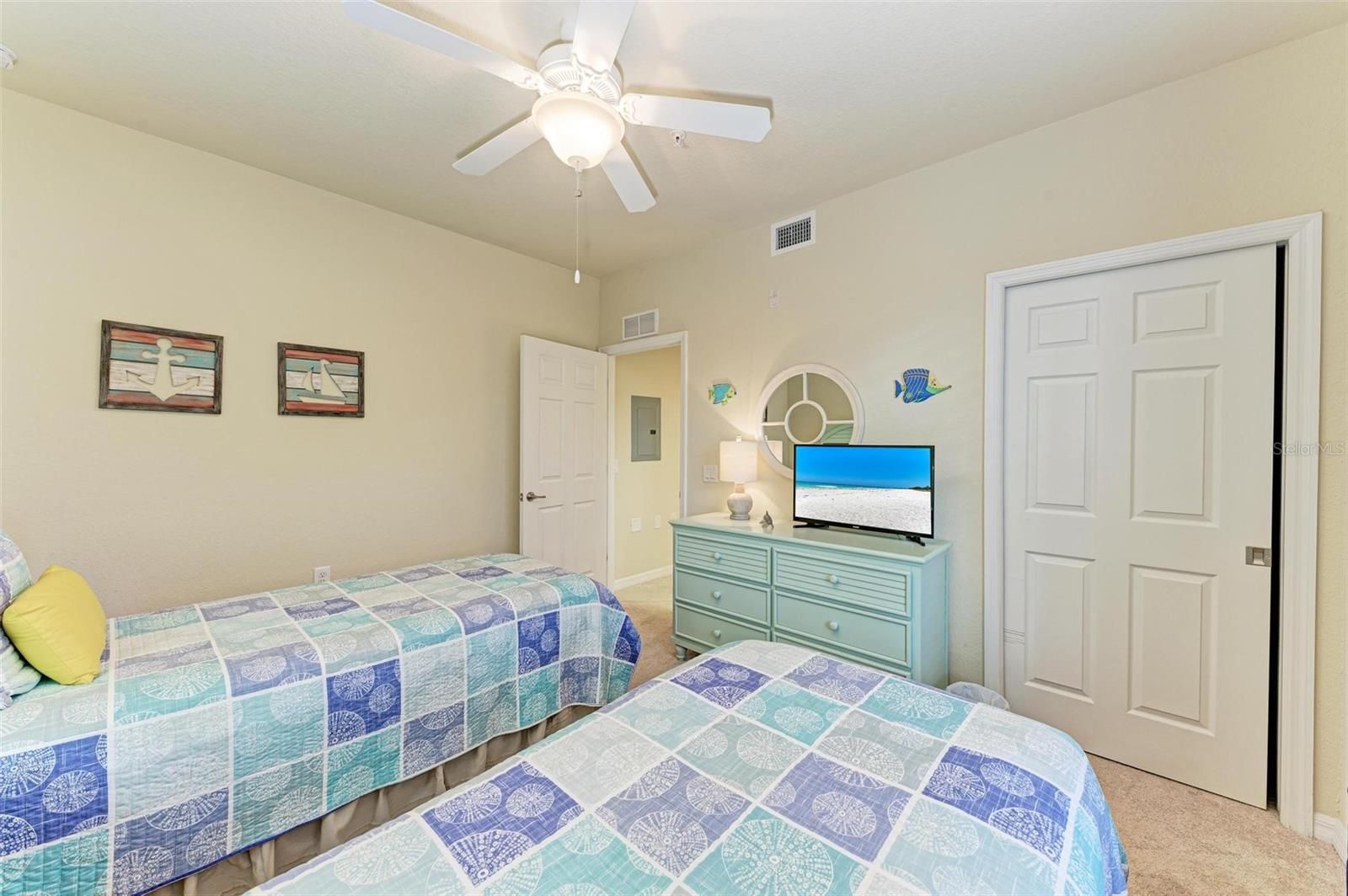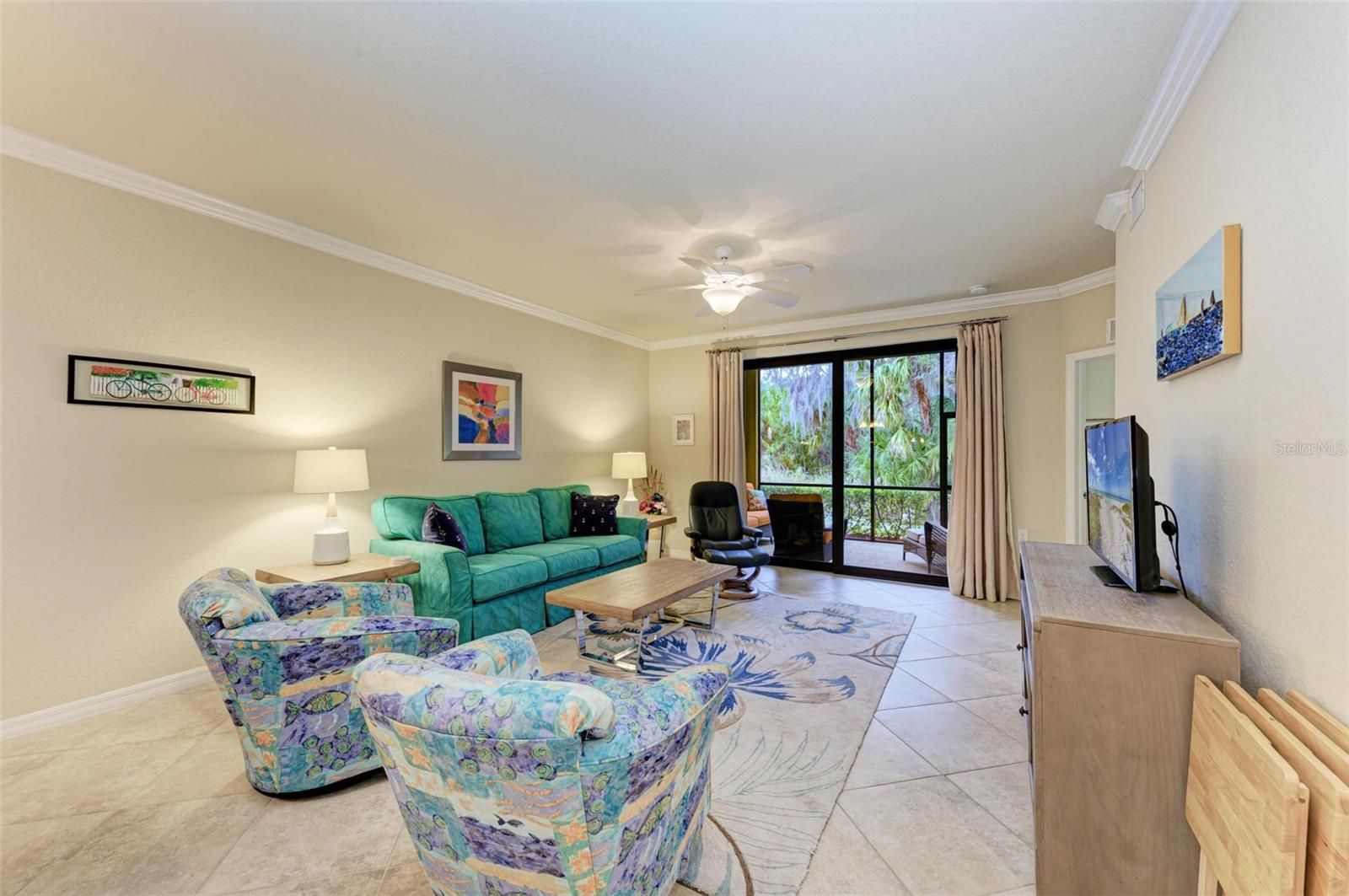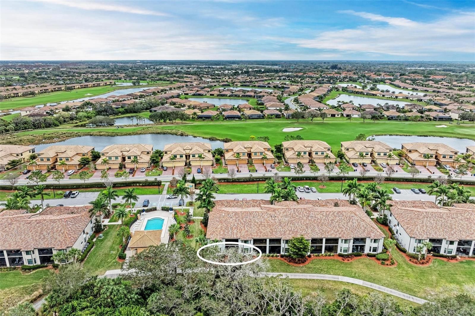 Discover a home that checks every box—and more! Located in the sought-after resort community of River Strand Golf & Country Club, this FIRST-FLOOR, END-UNIT Abbey model is the largest of the Verandas, offering over 1,700 sq ft of beautifully FURNISHED living space with a bright, open layout. Step inside and instantly feel at home. This GOLF-DEEDED residence features additional windows and no neighbor on one side, filling the home with natural light. The spacious main living area includes an eat-in kitchen with breakfast bar, flowing seamlessly into the dining area and great room—ideal for entertaining or relaxing. The primary suite impresses with wood-look ceramic tile, dual walk-in closets, and a stunning en-suite bath complete with retiled shower, soaking tub, and dual sinks. Guests will appreciate the privacy of the front bedroom and full bath, and the additional den/office offers flexible space for work or hosting visitors. Enjoy the Florida lifestyle from two screened lanais—one in the front and one in the back—perfect for morning coffee or evening sunsets. This unit sits right beside one of the community’s satellite pools, giving you the feel of a private pool without the maintenance. A detached one-car garage adds convenience, and the HOA recently painted the building, including both lanais. Your final box-check: the incredible amenities of River Strand. This gated, resort-style community features 27 holes of pristine golf, two community pools and spas, two fitness centers, six satellite pools, tennis and pickleball courts, and stunning multi-million-dollar renovation coming soon of Clubhouse, grille room, and outdoor dining!! Not to mention a dedicated lifestyle director and a full calendar of social and fitness activities. Ideally located just minutes from I-75, you’ll enjoy easy access to shopping, dining, entertainment, sports venues, and of course, the beautiful Gulf Coast beaches. Once you experience River Strand at its best, you may never want to leave!