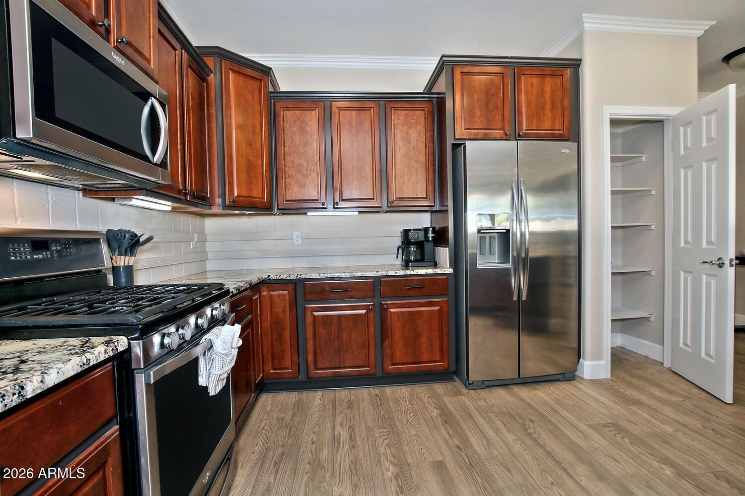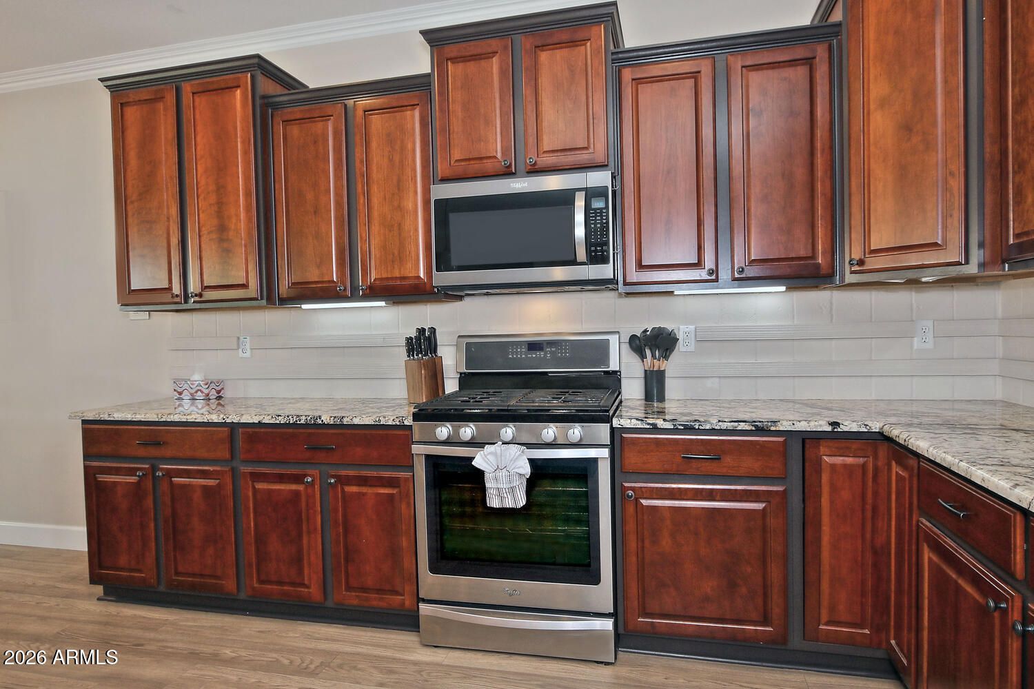- Dryer, Washer, Water Softener Owned, Gas Stub for Range, Reverse Osmosis, Refrigerator, Built-in Microwave, Dishwasher, Disposal, Gas Range, Gas Oven