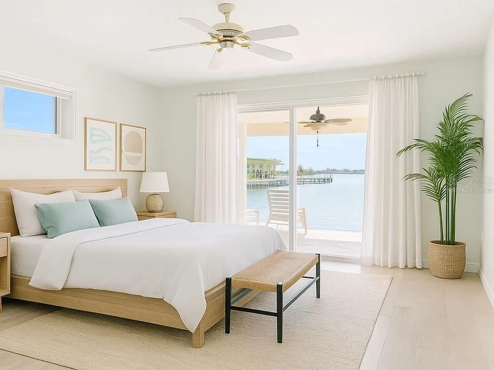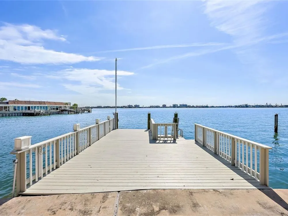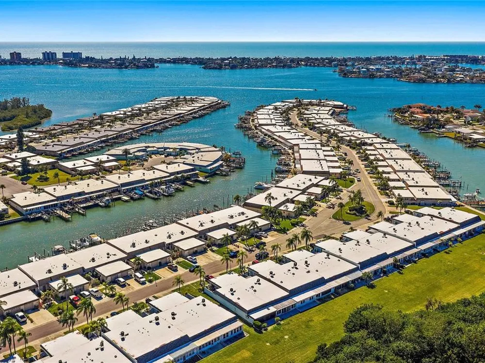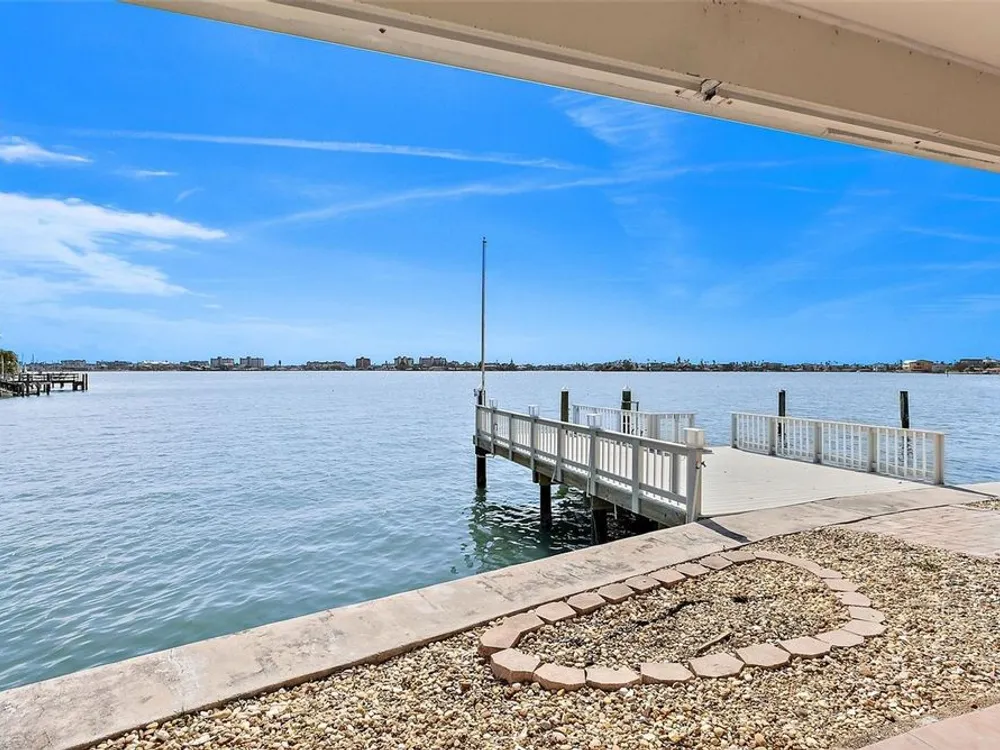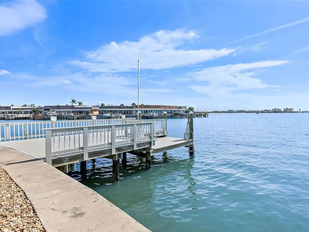 This spacious 3-bedroom, 2.5-bath ground floor end unit villa is located in the highly sought-after Boca Ciega Point community. Offering some of the most breathtaking south-westerly water views in all of Pinellas County, this villa is in a prime location. The villa includes your very own deeded dock, perfect for relaxing while enjoying beautiful sunsets, happy hour, or simply unwinding by the water. Being an end unit, there is a feeling of privacy and space. There is plenty of room to add your own boat lift, making this a true boater's paradise. Enjoy spectacular water views from your oversized master bedroom, which features a walk-in closet and an ensuite master bath. The master bedroom also opens to a covered patio area, providing a serene space to enjoy the incredible views and salt air while being shielded from the sun. Oversized guest bedrooms, indoor laundry, and an open floor plan make this villa truly stand out. This villa flooded during Hurricane Helene and is in the process of being restored.This is a rare opportunity for buyers, as you will inherit the seller's insurance proceeds through the condo association which will cover the restoration work. Restoration work will begin shortly, giving you the chance to customize and put your personal touches on what will be a newly updated unit. This Association also offers convenient overflow parking for guests, making entertaining convenient. The HOA fee includes comprehensive coverage, such as multi-peril insurance, water/sewer, trash, cable/internet, escrow reserves, and grounds maintenance. Boca Ciega Point is one of the most desirable 55+ waterfront communities, just minutes from renowned beaches like Madeira Beach and Redington Beach. Amenities include a newly installed kayak launch, bocce ball, shuffleboard, tennis courts, a heated community pool, saunas, a fitness center, men's and women's locker rooms, a clubhouse, monthly events, a boating club, and more. Don't miss out on this incredible opportunity to own this spectacular villa.