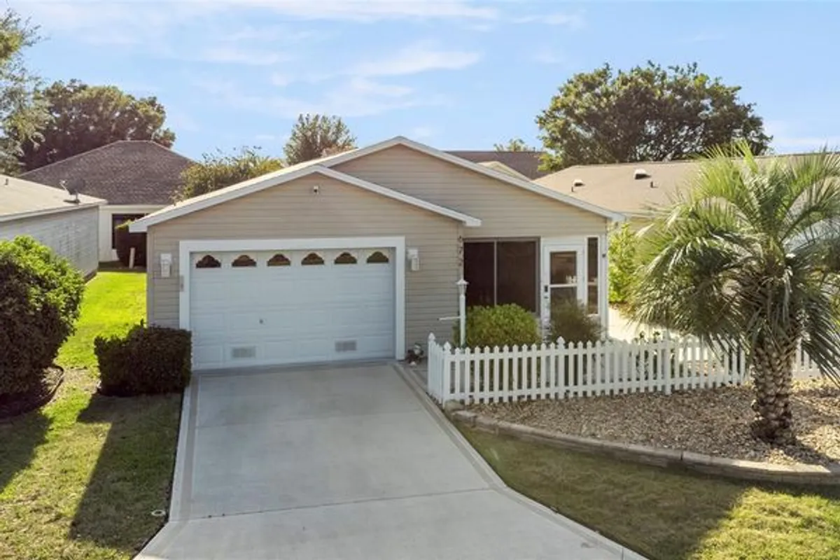 LOCATION LOCATION LOCATION!! Welcome to this RARE Cabot Cove patio villa in the Village of Bonnybrook! Low maintenance updated landscaped yard. Well-maintained two-bedroom, two-bathroom partially furnished, a great investment opportunity or move in ready option. When you walk in, you will LOVE THE VAULTED CEILINGS and LIGHT, BRIGHT open floor plan. NO CARPET! The main areas have tile and the bedrooms have laminate flooring. The Kitchen has plenty of cabinets, GRANITE countertops, tile floors, and an eat-in bar. Right off the kitchen is the INDOOR LAUNDRY ROOM and a large pantry and a new sliding barn door to separate the space. The kitchen opens to a spacious living room and a separate dining area. The primary suite features a spacious bedroom with laminate floors, a large walk-in closet, an en-suite bathroom with a GRANITE countertop, and a solid surface shower with sliding doors. The guest bedroom has laminate floors and a double-door closet. The second bedroom could be used as a den, office, and/or craft room. The guest bathroom has a GRANITE countertop, tile floors, and a combination of shower/tub and sliding doors. This villa sits towards the end of the street; therefore, there is extra parking in front of the home. Other features include: Partially furnished, tankless HWH, NEWER HVAC, NEW Light Fixtures, New Garage Door opener with MYQ, New Dishwasher, New Ring Security Camera by garage and LOW BOND BALANCE $1,822! CLOSE PROXIMITY TO ALL OF THE SHOPPING, BANKING, RESTAURANTS, COSTCO AND MEDICAL ON 466, PLUS LESS THAN 4 MILES TO LAKE SUMTER TOWN SQUARE!