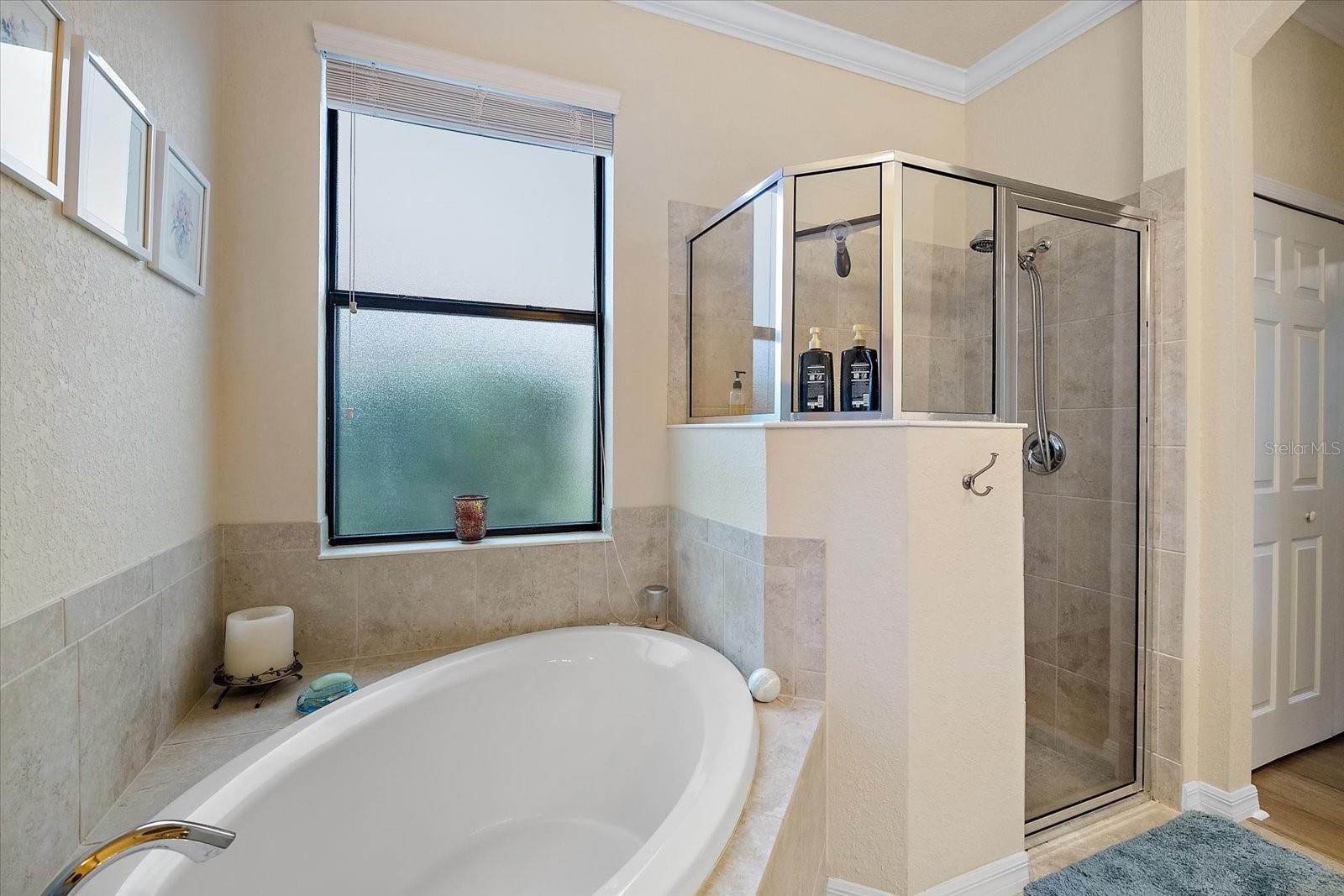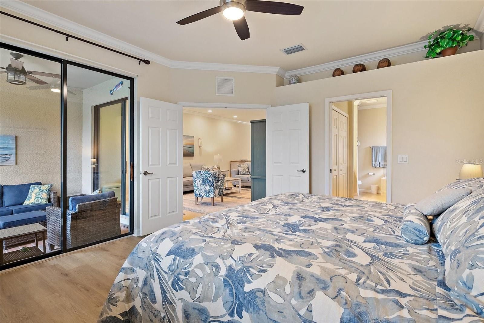 - Ceiling Fan(s), Crown Molding, Kitchen/Family Room Combo, Living/Dining Room, Open Floorplan, Main Level Primary, Stone Counters, Thermostat, Walk-In Closet(s)