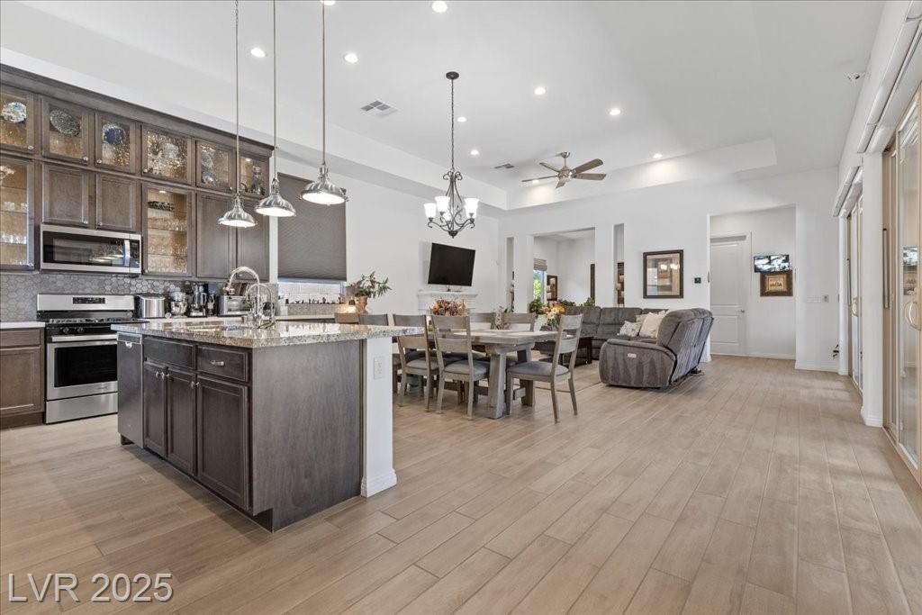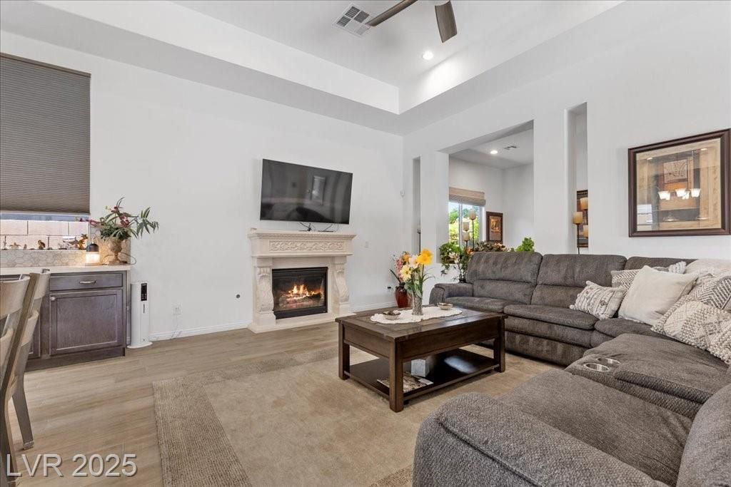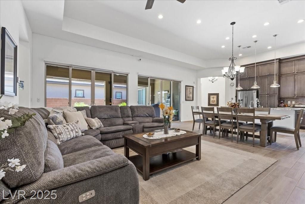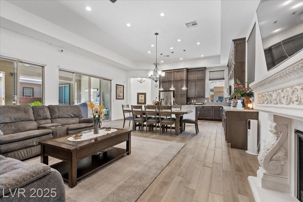 Desert Luxury at its finest in this spectacular Ranch Style Home in the prestigious Age Restricted Community of Regency in Summerlin South. This LUX Community of Regency has all the finest Amenities of a Five Star Resort to include Sparkling Pool & Spa with Cabanas, Fireplace to Gather, Social Calendar of Events, Fitness Center, Pickleball /Tennis Courts and the Security Guard Gated Grounds. This home has a Gourmet Kitchen that will meet all your Chef Needs, with stunning floor to ceiling Custom Cabinets and Top of the line Appliances. The Huge Slider in the Great Room opens to the Outdoor Patio Space bringing a true indoor /outdoor feel. This patio is completely enclosed on three sides offering Ultimate Privacy. For those that love to travel, this low maintenance property is truly a lock & leave masterpiece. Schedule your private tour today!