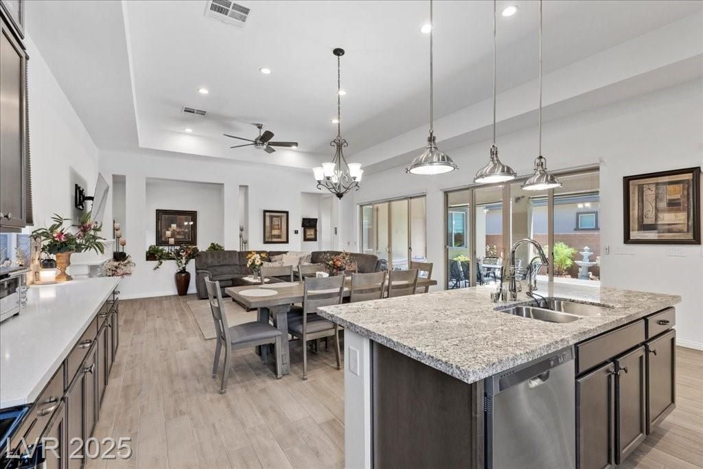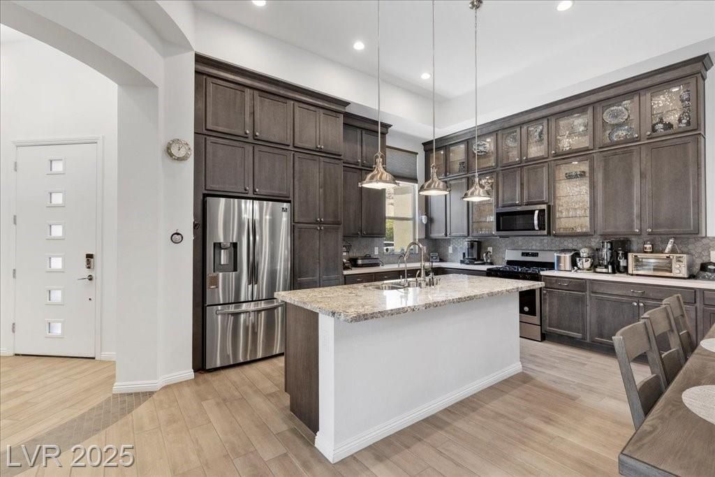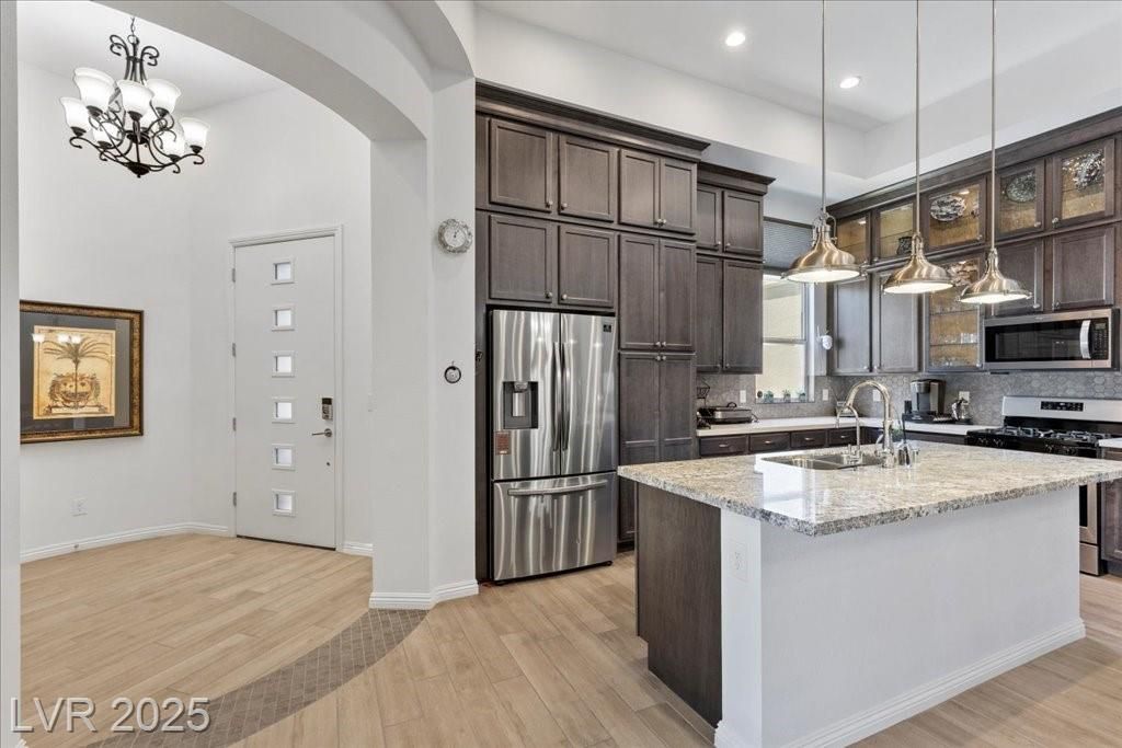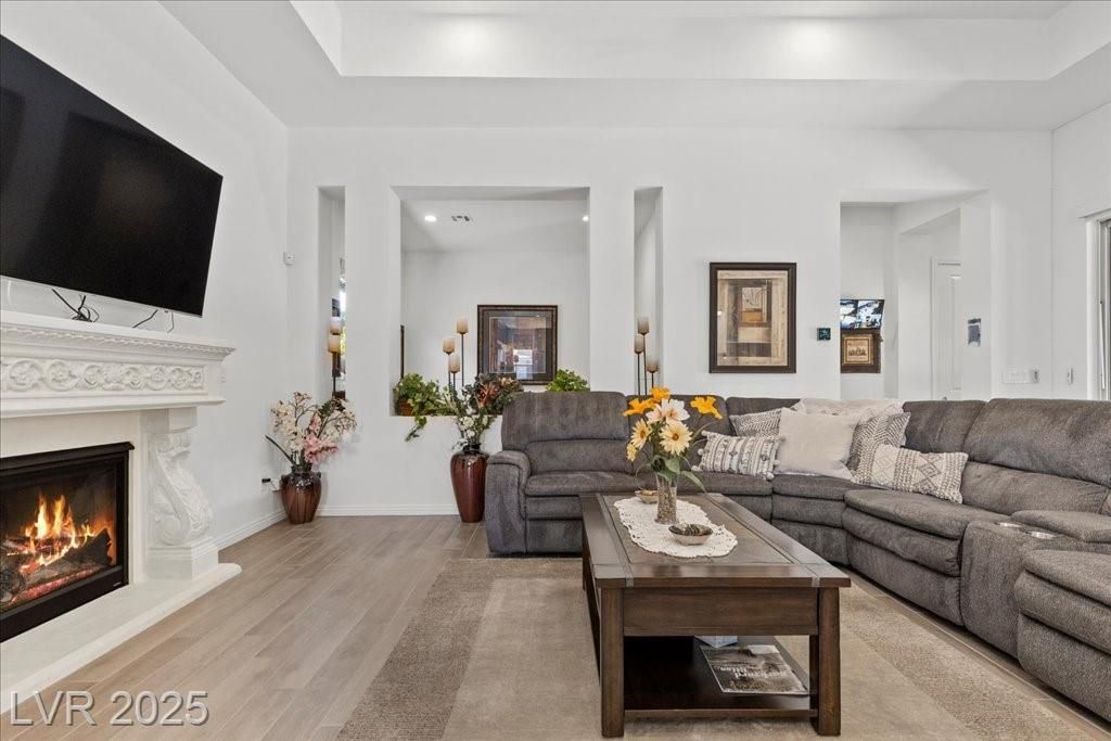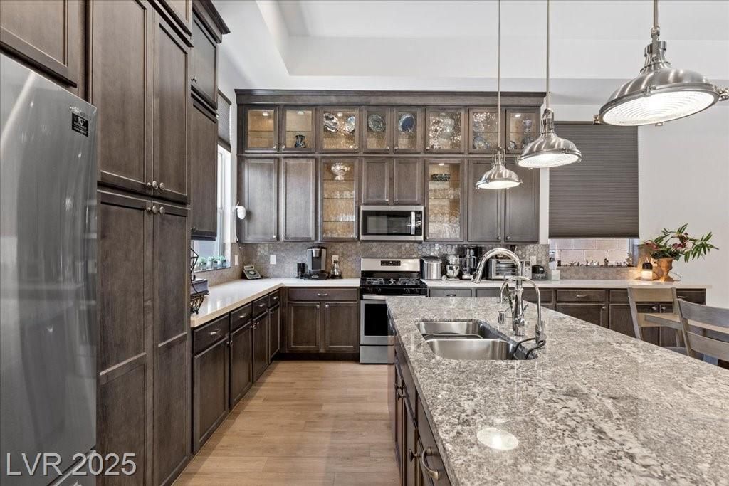 Desert Luxury at its finest in this spectacular Ranch Style Home in the prestigious Age Restricted Community of Regency in Summerlin South. This LUX Community of Regency has all the finest Amenities of a Five Star Resort to include Sparkling Pool & Spa with Cabanas, Fireplace to Gather, Social Calendar of Events, Fitness Center, Pickleball /Tennis Courts and the Security Guard Gated Grounds. This home has a Gourmet Kitchen that will meet all your Chef Needs, with stunning floor to ceiling Custom Cabinets and Top of the line Appliances. The Huge Slider in the Great Room opens to the Outdoor Patio Space bringing a true indoor /outdoor feel. This patio is completely enclosed on three sides offering Ultimate Privacy. For those that love to travel, this low maintenance property is truly a lock & leave masterpiece. Schedule your private tour today!
