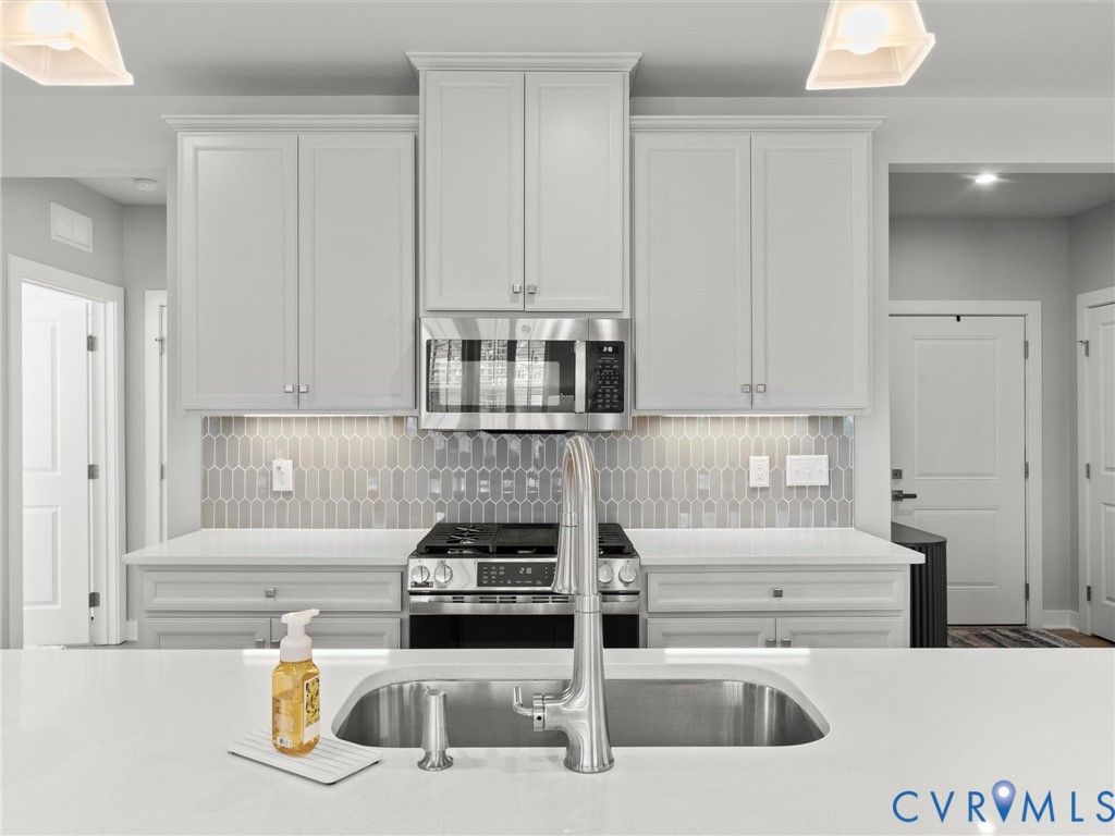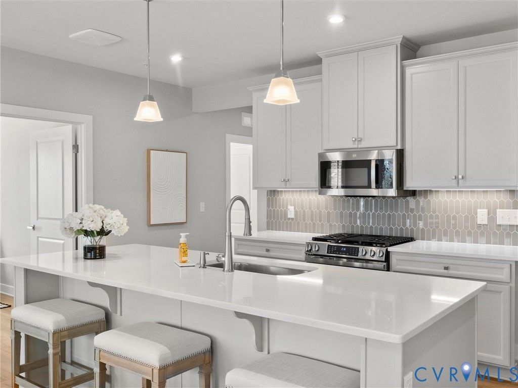Welcome to Greenwich Walk at FoxCreek, where luxury, maintenance-free living meets comfort and convenience. Built in 2025, this better-than-new 2-bedroom, 2-bath end-unit condo features upgraded LVP flooring throughout and offers a bright, open layout filled with natural light thanks to its prime end-unit location and additional windows. The gourmet kitchen flows seamlessly into the dining area and living room and features quartz countertops, custom pantry shelving, under-cabinet lighting, upgraded appliances, gas cooking, and a large island perfect for gathering. Step outside to the private balcony with a storage closet—ideal for morning coffee or relaxing in the evening. The primary suite offers a peaceful retreat with custom shelving in both closets and a spa-inspired bath with quartz countertops. The second bedroom enjoys its own private wing with a full bath also featuring quartz countertops. Plantation shutters throughout the living areas and bedrooms add style and privacy, while the office/study can easily serve as a guest room or den. The laundry room includes custom shelving for added organization. Enjoy a truly maintenance-free lifestyle with amenities including a private clubhouse, pool, pickleball courts, fitness center, social clubs, walking trails, and a scenic pond perfect for kayaking—plus additional access to FoxCreek community amenities. Ideally located near restaurants, shopping, grocery stores, and major highways, making everyday convenience just minutes away. More than a condo—it’s a turnkey lifestyle in one of Chesterfield County’s most desirable communities.